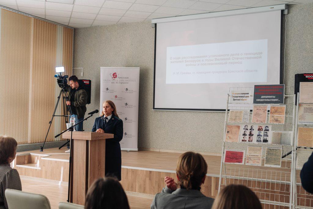 Дзень памяці «Генацыд у Беларусі», які адбыўся 10 сакавіка, стаў сімвалічным пачаткам «Прававой вясны». У мерапрыемстве прынялі ўдзел Ірына Міхайлаўна Грачова, старэйшы памочнік пракурора Брэсцкай вобласці, з інфармацыяй «Аб ходзе расследавання крымінальнай справы аб генацыдзе жыхароў Беларусі ў гады Вялікай Айчыннай вайны і пасляваенны перыяд», Анна Генадзеўна Карапузава, дырэктар Дзяржаўнага архіва Брэсцкай вобласці з прадстаўленнем архіўных матэрыялаў «Трагічныя старонкі акупацыйнага рэжыму на Брэстчыне: дакументы сведчаць».