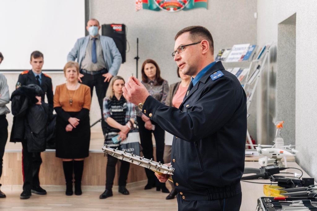 Тэарэтычны матэрыял быў падмацаваны дэманстрацыяй відэафільма, прысвечанага 10-годдзю з дня ўтварэння Следчага камітэта. Вялікую цікавасць у навучэнцаў выклікаў «інтэрактыў» — знаёмства з цэлым арсеналам крыміналістычнай тэхнікі непасрэдна ў зале правядзення мерапрыемства, а таксама мадэляванне і разбор следчай сітуацыі, звязанай з забойствам чалавека, на месцы здарэння.