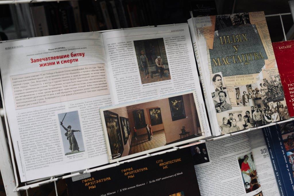 На выставе прадстаўлены кнігі і перыядычныя выданні з інфармацыяй пра жыццё і творчасць мастака, фотаальбомы і рэпрадукцыі яго карцін.