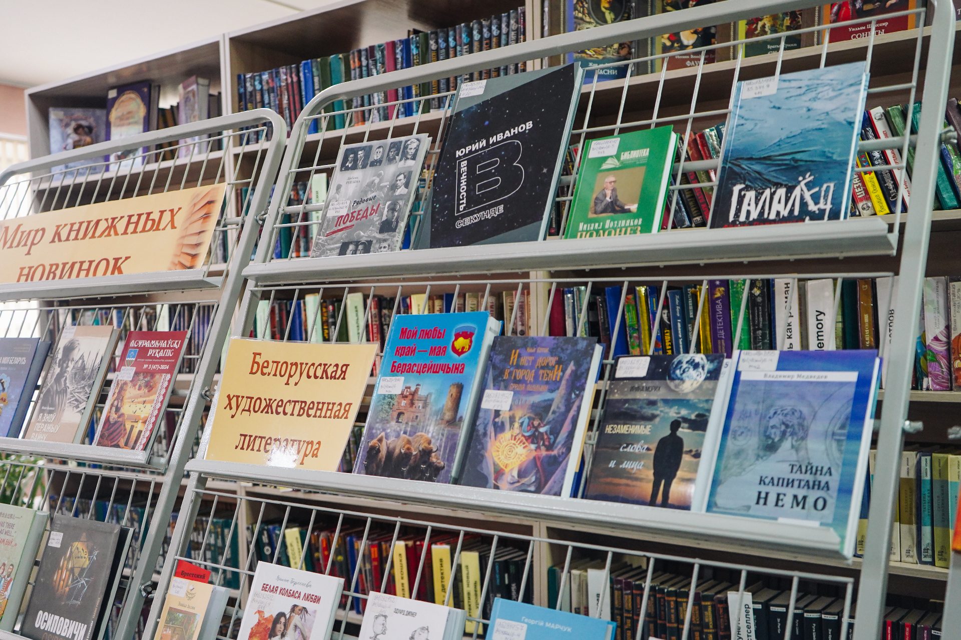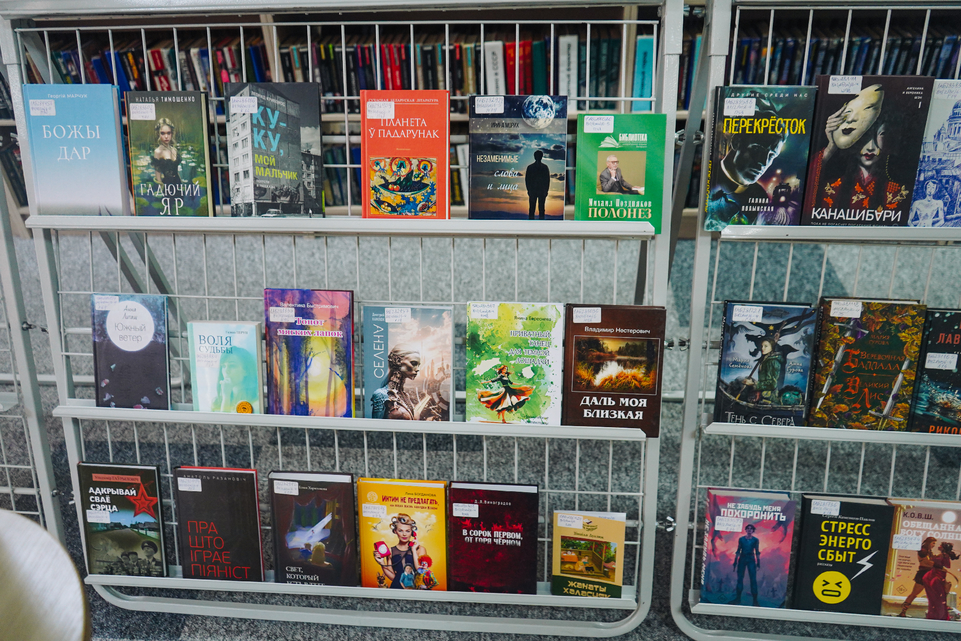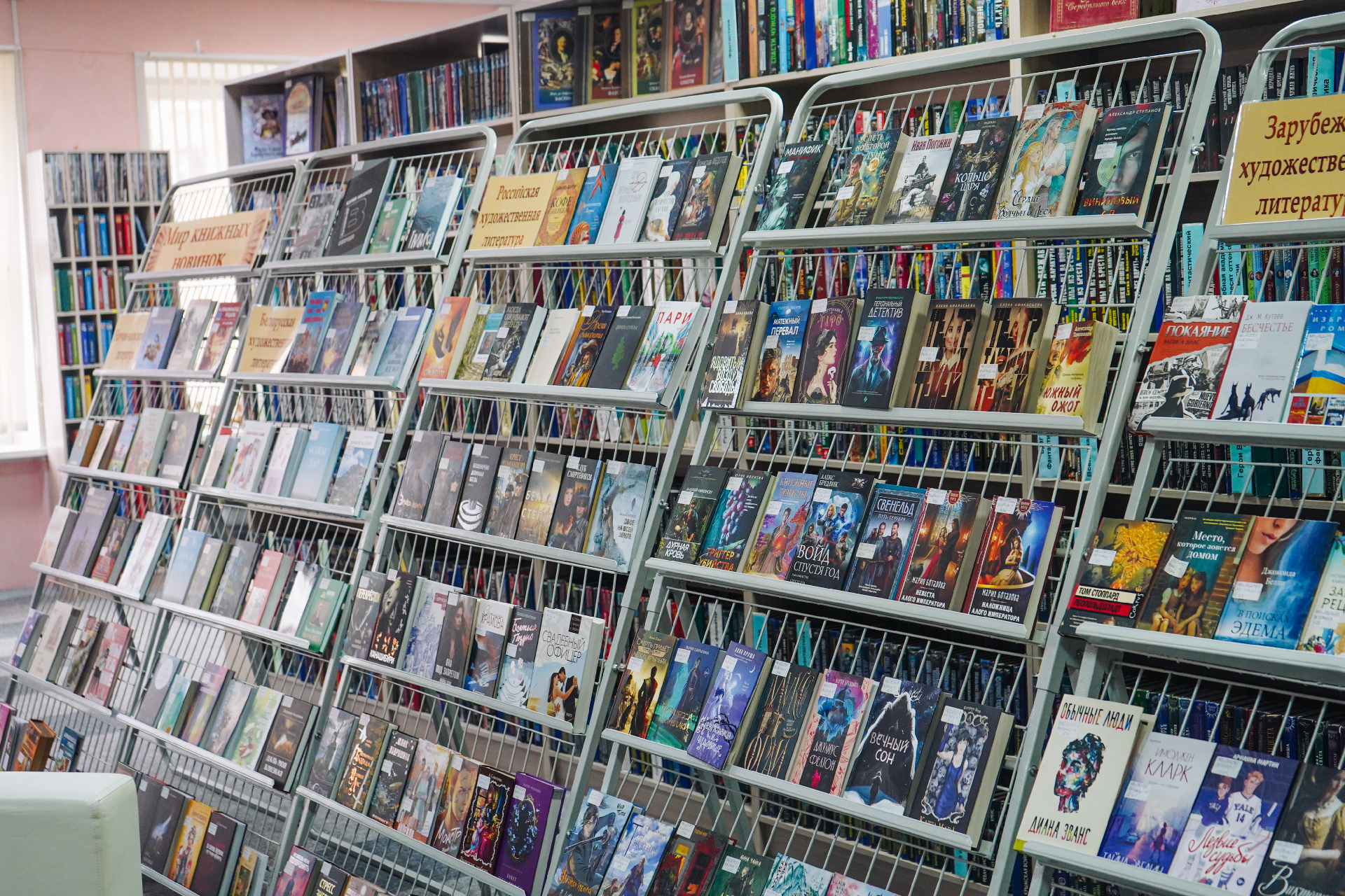 Новыя кнігі вельмі розныя і на любы густ. Гэта новыя дэтэктывы папулярных пісьменнікаў А. Тамонікава, Л. Мартавай, Л. Люцікавай, Е. Ветравай, Л. Собалевай, К. Лэкберг, М. Омера, В. Метаса, Д. Ліхэйна, Я. Галінскага; шмат фантастыкі Б. Канфельскага, М. Сямёнавай, А. Волгінай, В. Дж. Эндрус, Т. Пратчэта, М. Лаферці, Д. Сіманса, Дж. Арментроўта, Н. Стывенсана; жаночыя раманы Н. Аляксеевай, Е. Левашовай, Н. Міронінай, І. Валчок, Ф. Конева, М. Нуроўскай, С. Коч, К. Гувер, Кім Ынсук і іншых.