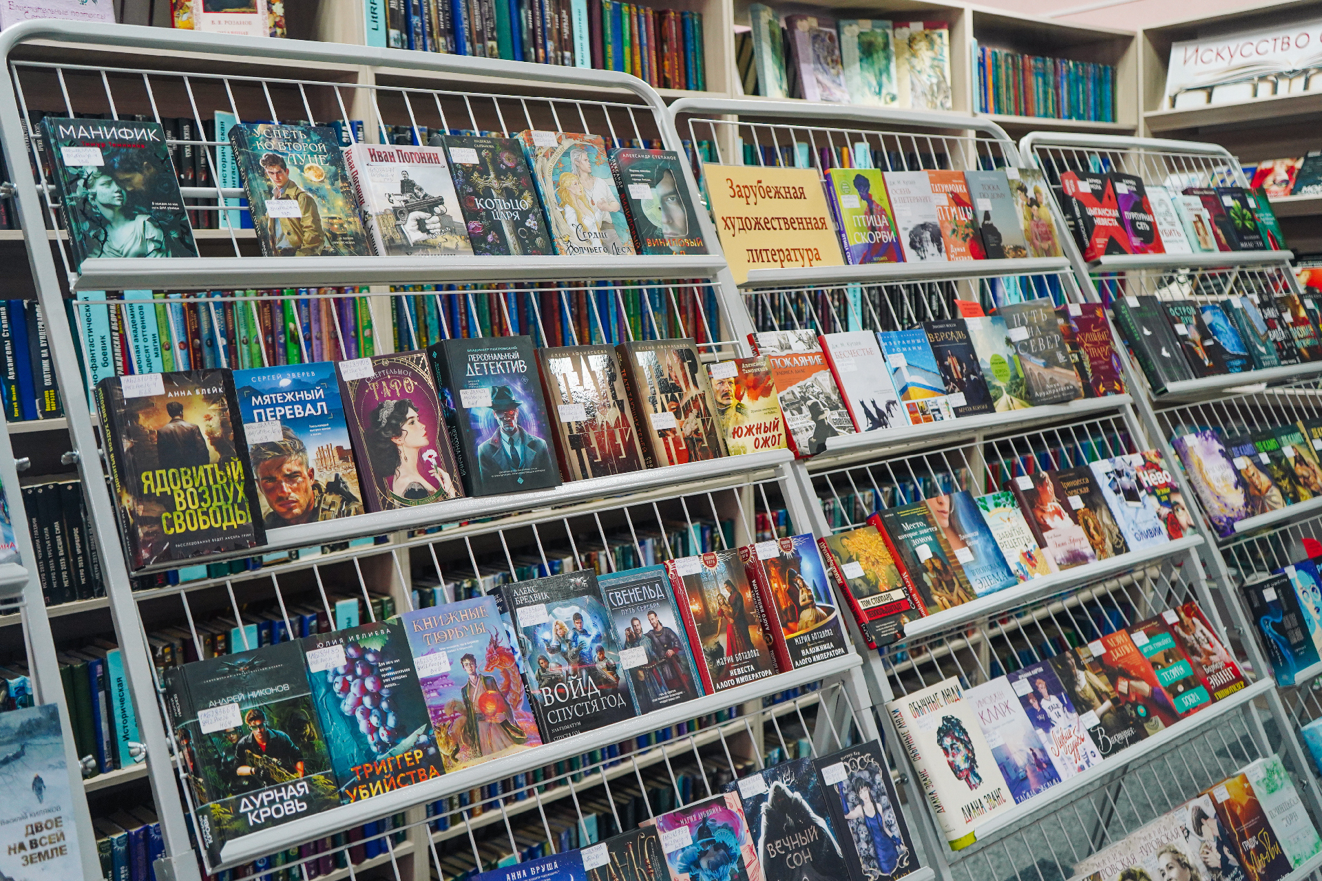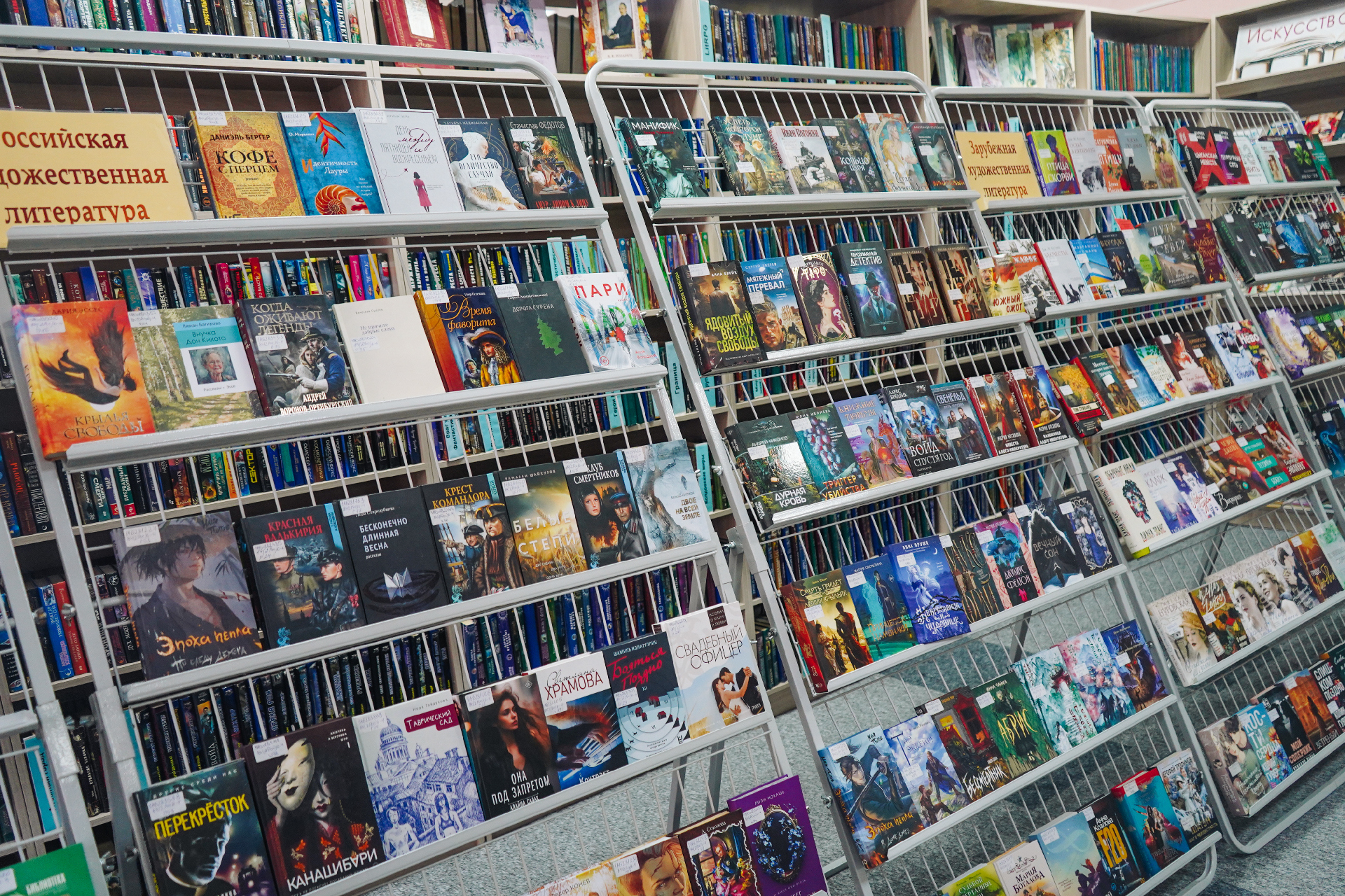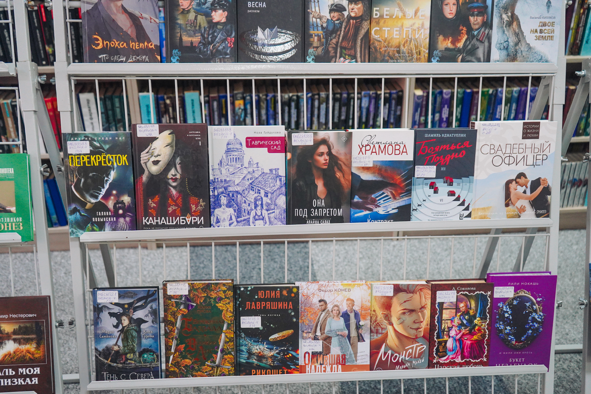 Новыя кнігі вельмі розныя і на любы густ. Гэта новыя дэтэктывы папулярных пісьменнікаў А. Тамонікава, Л. Мартавай, Л. Люцікавай, Е. Ветравай, Л. Собалевай, К. Лэкберг, М. Омера, В. Метаса, Д. Ліхэйна, Я. Галінскага; шмат фантастыкі Б. Канфельскага, М. Сямёнавай, А. Волгінай, В. Дж. Эндрус, Т. Пратчэта, М. Лаферці, Д. Сіманса, Дж. Арментроўта, Н. Стывенсана; жаночыя раманы Н. Аляксеевай, Е. Левашовай, Н. Міронінай, І. Валчок, Ф. Конева, М. Нуроўскай, С. Коч, К. Гувер, Кім Ынсук і іншых.