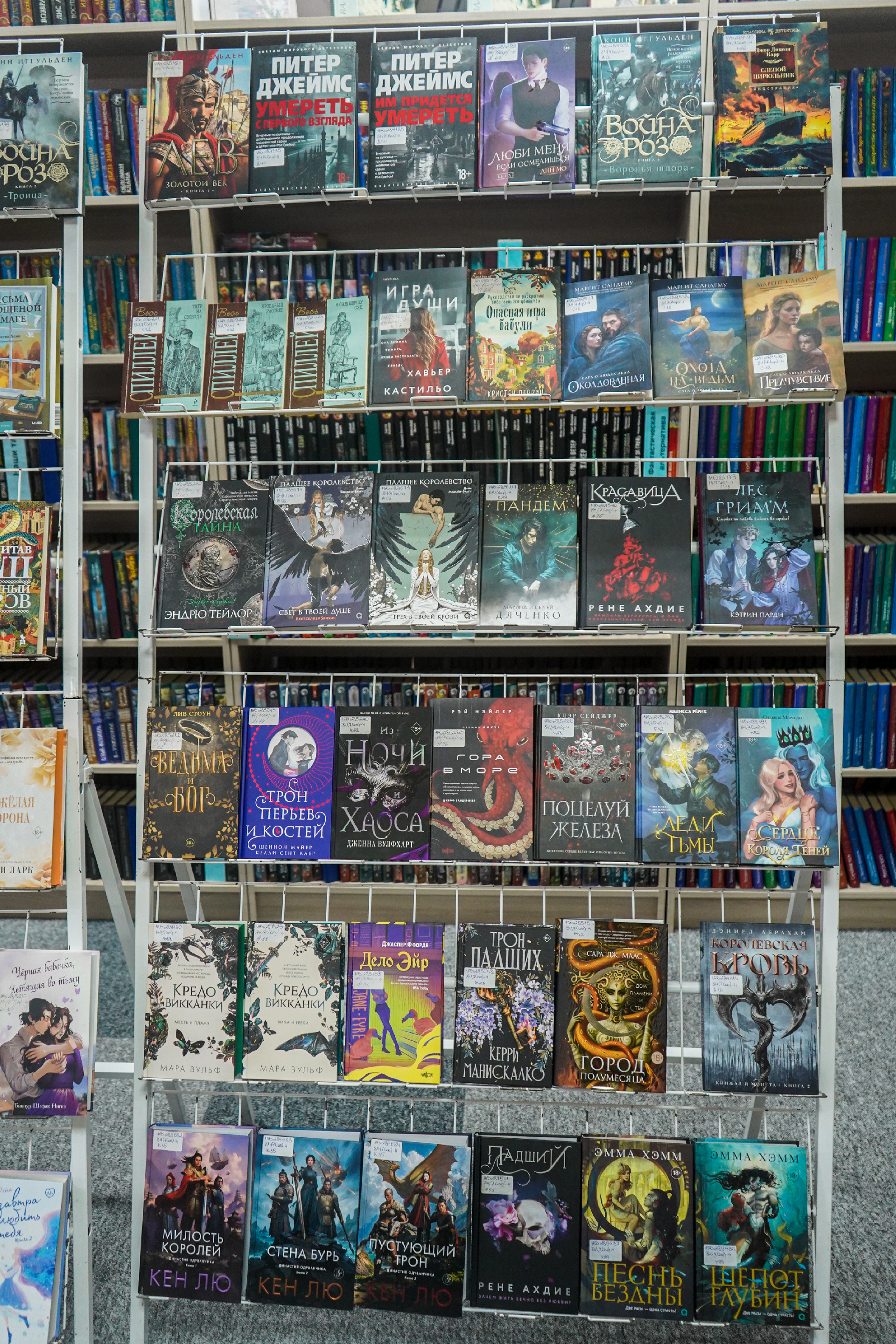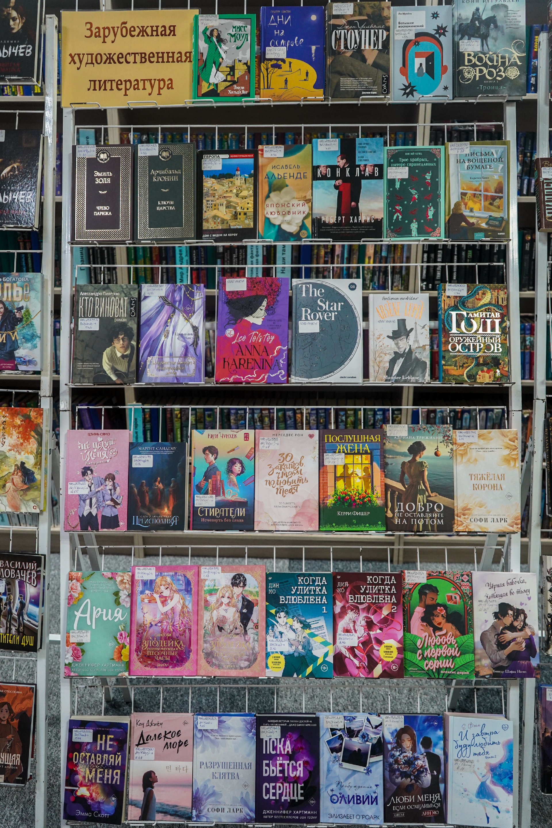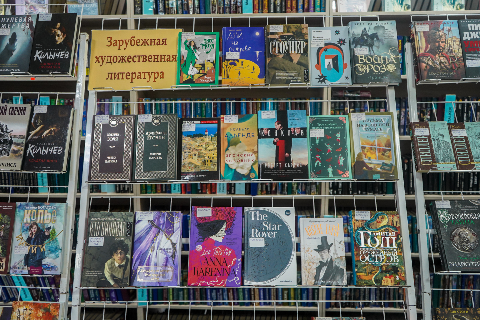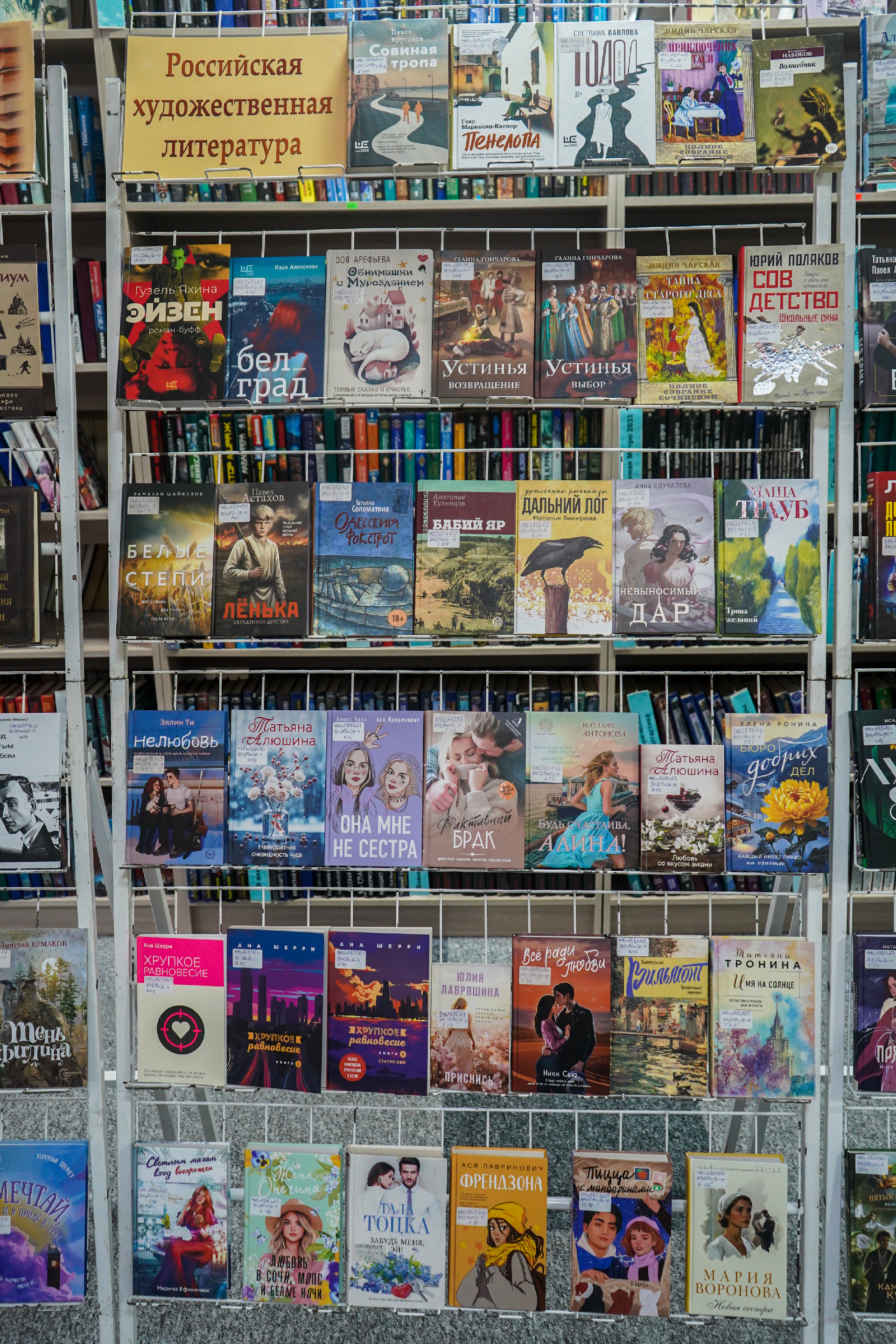 На выставе таксама экспануюцца кнігі: П. Астахаў «Лёнька. Украденное детство» (Масква, 2025) — гэта гісторыя рускага хлопчыка Алёшы, якому споўнілася дзевяць гадоў, калі пачалася Вялікая Айчынная вайна і ў родную вёску на Смаленшчыне ўступілі першыя калоны нямецкіх салдат (раман заснаваны на дакументальным матэрыяле, гістарычных фактах і, вядома, на жывых успамінах галоўнага героя гэтай кнігі — Аляксея Астахава); А. Міхалкова «Что дальше, миссис Норидж?» — новы зборнік апавяданняў, прысвечаных расследаванню ангельскай гувернанткі Эмы Норыдж; К. Качур «Ген Рафаила» (Масква, 2025); А. Гош «Дымная река» (Масква, 2023) і «Огненный поток» (Масква, 2024) — другая і трэцяя (фінальная) часткі «Ибисной трилогии»; Д. Карызі «Воспитание бабочек» (Санкт-Пецярбург, 2025) (Упершыню на рускай!) — жудасная, гіпнатычная гісторыя падарожжа адной жанчыны, якая адправілася на пошукі зніклага дзіцяці; Ж. Дзікер «Дикий зверь» (Масква, 2025) — захапляльны псіхалагічны трылер з дэтэктыўнай інтрыгай; С. Рушдзі «Кишот» (Масква, 2025); Дж. Клавел «Благородный дом: роман о Гонконге» (Масква, 2025) і «Ураган» (Масква, 2024) — раман, які завяршае «Азиатскую сагу» Клавела.