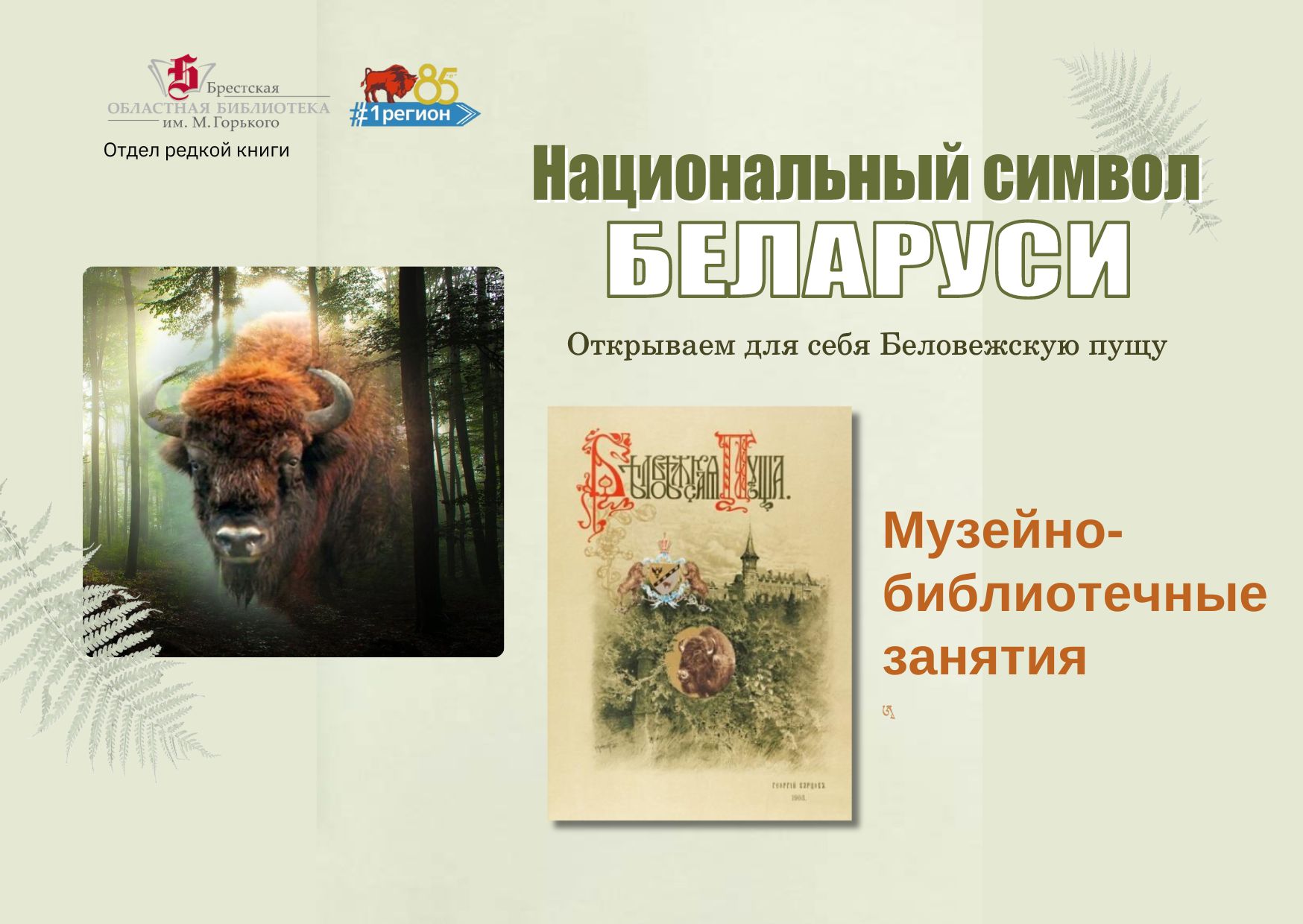 Да 85-годдзя Брэсцкай вобласці аддзелам рэдкай кнігі распрацаваны музейна-бібліятэчны занятак «Национальный символ Беларуси: открываем для себя Беловежскую пущу». Першы занятак прайшоў 16 сакавіка 2024 года. На ім прысутнічалі навучэнцы 10 класа ДУА «Сярэдняя школа № 3 г. Брэста».