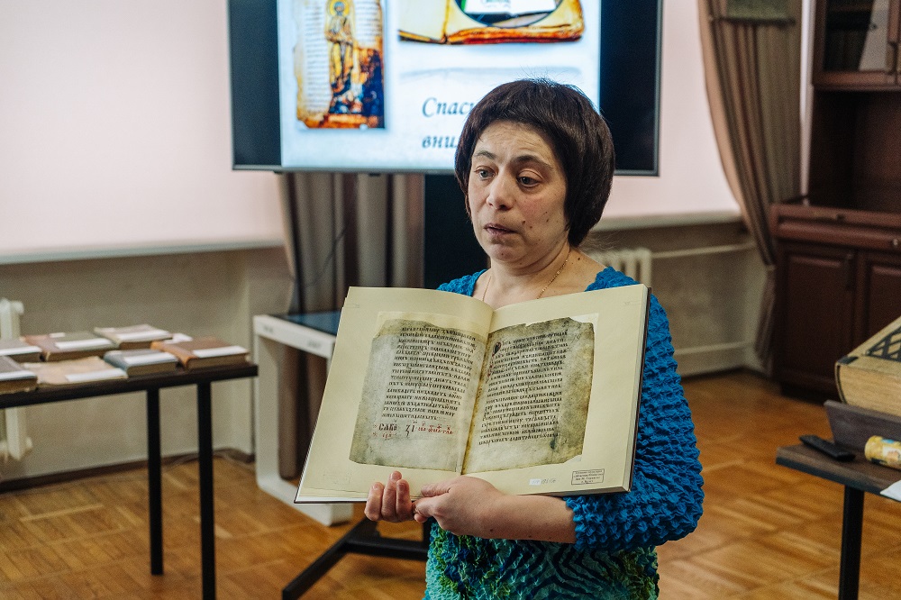 Потым студэнты пазнаёміліся з факсімільнымі выданнямі Радзівілаўскага летапісу, Жыцця Ефрасінні Полацкай, Тураўскага, Полацкага, Лаўрышаўскага і Слуцкага Евангелляў.