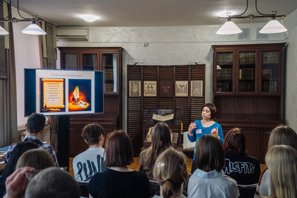 24 мая ў аддзеле рэдкай кнігі Брэсцкай абласной бібліятэкі імя М. Горкага для студэнтаў дзвюх груп філалагічнага факультэта БрДУ імя А. С. Пушкіна былі праведзены музейна-бібліятэчныя заняткі «Таямніцы рукапіснай кнігі», прымеркаваныя да гэтага Дня.