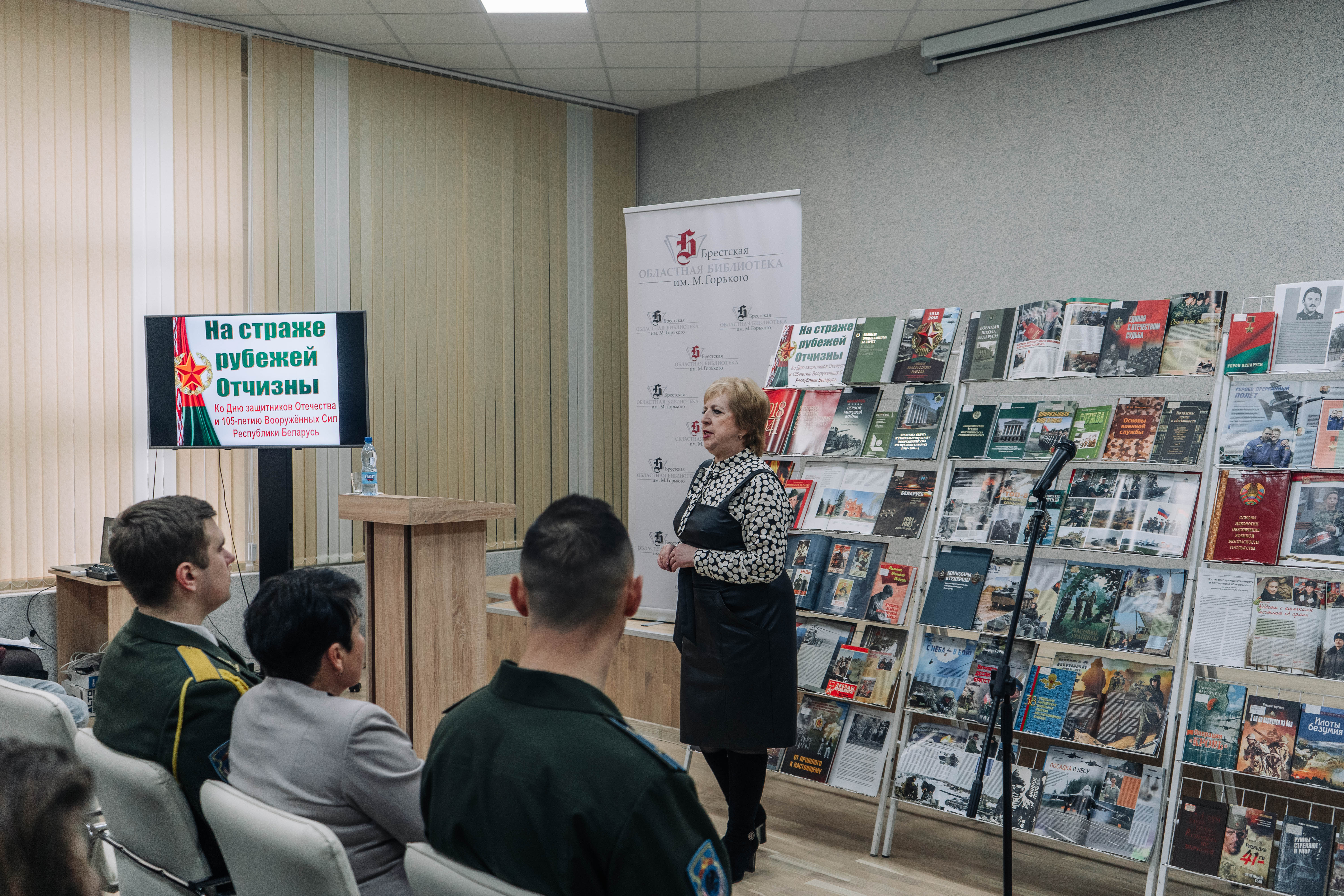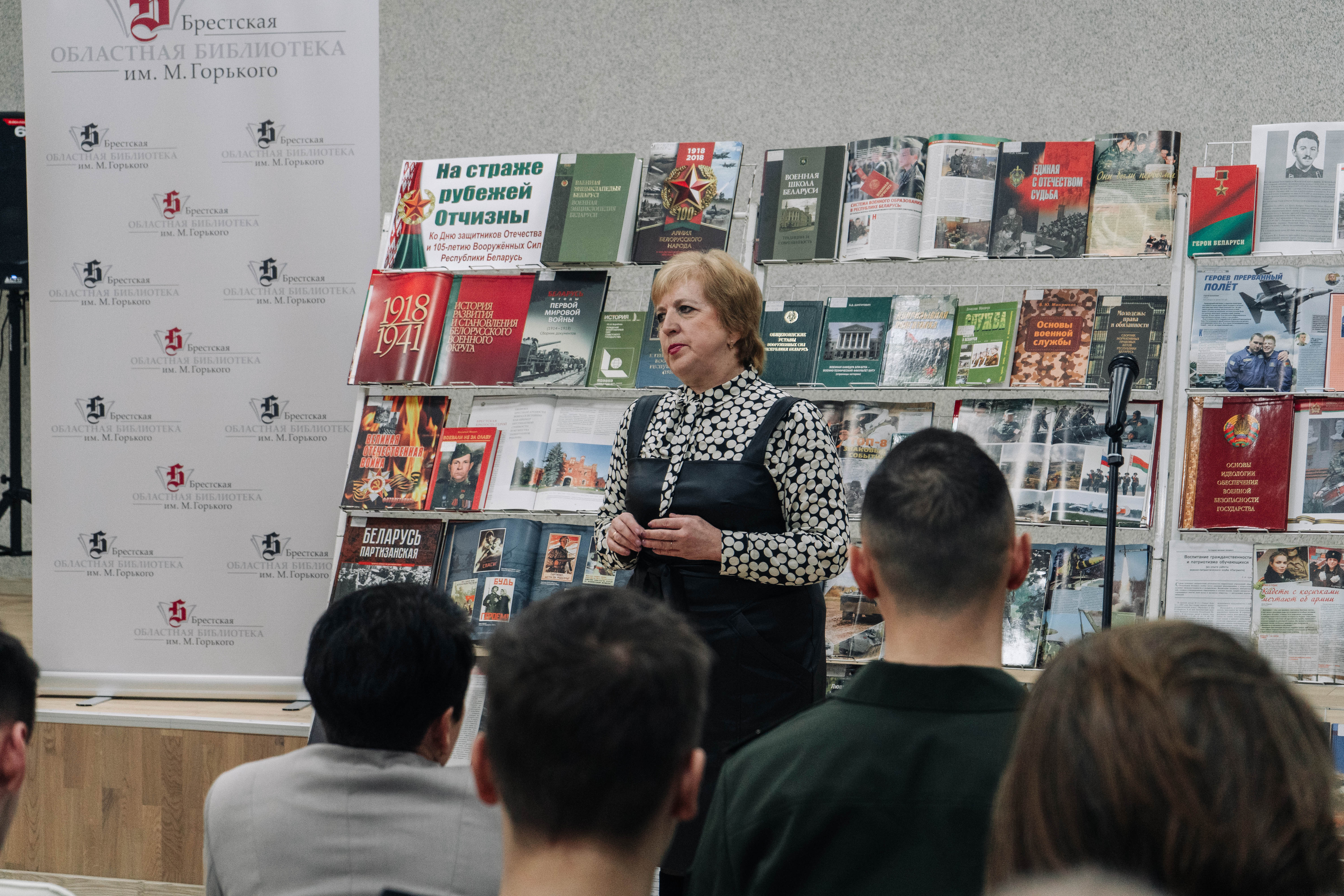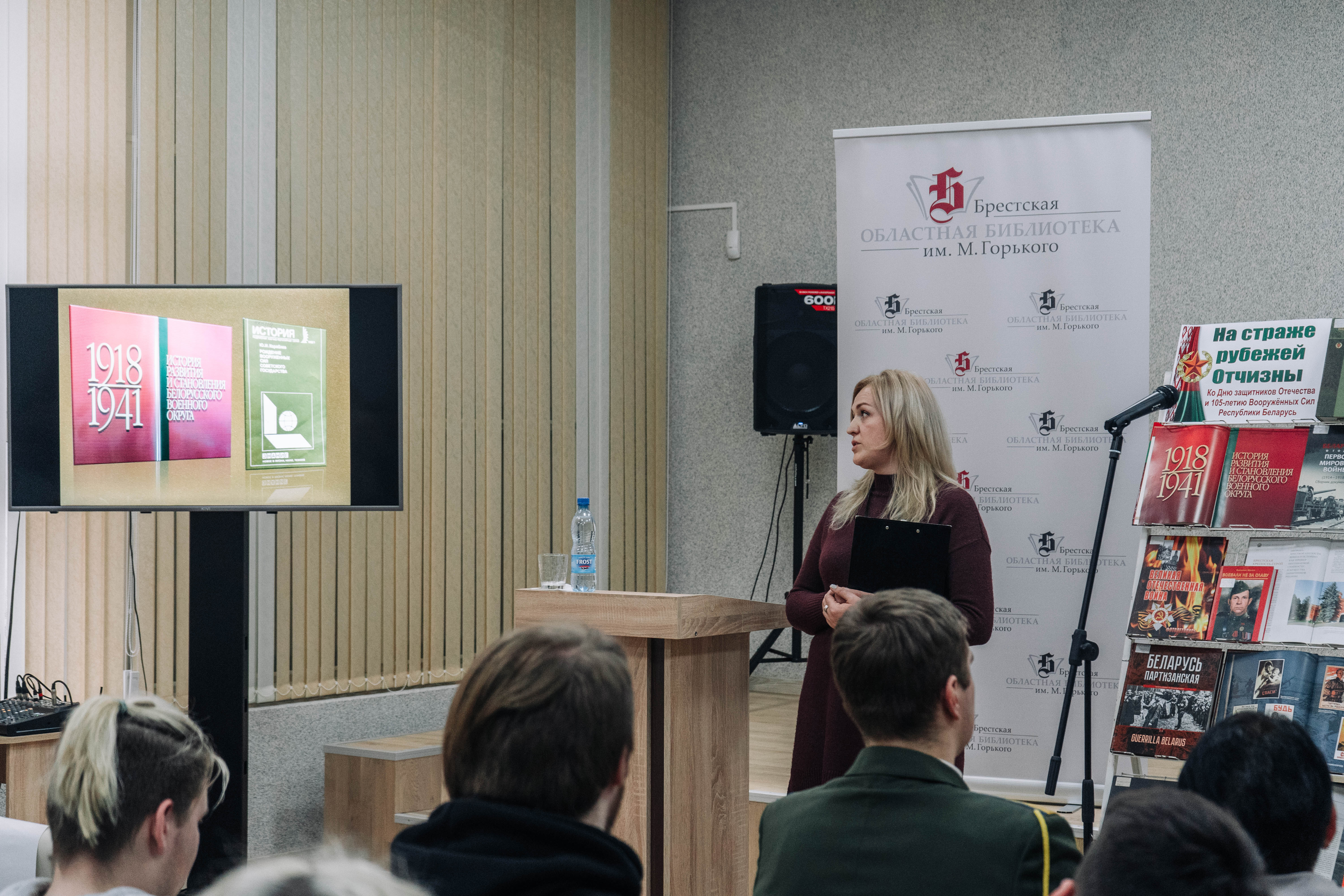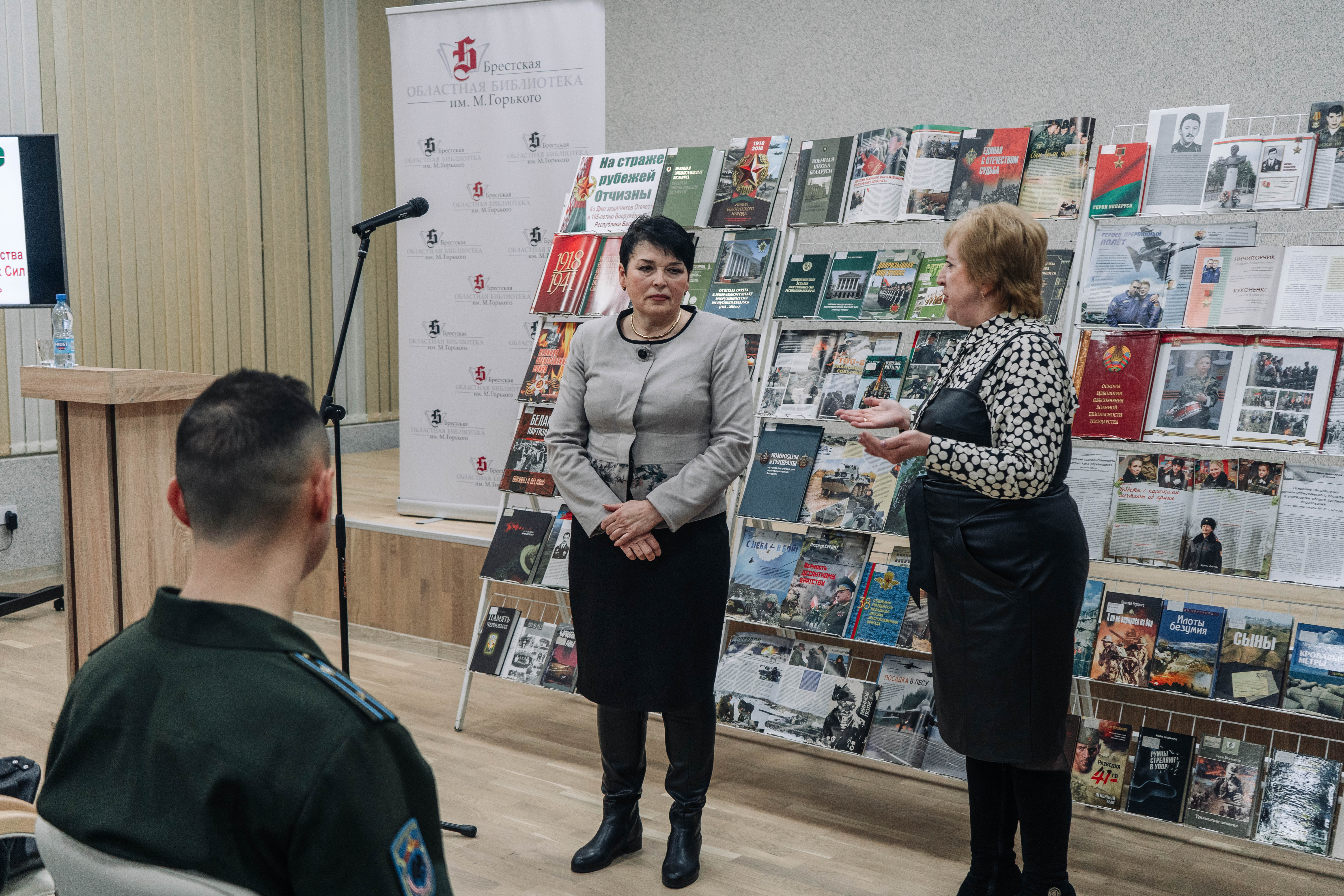 20 лютага 2023 г. у Брэсцкай абласной бібліятэцы імя М. Горкага адбылося мерапрыемства, прысвечанае Дню абаронцаў Айчыны і Узброеных сіл Рэспублікі Беларусь. Цяперашні год — гэта год 105-годдзя з дня заснавання Узброеных сіл Беларусі. І вельмі значна, што на сустрэчу з моладдзю — навучэнцамі трох каледжаў г. Брэста — былі запрошаны прадстаўнікі 38-й Брэсцкай асобнай гвардзейскай Венскай Чырванасцяжнай дэсантна-штурмавой брыгады: гвардыі маёр Дзмітрый Віктаравіч Бялецкі, гвардыі радавы Уладзіслаў Юр’евіч Макарэвіч і Наталля Уладзіміраўна Бараноўская.