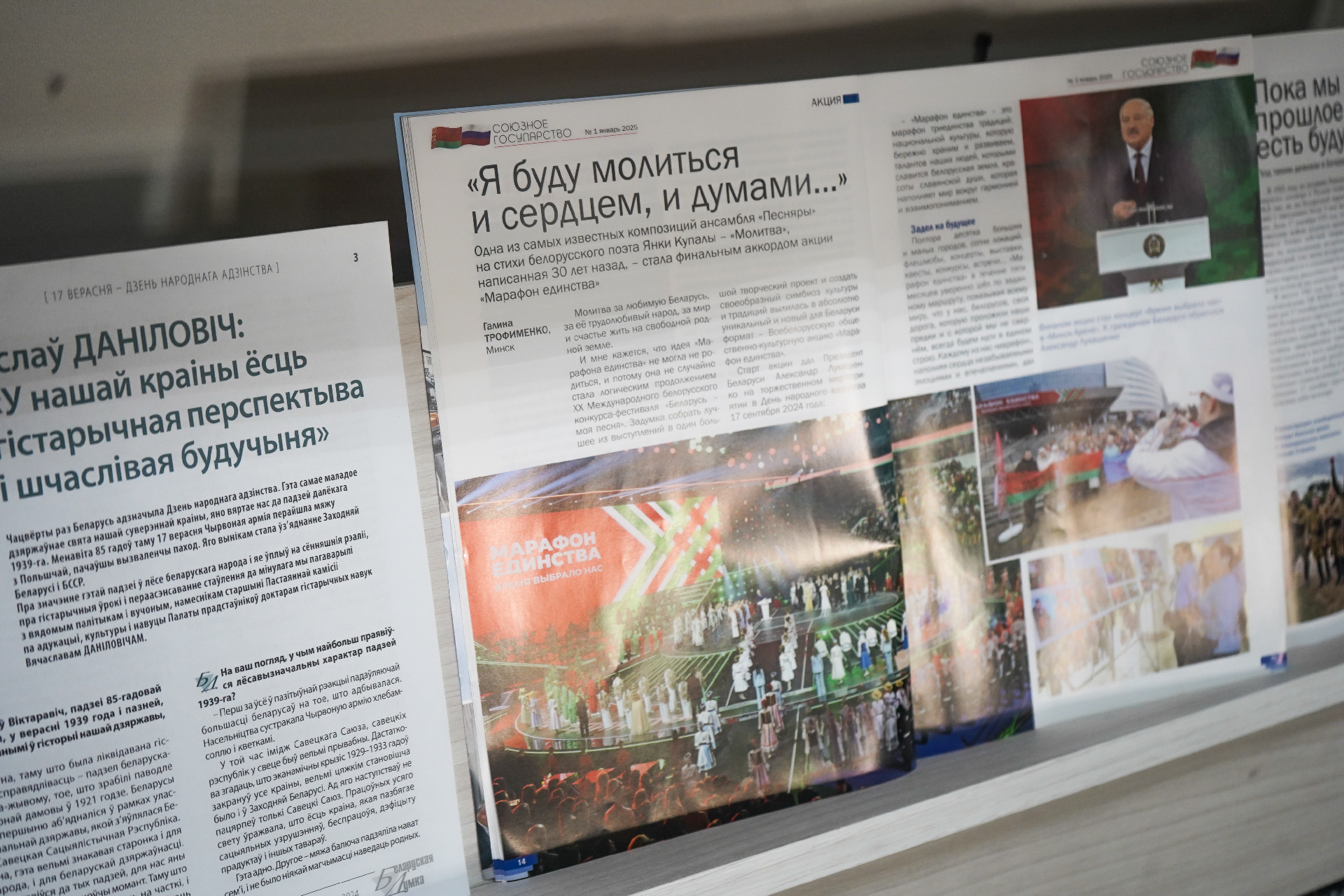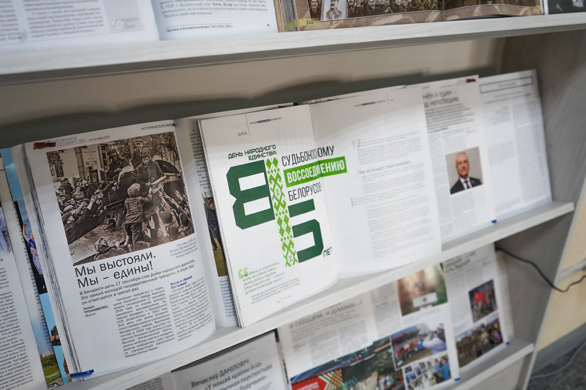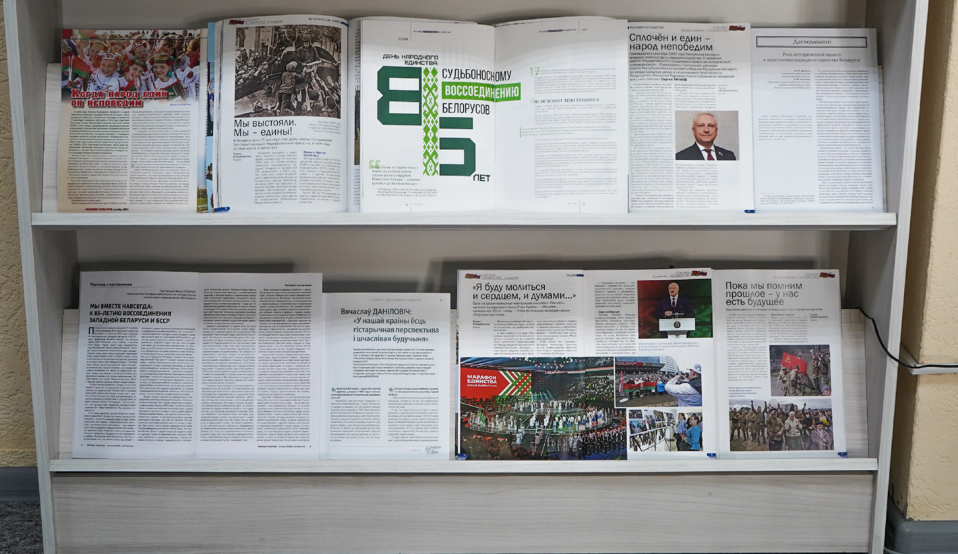 Экспазіцыя падрыхтавана па матэрыялах часопісаў «Беларуская думка», «Беларускі гістарычны часопіс», «Архівы і справаводства», «Союзное государство», «Экономика Беларуси», «Родина», «Милиция Беларуси», а таксама газет «СБ. Беларусь сегодня», «Народная газета» і інш.