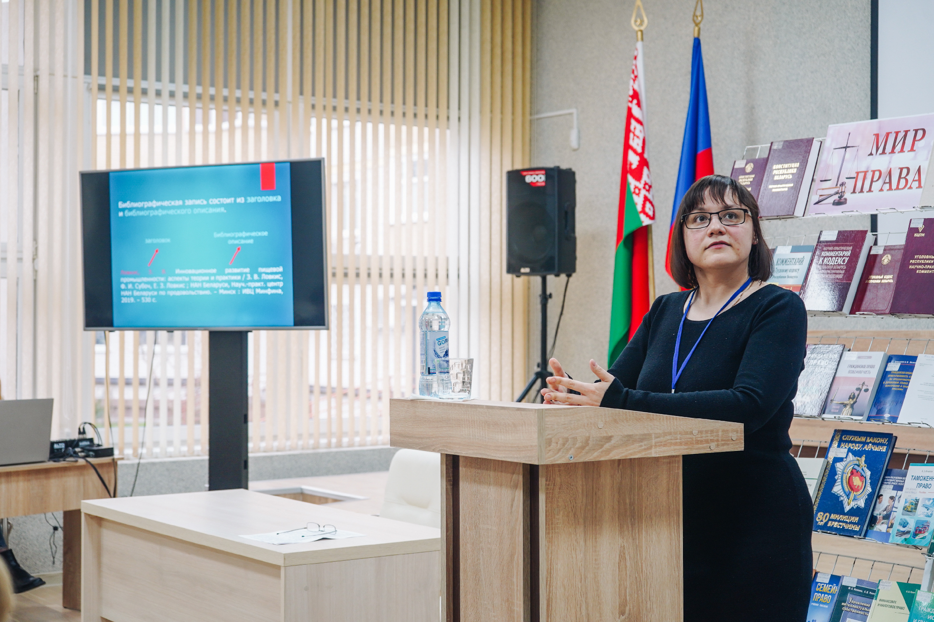 Загадчык агульнай чытальнай залы Брэсцкай абласной бібліятэкі Тамара Васільеўна Глазкова пазнаёміла ўдзельнікаў семінара з рэсурсамі правазнаўчай тэматыкі бібліятэкі, расказала аб дзейнасці Публічнага цэнтра прававой інфармацыі. Пасля інфармацыі аб магчымасцях і паслугах бібліятэкі загадчык сектара стварэння аналітычных бібліяграфічных запісаў Святлана Іванаўна Леанчук праінфармавала прысутных аб асноўных правілах па афармленні бібліяграфічных спісаў.