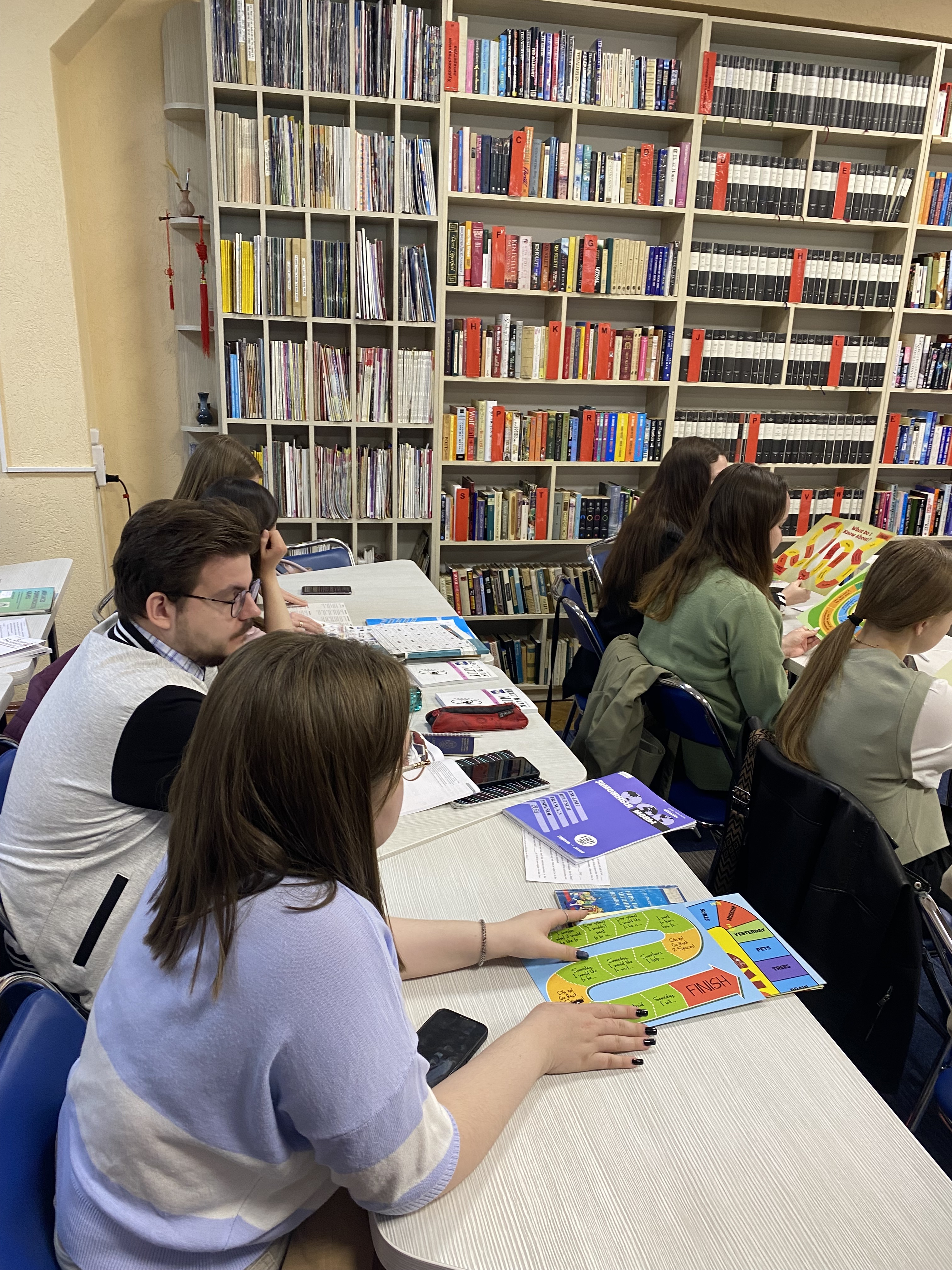 Бібліятэкар Е. А. Якімук падзялілася вопытам правядзення праграм гутарковага клуба з мадэляваннем розных сітуацый маўленчых зносін, а бібліятэкар К. У. Маслоўскі прадставіў удзельнікам мерапрыемства камунікатыўныя гульні УМК «Activate».