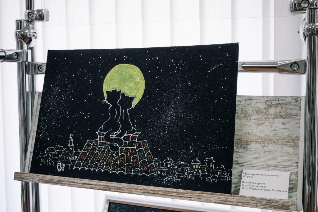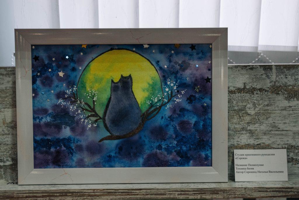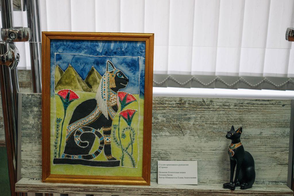 Майстрыцамі прадстаўлена каля 30 прац, створаных у розных тэхніках: батык, роспіс па шкле, акрыл на кардоне, алейная пастэль, дэкупаж, вязанне і т. д. Ядро выставы складаюць працы кіраўніка Я. А. Шпаннагель.