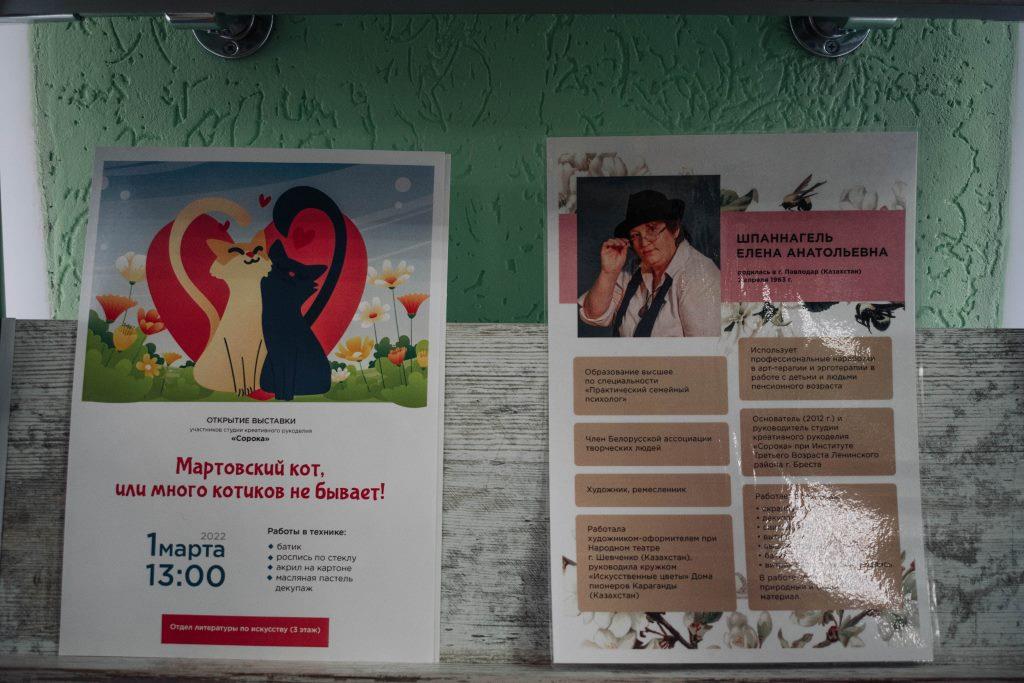 На адкрыцці таксама была прадстаўлена калекцыя з 60 нямецкіх паштовак другой паловы XX стагоддзі з сюжэтамі з кацінага жыцця. Калекцыя падорана чытачом бібліятэкі, імя якога нам не вядома. На адкрыцці вядучая Дзмітрук Т. І. распавяла пра клуб «Сарока», тэму мерапрыемства, чытала тэматычную паэзію. Прывітальнае слова было дадзена кіраўніку Беларускай асацыяцыі творчых людзей Джавадзяну Т. І. і загадчыцы аддзела Філіпавай Т. С.