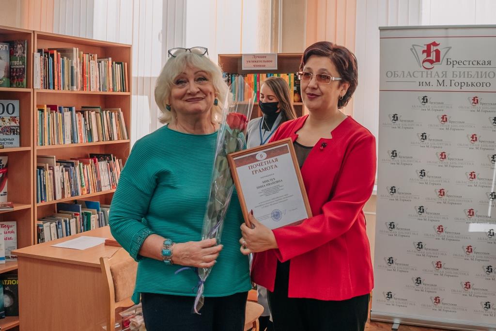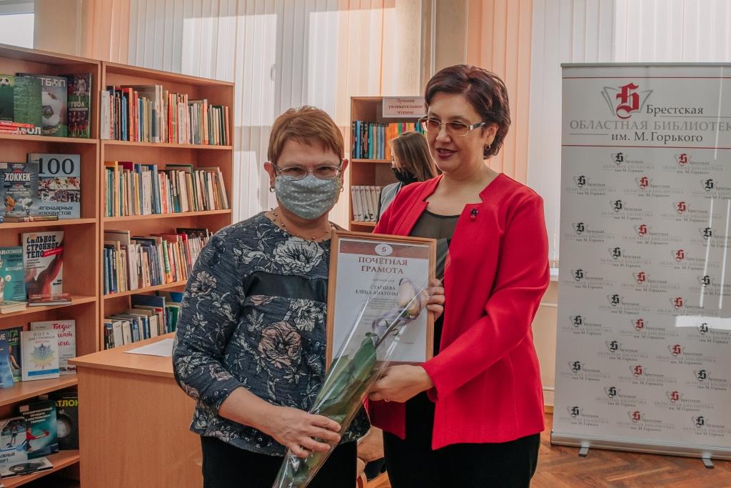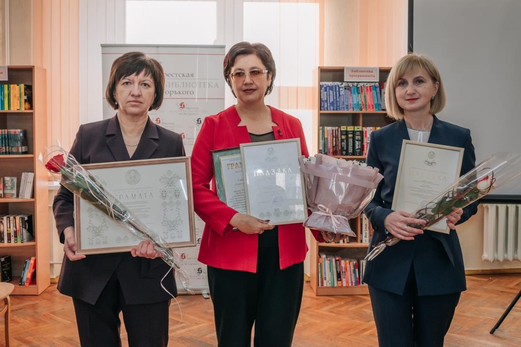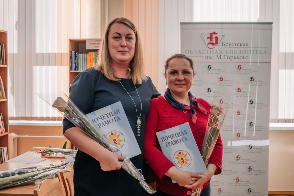 Почётные грамоты Брестской областной библиотеки им. М. Горького получили Говоруха Светлана Геннадьевна, заведующий отделом комплектования фондов, Заколодкина Галина Фёдоровна, гардеробщик, Козыра Зинаида Гаврииловна, главный библиотекарь сектора регистрации читателей, Матвеева Галина Юрьевна, библиотекарь отдела литературы для детей и юношества, Михайлова Виктория Александровна, заведующий отделом социокультурной деятельности и маркетинга, Миклух Нина Ивановна, библиотекарь отдела хранения основного фонда, Старцева Елена Анатольевна, главный библиотекарь отдела комплектования фондов, Явтухович Ирина Здиславовна, бухгалтер I категории.