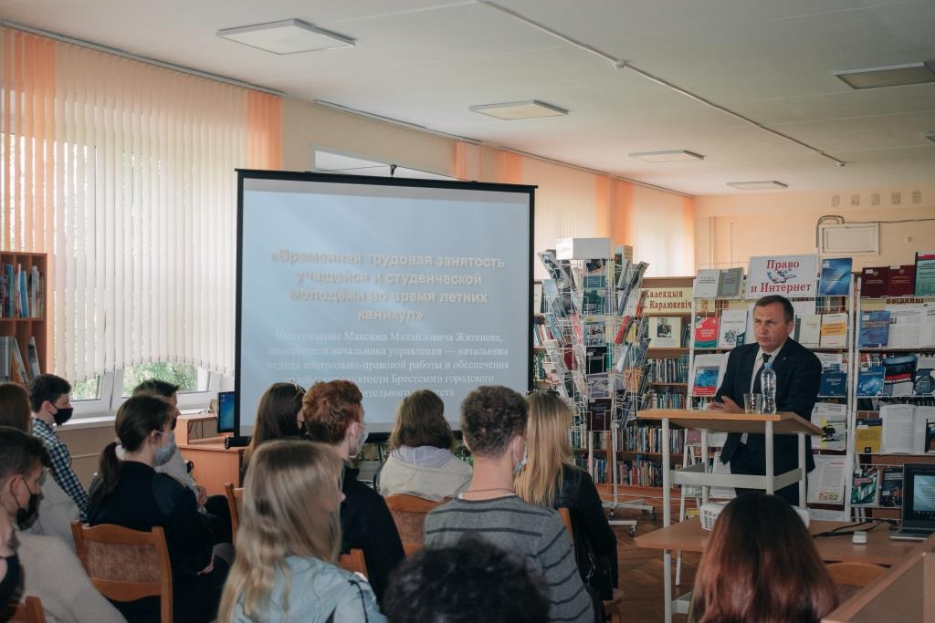 Асобная сустрэча з прадстаўнікамі ГА «БРСМ» другім сакратаром Брэсцкага гарадскога камітэта Клімовіч Вікторыяй Васільеўнай і членам валанцёрскага руху «Добрае сэрца» Цярэшка Надзеяй Вітальеўнай была прысвечана валанцёрскаму і студатрадаўскаму руху. Пытанні працоўнай актыўнасці моладзі асвятляліся спецыялістам упраўлення па працы, занятасцi i сацыяльнай абароне Брэсцкага гарвыканкама Жыцянёвым Максімам Міхайлавічам. Тэма яго кансультацыі — «Часовая працоўная занятасць вучнёўскай і студэнцкай моладзі падчас летніх канікул».