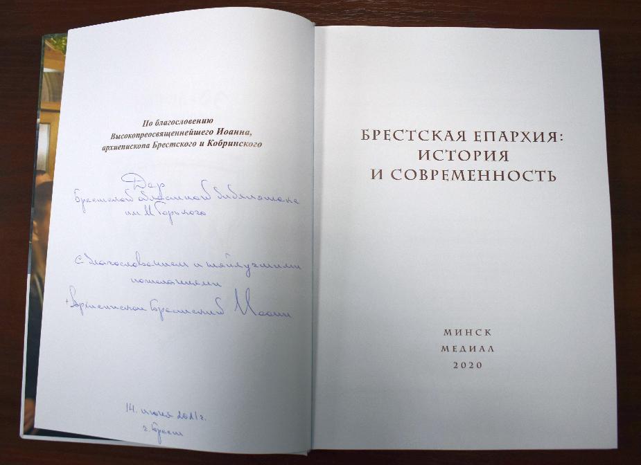 14 чэрвеня 2021 г. у Брэсцкай абласной бібліятэцы імя М. Горкага адбылася прэзентацыя кнігі «Брестская епархия: история и современность», прысвечанай 30-годдзю адраджэння Брэсцкай епархіі Беларускай праваслаўнай царквы.