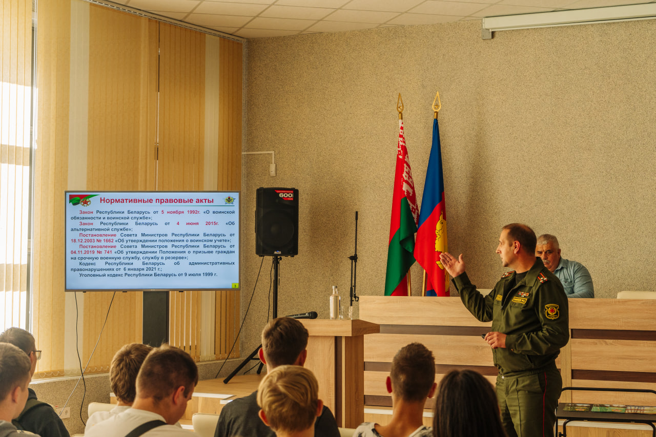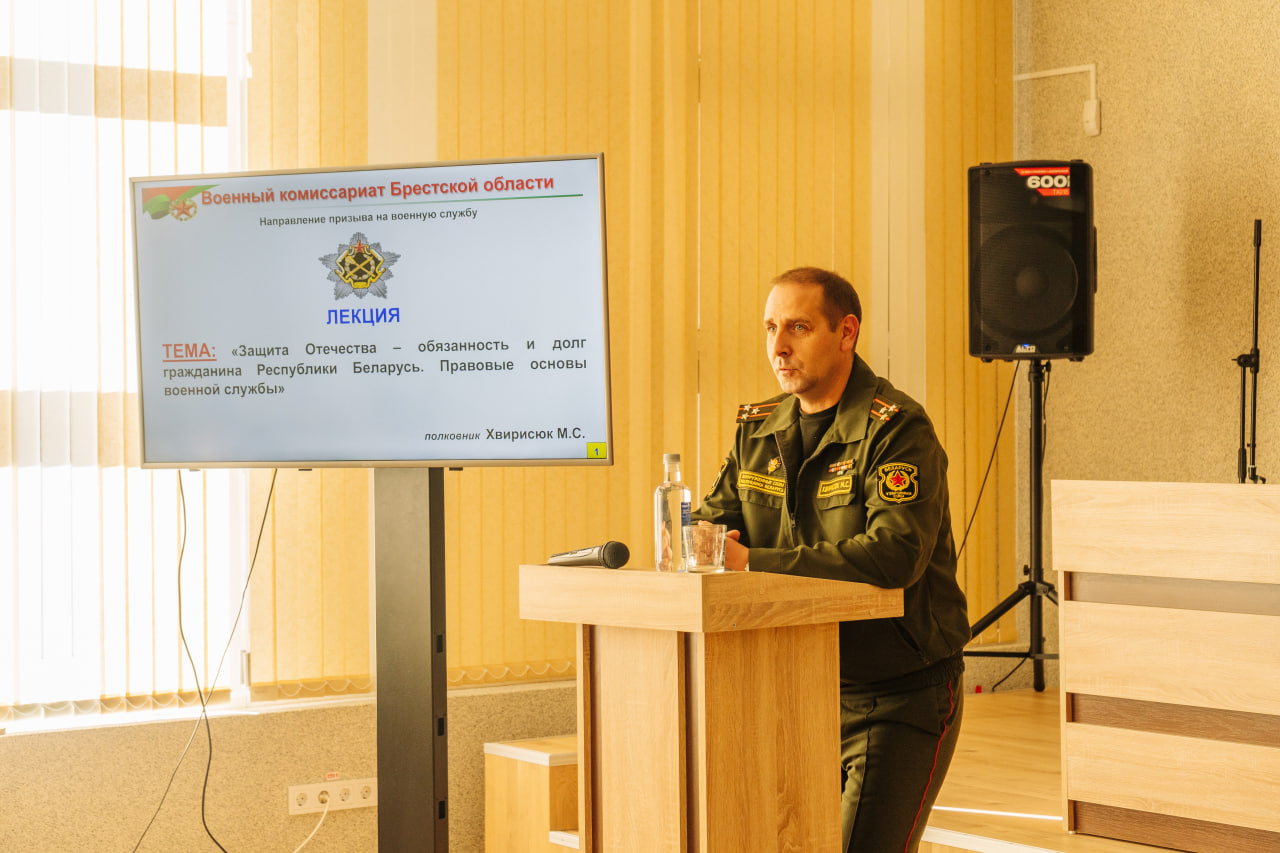 М. С. Хвірысюк распавёў прысутным аб тым, што такое вайсковы абавязак, хто вызваляецца ад праходжання вайсковай службы, каму прадастаўляецца адтэрміноўка; згадаў аб ільготах пры паступленні на працу і ў вышэйшыя навучальныя ўстановы; спыніўся на класіфікацыі відаў ваеннай службы (па прызыву, альтэрнатыўнай, службе па кантракце, службе ў рэзерве); папярэдзіў аб юрыдычнай адказнасці за няяўку грамадзяніна па позве ў ваенкамат.