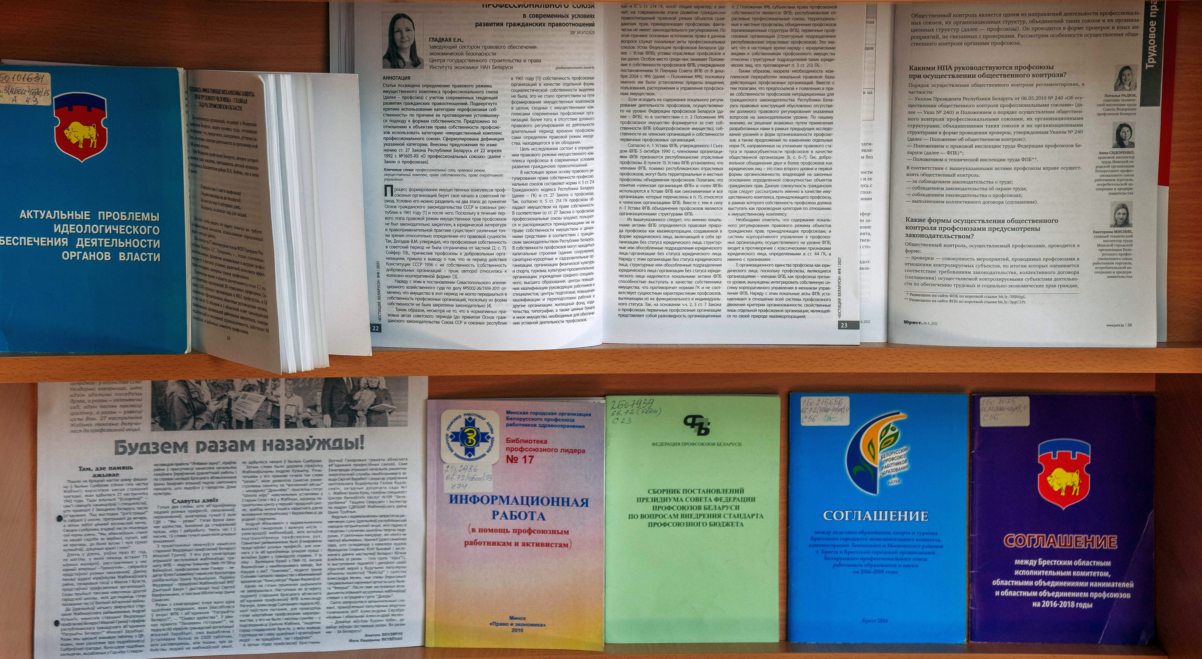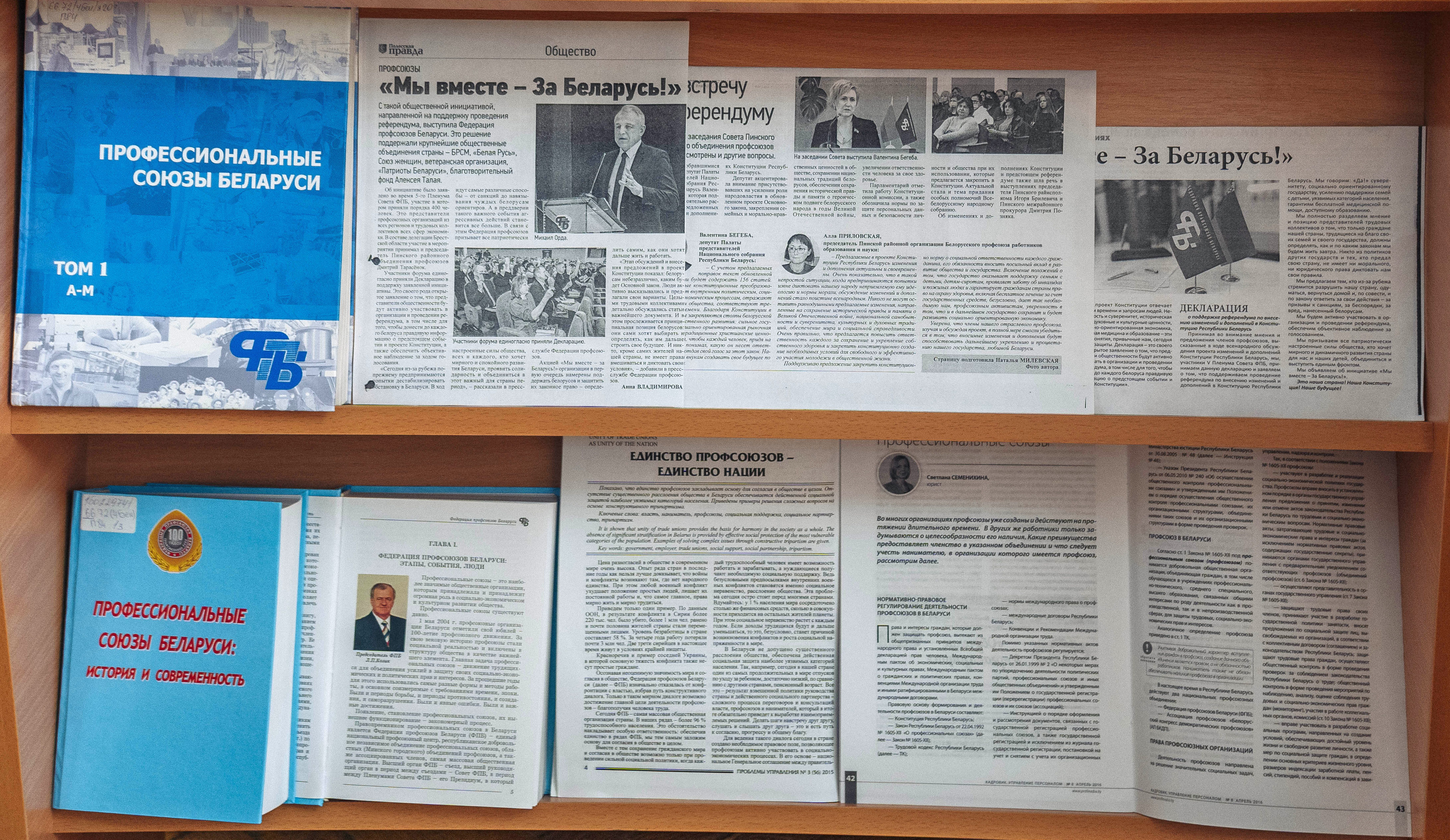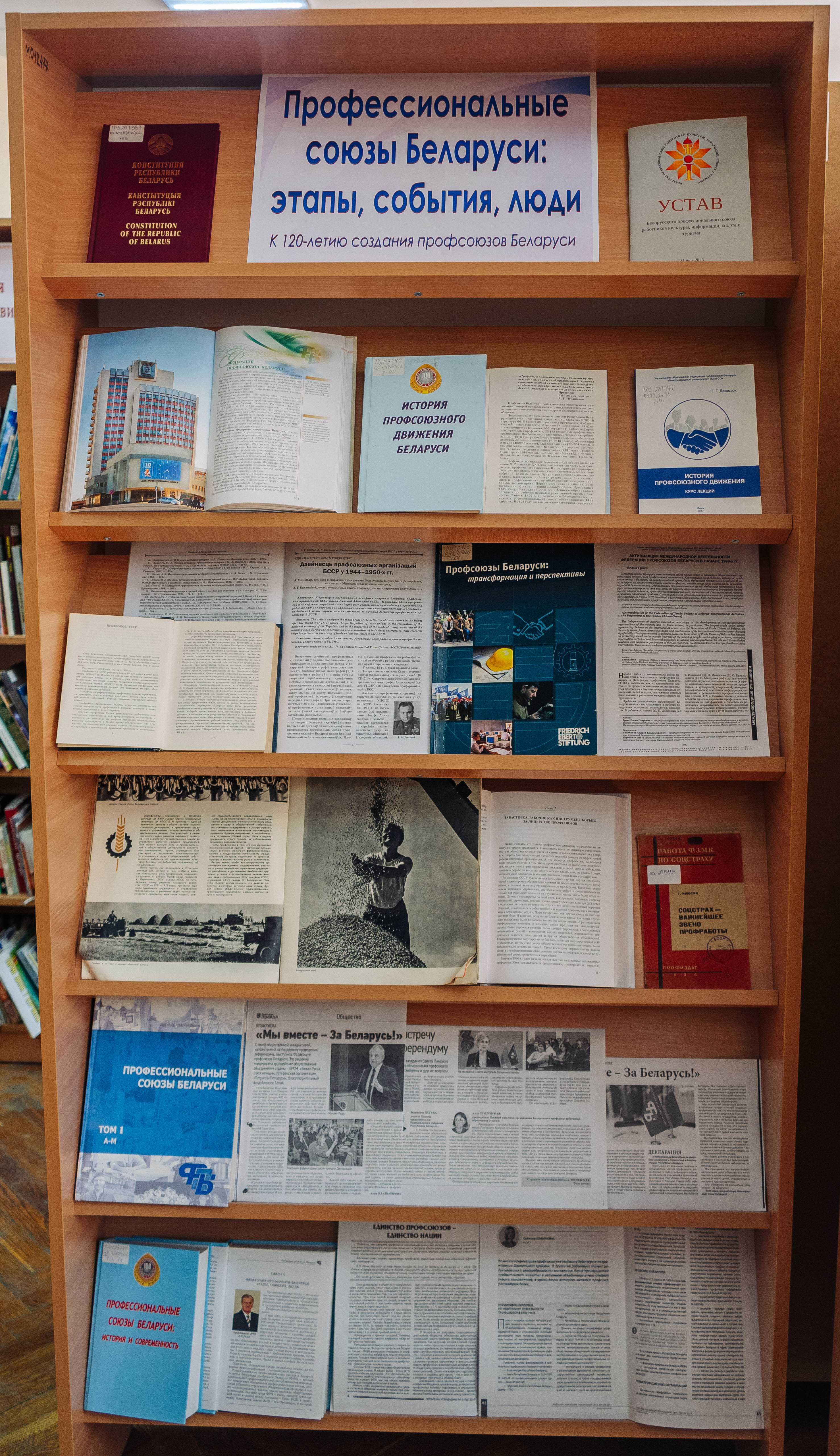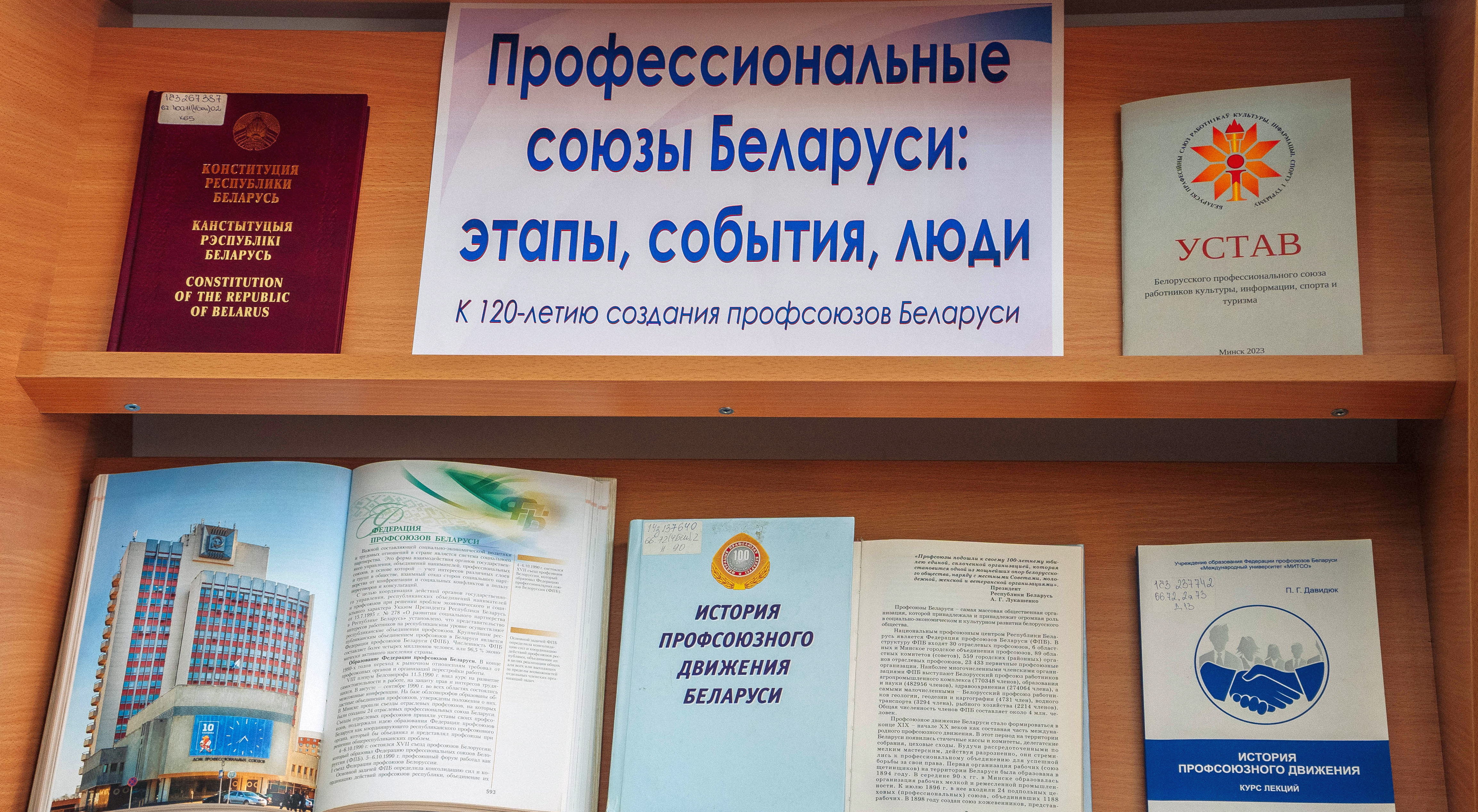 У агульнай чытальнай зале Брэсцкай абласной бібліятэкі імя М. Горкага прадстаўлена выстава «Прафесійныя саюзы Беларусі: этапы, падзеі, людзі», прымеркаваная да 120-годдзя стварэння прафсаюзаў Беларусі. На выставе прадстаўлены кнігі і публікацыі з перыядычных выданняў аб гісторыі стварэння і развіцця прафсаюзнага руху. Сярод дакументаў — Статут Беларускага прафесійнага саюза работнікаў культуры, інфармацыі, спорту і турызму; «Справочник профсоюзного лидера», які змяшчае шэраг матэрыялаў па правядзенні сходаў, канферэнцый у прафсаюзных арганізацыях, грамадскаму кантролю за выкананнем заканадаўства аб працы і аб ахове працы.