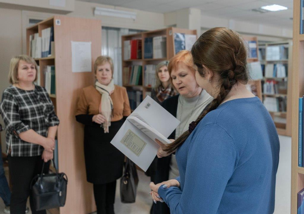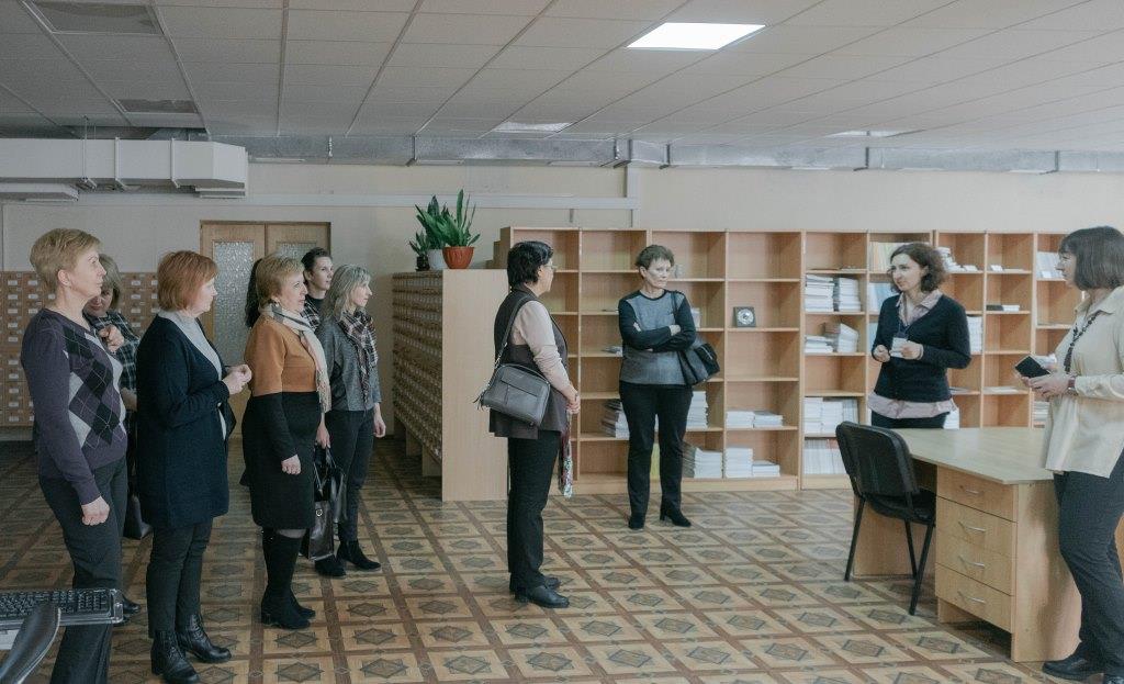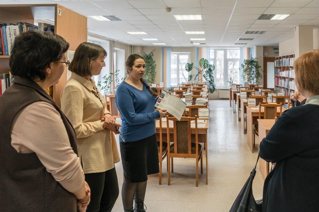 Намеснік дырэктара па навукова-метадычнай М. Г. Пшыбытка пазнаёміла з асноўнымі напрамкамі работы аддзелаў, формамі абслугоўвання карыстальнікаў, электроннымі рэсурсамі ўласнай генерацыі.