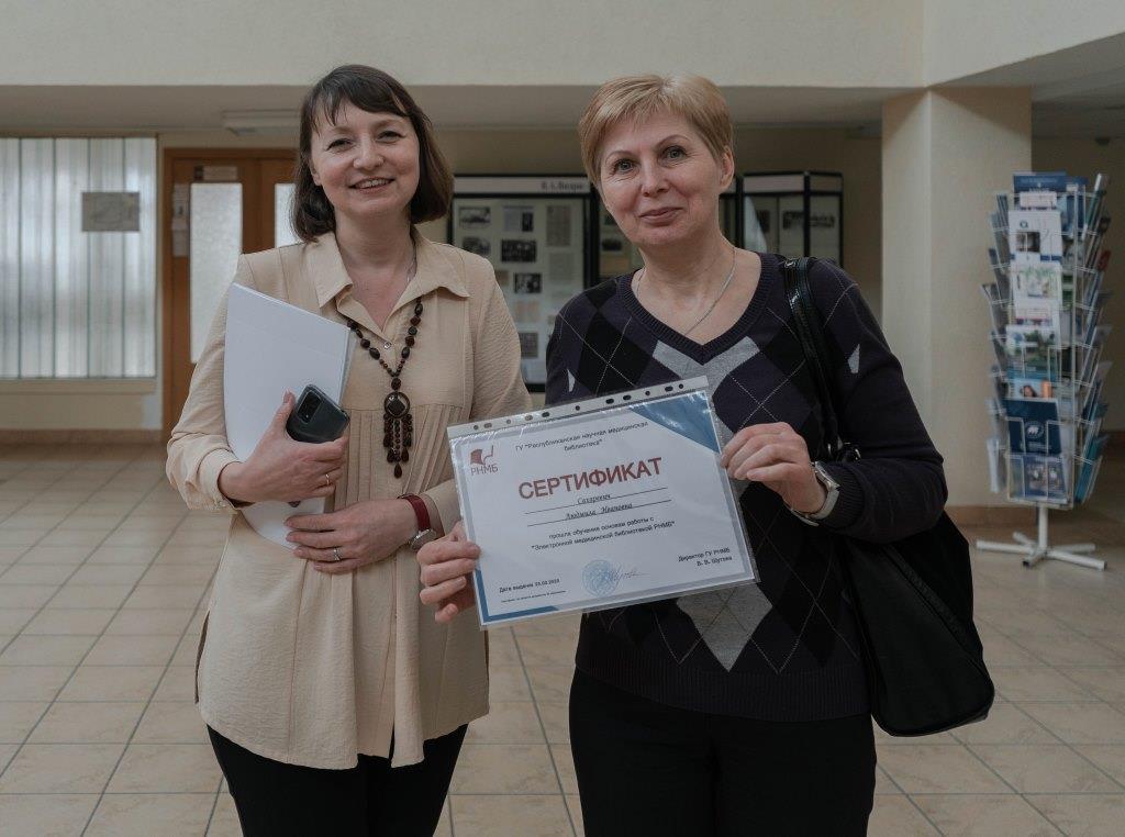 Загадчык агульнай чытальнай залы Т. В. Глазкова, загадчык аддзела перыядычных выданняў Л. І. Сахарэвіч, вядучы бібліятэкар аддзела фарміравання электронных інфармацыйных рэсурсаў М. С. Шыян прайшлі навучанне асновам працы з электроннай медыцынскай бібліятэкай (ЭМБ) РНМБ, доступ да якой у бліжэйшы час будзе даступны карыстальнікам абласной бібліятэкі.