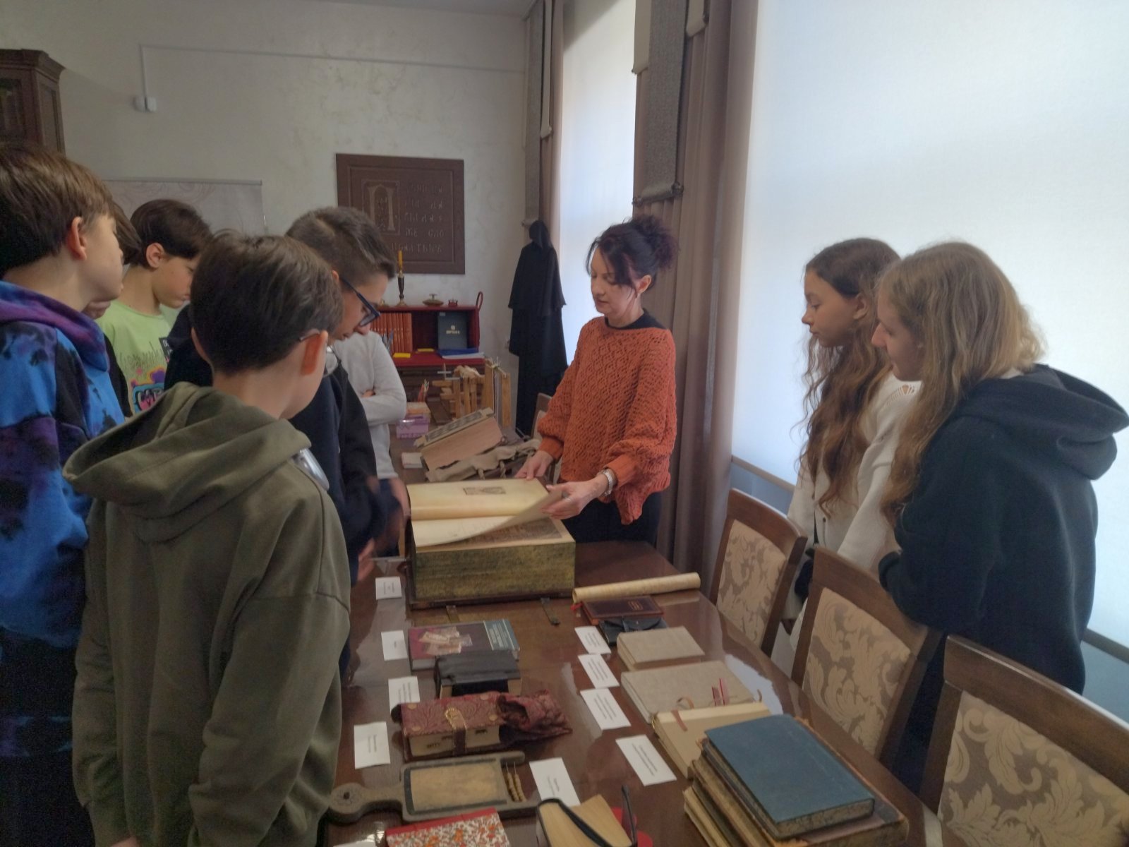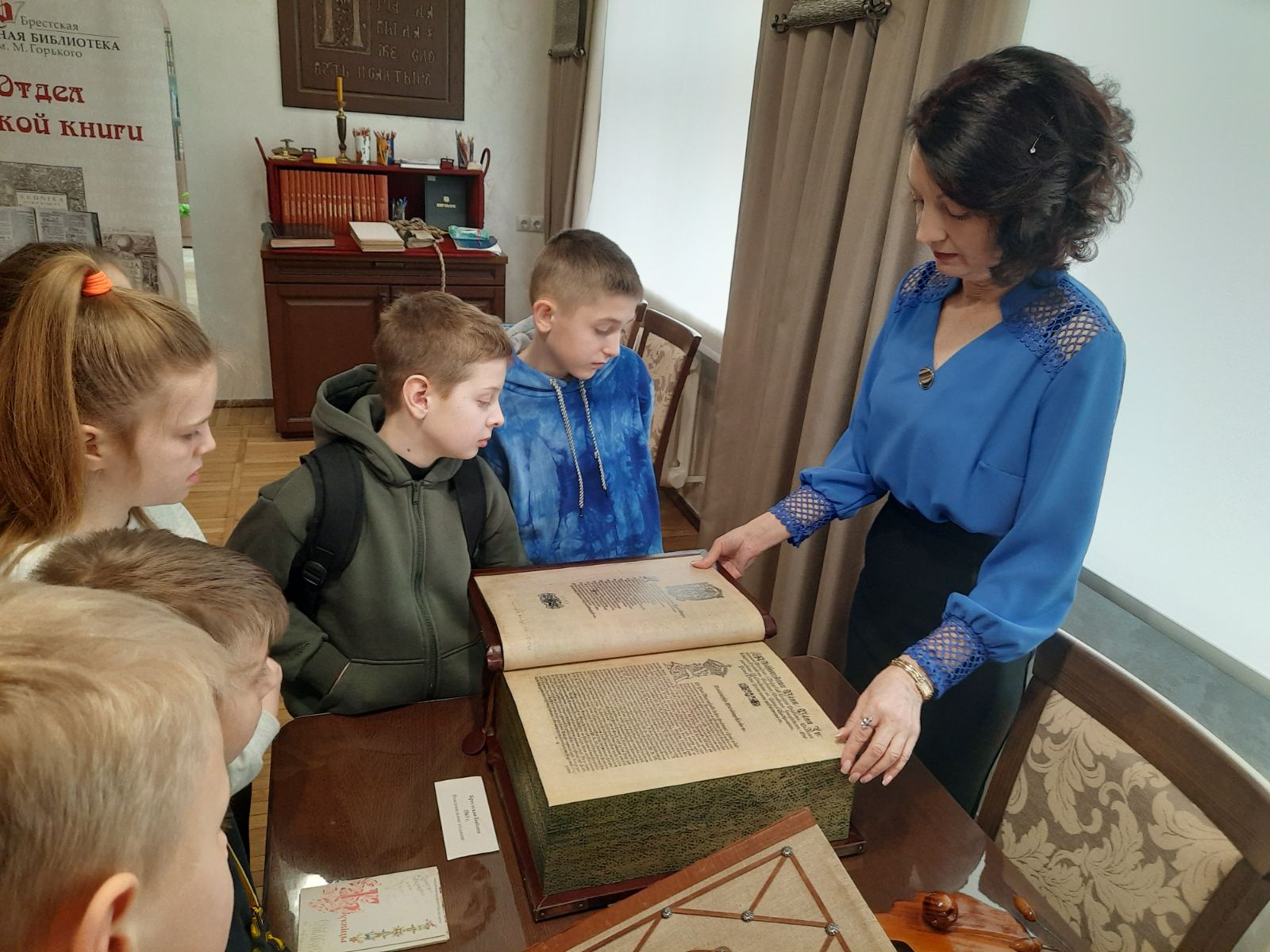 2025 год у сектары рэдкай кнігі Брэсцкай абласной бібліятэкі пачаўся вельмі актыўна. Кожную суботу, пачынаючы з 4 студзеня, у нас у гасцях навучэнцы розных устаноў адукацыі. Нас наведалі вучні з сярэдніх школ №№ 3, 7, гімназіі № 5 г. Брэста, школ г. п. Дамачава і аг. Клейнікі. Навучэнцам падабаецца праводзіць у сектары рэдкай кнігі свой шосты школьны дзень. Тут цікава і маленькім трэцяклашкам і ўжо дарослым вучням адзінаццатага класа.