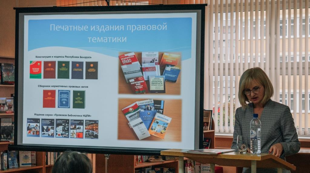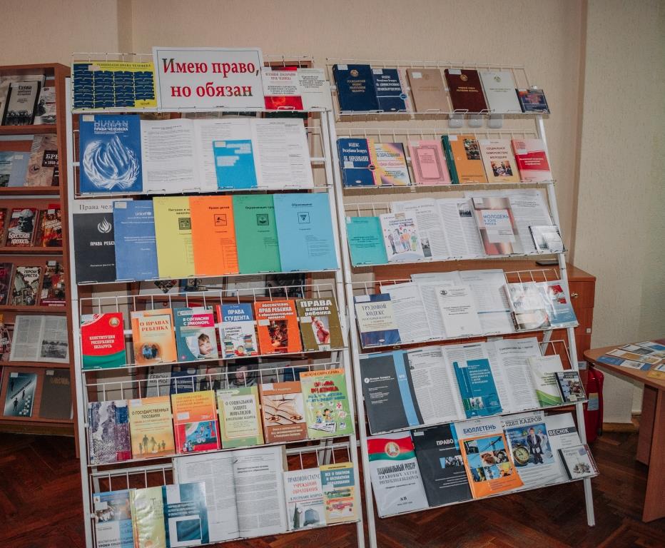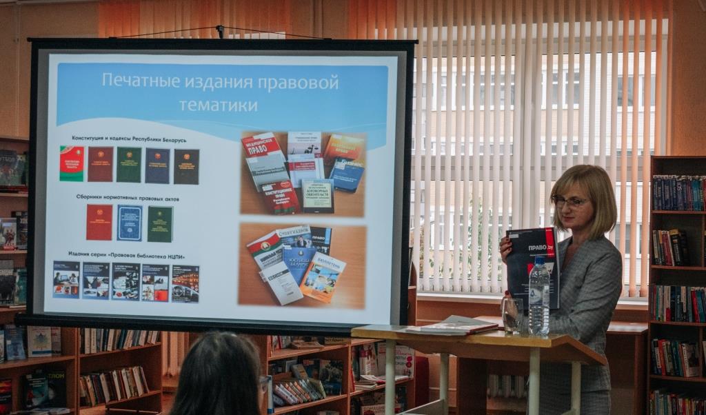 Напрыканцы заняткаў адбылася мультымедыйная прэзентацыя рэсурсаў ПЦПІ Бібліятэкі і агляд кніжнай выставы «Имею право, но обязан».
