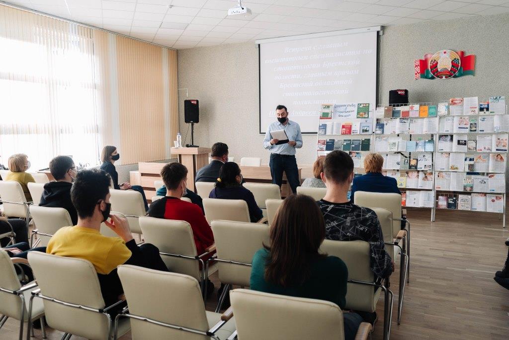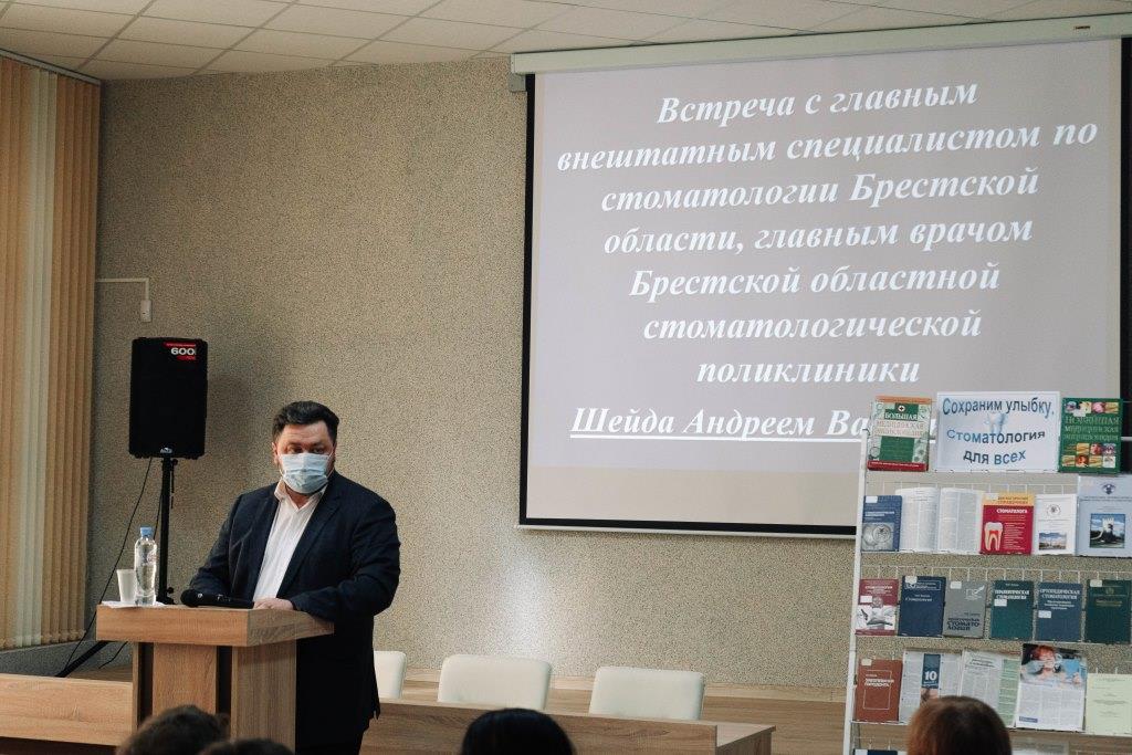 Спікерам сустрэчы стаў галоўны няштатны спецыяліст па стаматалогіі Брэсцкай вобласці, галоўны ўрач Брэсцкай абласной стаматалагічнай паліклінікі Андрэй Васільевіч Шэйда.