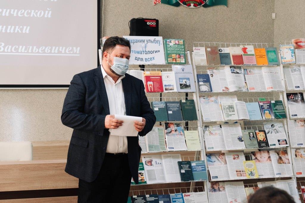 У ходзе выступлення ён расказаў аб гісторыі зараджэння Міжнароднага дня стаматолага, аб сучасным развіцці стаматалагічнай навукі і практыкі. Падрабязна спыніўся на асноўных праблемах, звязаных з захворваннямі паражніны рота, метадах і тэхніках лячэння, а таксама аб важных прафілактычных мерах.