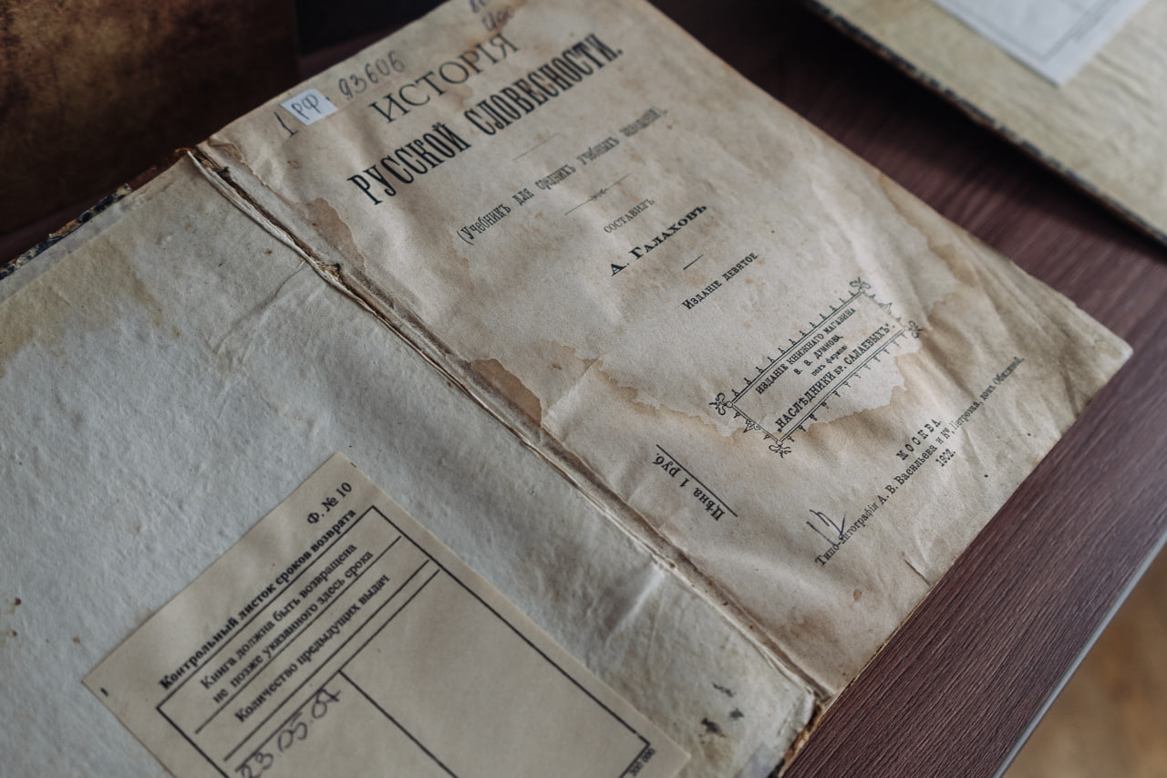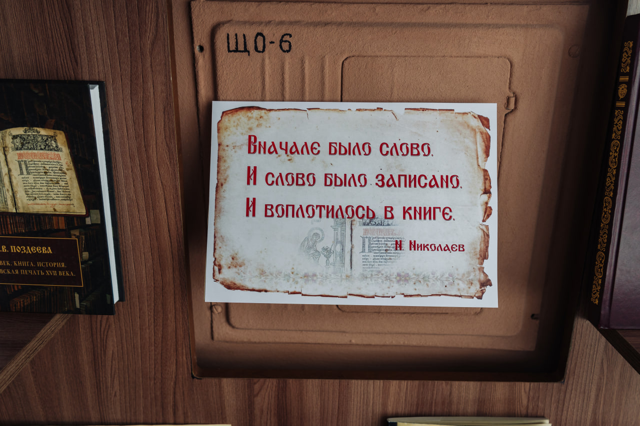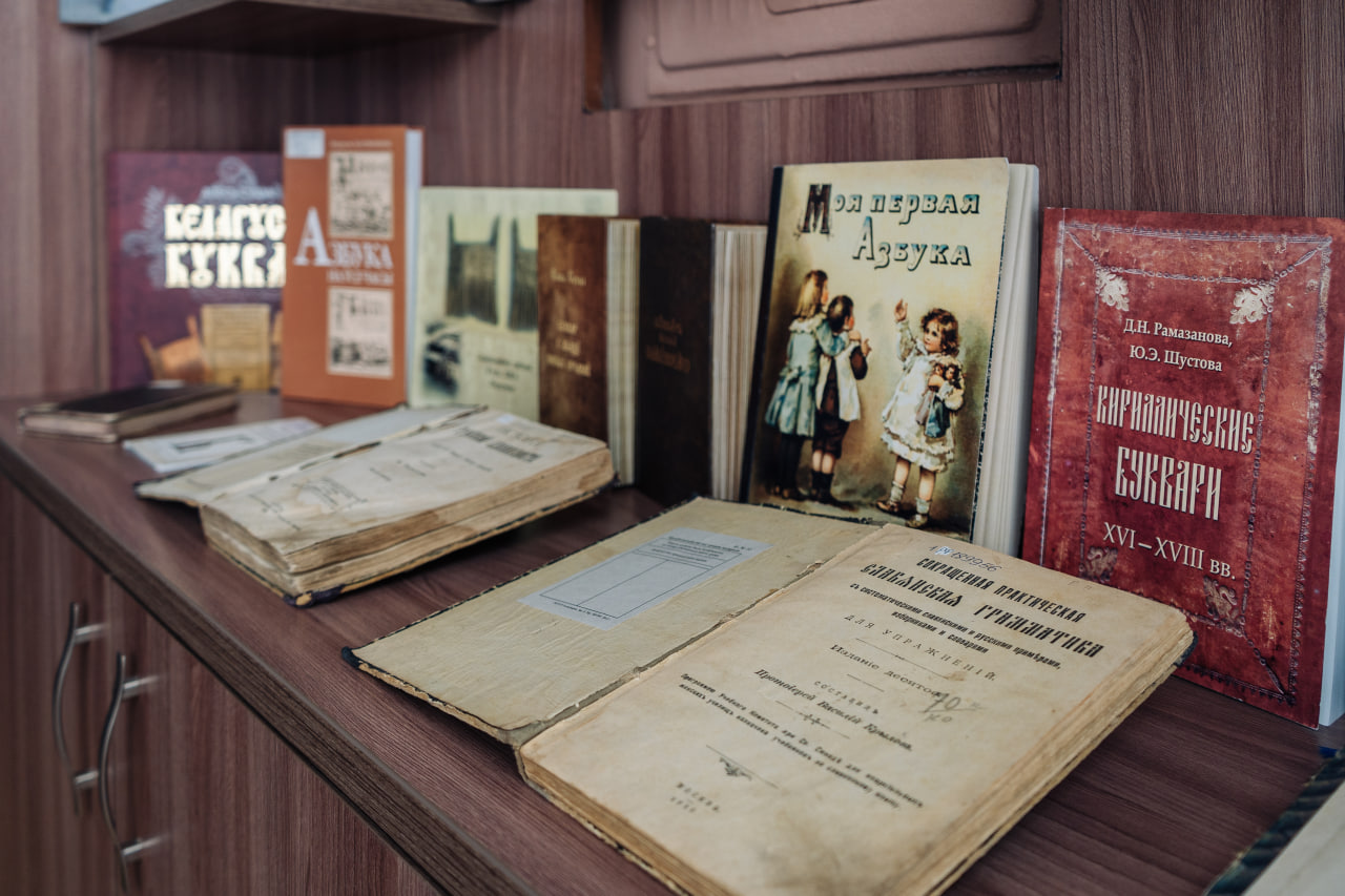Асаблівай увагі заслугоўваюць прадстаўленыя на выставе выданні, надрукаваныя больш за 100 гадоў таму: «История русской словесности (учебник для средних учебных заведений)» (1902 г.), «Сокращенная практическая славянская грамматика» (1912 г.), журнал «Филологические записки» (1879 г.). У іх можна знайсці інфармацыю аб Кірыле і Мяфодзіі, аб славянскім алфавіце і правапісе, аб царкоўна-славянскай мове з тлумачэннем яе этымалогіі і абазначэннем яе месца сярод іншых славянскіх моў.