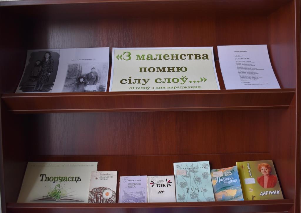 З нагоды юбілею таленавітай пісьменніцы і ганаровай чытачкі Брэсцкай абласной бібліятэкі імя М. Горкага Зінаіды Дудзюк у аддзеле краязнаўчай літаратуры і бібліяграфіі экспануецца кніжная выстава «З маленства помню сілу слоў…».