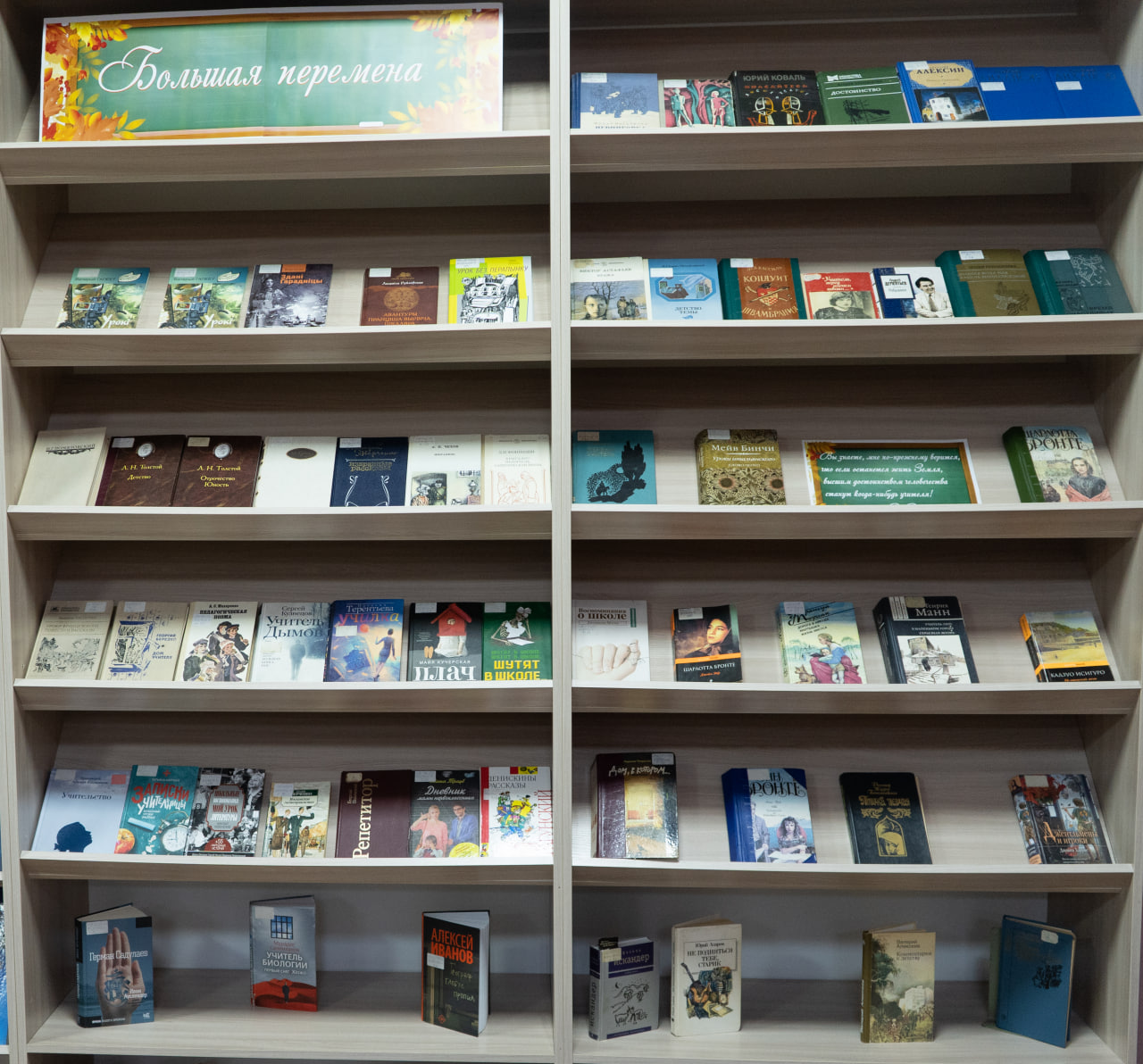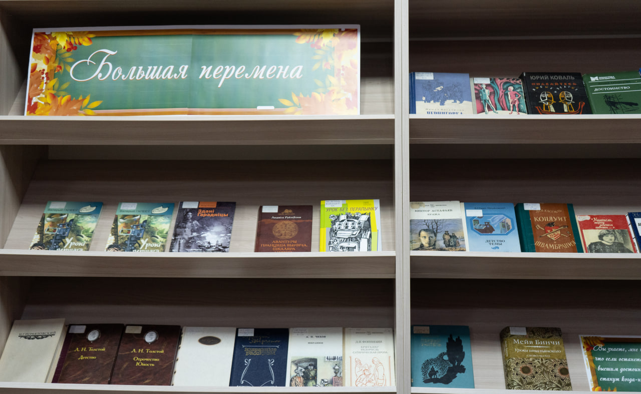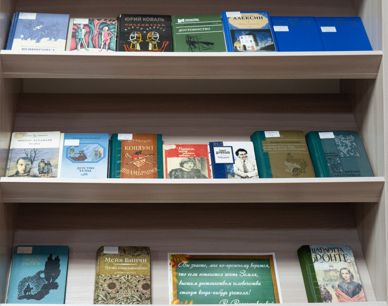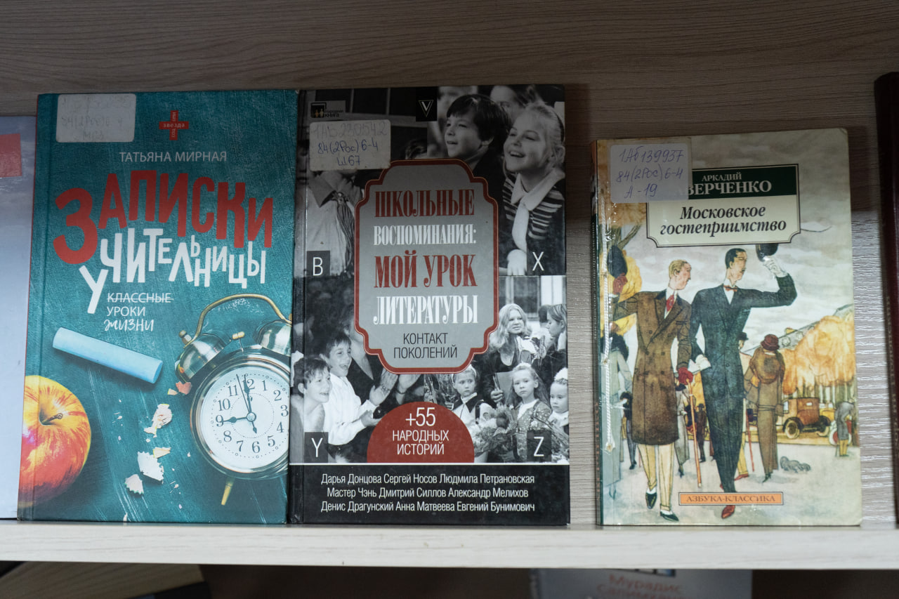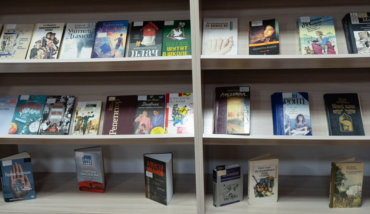 Прадстаўлены ў экспазіцыі кнігі сучасных пісьменнікаў «Учитель биологии» М. Селімханава (Масква, 2020), «Иван Ауслендер» Г. Садулаева (Масква, 2017), «Учитель Дымов» С. Кузняцова (Масква, 2017), «Дневник мамы первоклассника» М. Траўб (Масква, 2014), «Плач по уехавшей учительнице рисования» М. Кучэрскай (Масква, 2014), «Географ глобус пропил» А. Іванова (Масква, 2019), «Училка» Н. Цярэнцьевай (Масква, 2013) і іншыя.