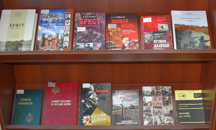 На выставе прадстаўлены энцыклапедыі, кнігі па гісторыі Брэста, успаміны ўдзельнікаў Вялікай Айчыннай вайны. Сярод экспануемых выданняў «Брестская крепость: война и мир» (Брэст, 2010), Р. Аліеў і І. Рыжоў «Брест и Крепость: трагический июнь» (Масква, 2016), Г. А. Грабёнкіна «Брест непокорённый» (Мінск, 2015), «На абпаленых крылах: кніга ўспамінаў непаўналетніх вязняў фашызму» (Мінск, 2012) і інш.