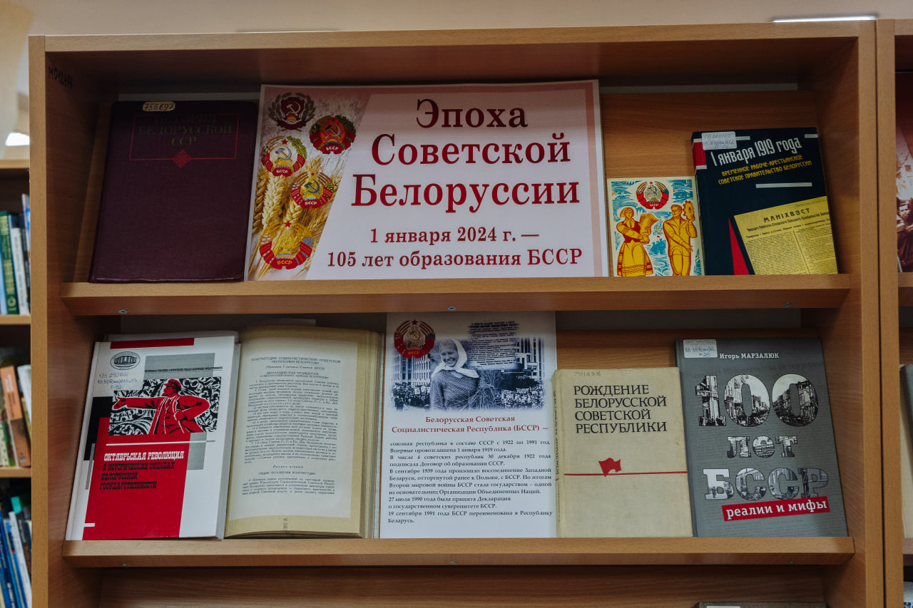 К 105-летию со дня образования БССР в Брестской областной библиотеке им. М. Горького организована выставка «Эпоха Советской Белоруссии». В неё включены документы, раскрывающие исторический путь белорусского государства: рождение республики, основные вехи и достижения в политической, экономической, социальной, научной, культурной сферах. На выставке представлены издания, характеризующие символы Советской Белоруссии, а также гордость республики — биографии и достижения выдающихся белорусов. Имеется много фотодокументов, иллюстрирующих этот исторический период.