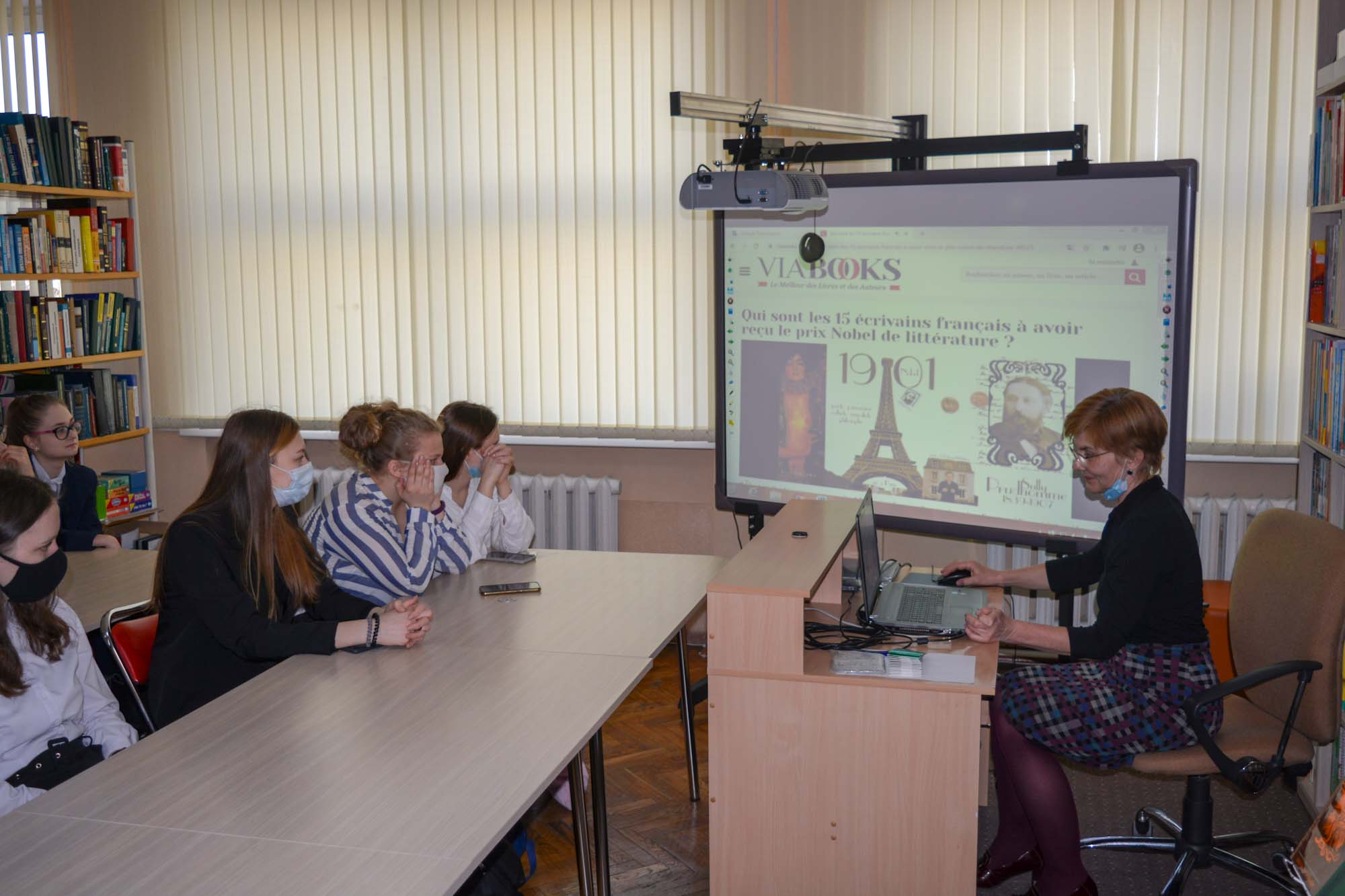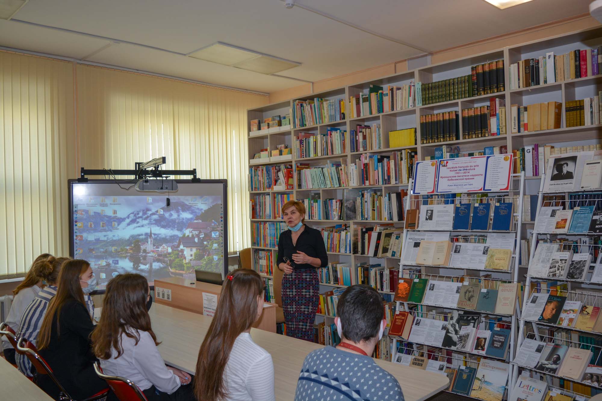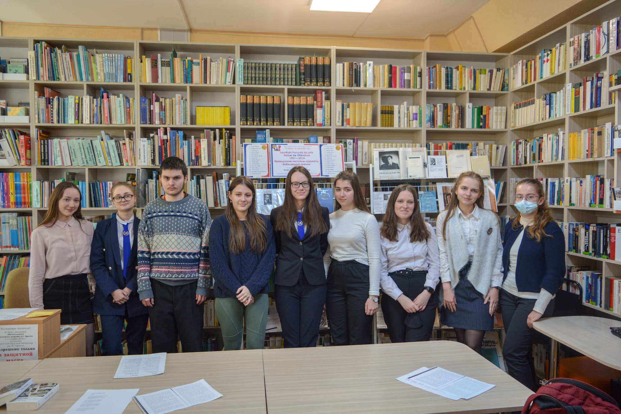 Першымі наведвальнікамі выставы сталі навучэнцы 10-га і 11-га білінгвістычных класаў СШ № 15 г. Брэста. Госці пазнаёміліся з матэрыяламі пра жыццё і творчасць 15 французскіх аўтараў, удастоеных высокай узнагароды, пачыталі на французскай і рускай мовах творы прадстаўленых пісьменнікаў, папрактыкаваліся ў мастацкім перакладзе. Напрыканцы мерапрыемства быў паказаны ўрывак з фільма па рамане Ражэ Мартэна дзю Гара «Сям’я Тыбо» на французскай мове.