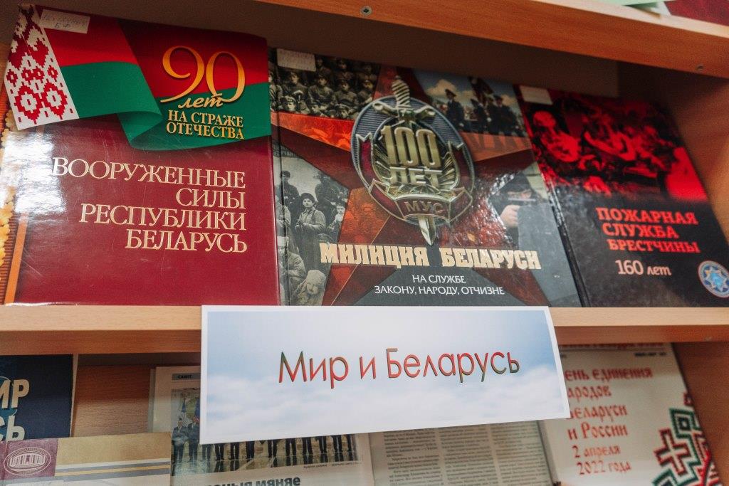 У рамках Года міру і стварэння ў агульнай чытальнай зале бібліятэкі арганізавана выстава літаратуры «Беларусь суверэнная: ад адзінства да міру і стварэння». Матэрыялы раздзела «Абаронім гісторыю, захаваем памяць» знаёмяць са знакавымі датамі і падзеямі найноўшай гісторыі Беларусі, якія паўплывалі на далейшы ход развіцця беларускай дзяржаўнасці: утварэнне Беларускай Савецкай Сацыялістычнай Рэспублікі (БССР); уз'яднанне Заходняй Беларусі з БССР; трагічныя старонкі акупацыі Беларусі ў час Вялікай Айчыннай вайны; гісторыя рэспублікі ў складзе СССР; адукацыя Рэспублікі Беларусь. Прыведзены прыклады сучаснага падыходу да работы па ваенна-патрыятычным выхаванні моладзі.