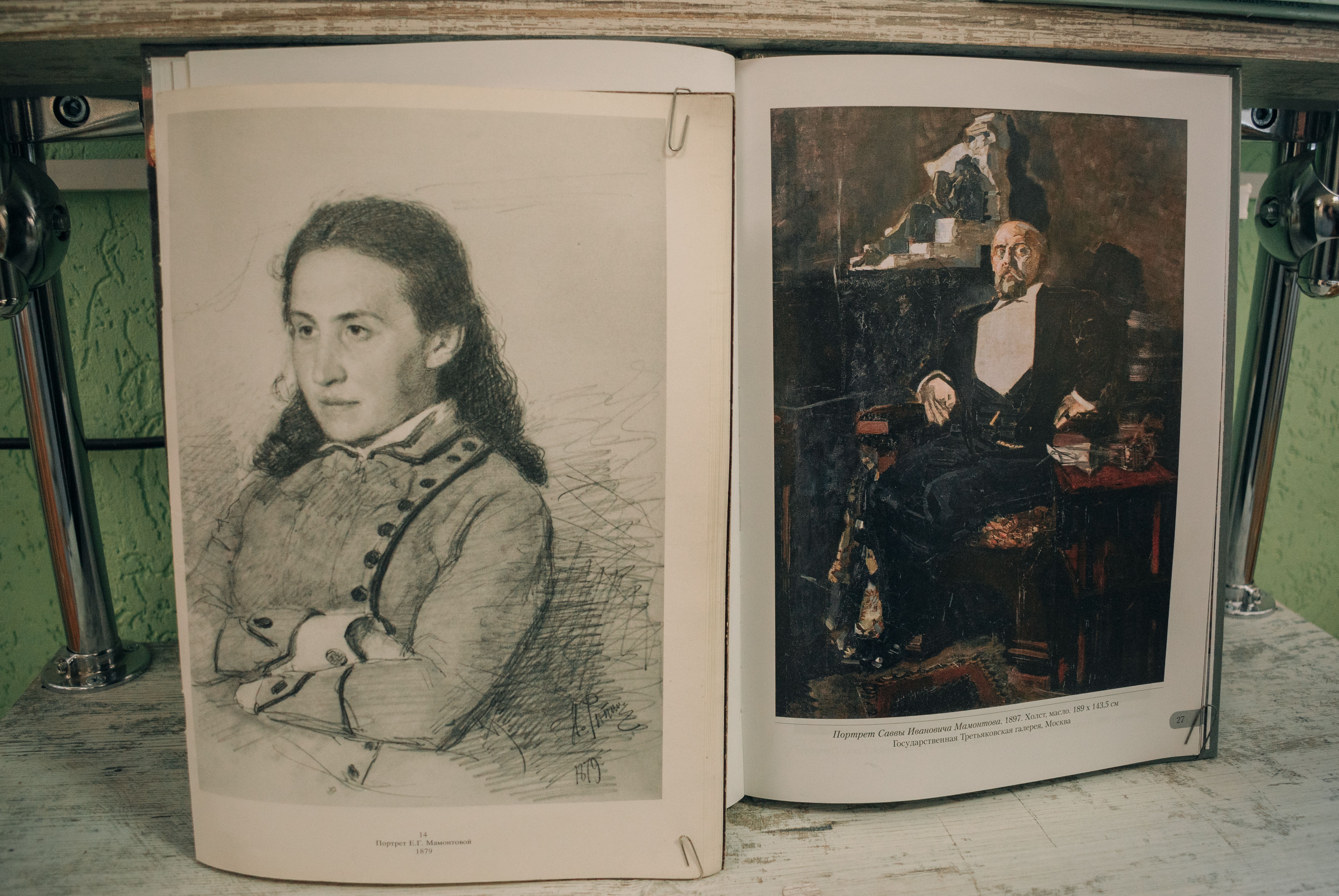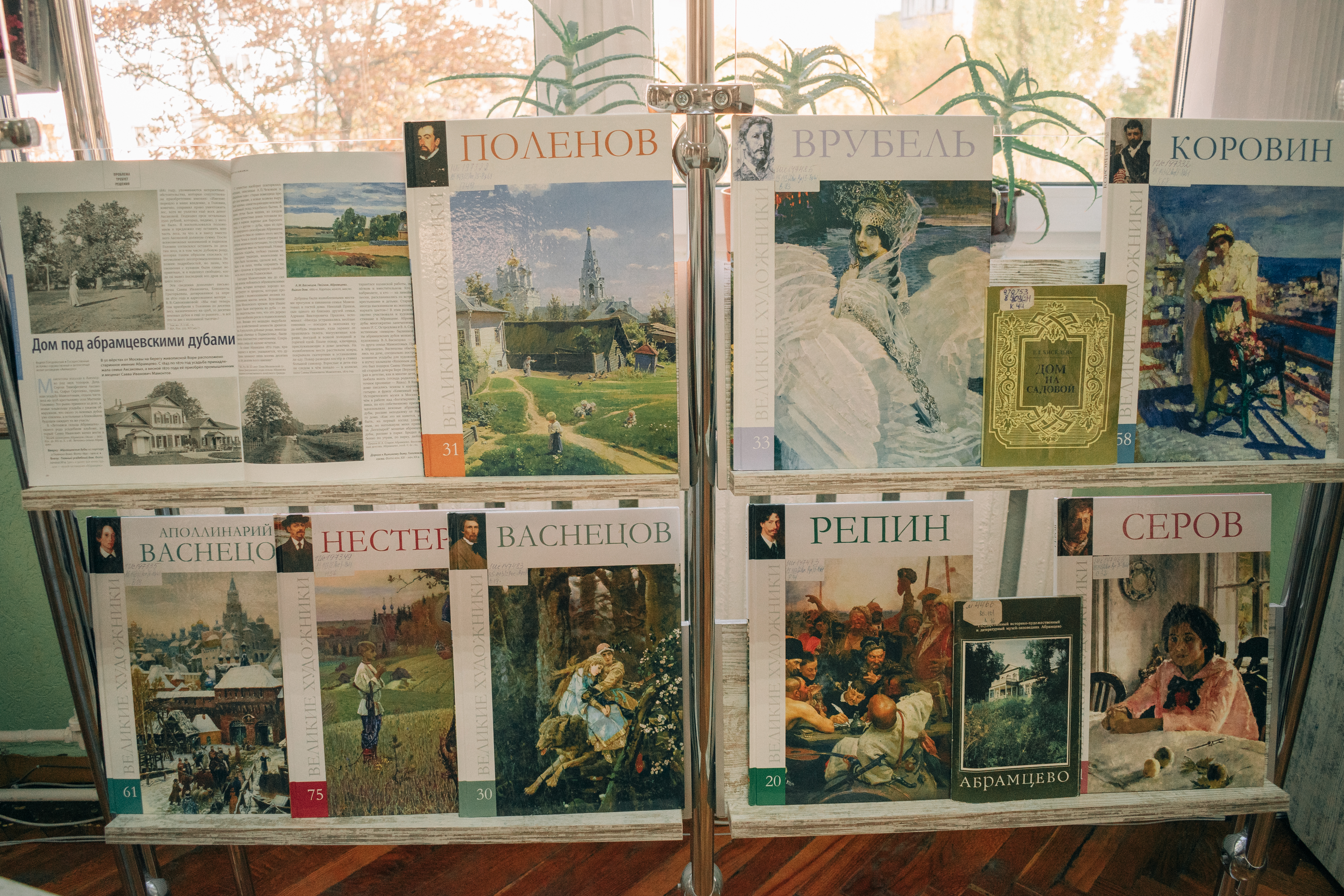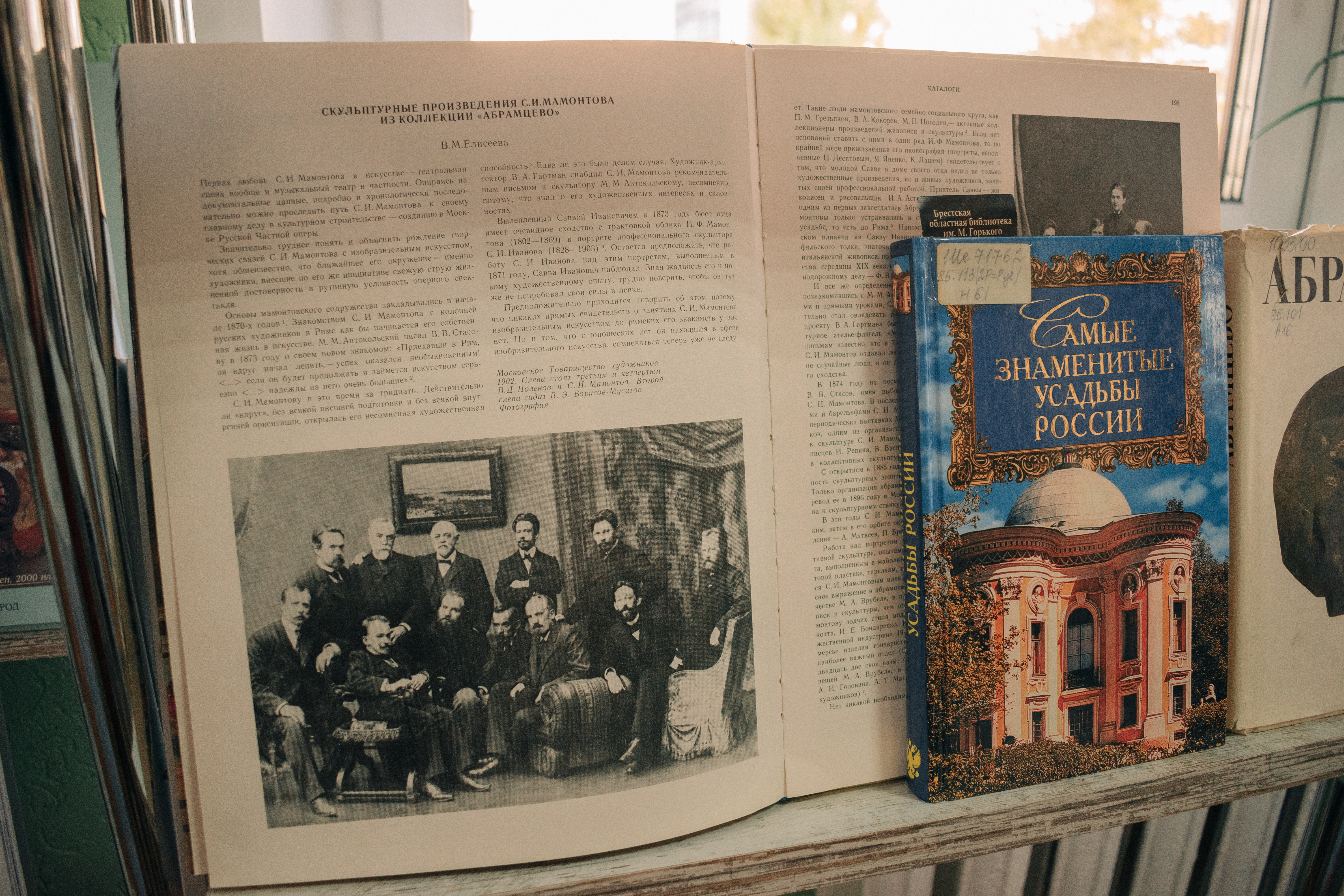 На экспазіцыі прадстаўлена больш за 30 дакументаў: кнігі (мастацка-ілюстрацыйныя альбомы і энцыклапедыі), перыядычныя выданні, паштоўкі. Цікавасць уяўляе кніга М. Капшыцара «Мамонтов» з серыі «Жизнь в искусстве» — грунтоўнае даследаванне пра цікавага чалавека рускай культуры. Пытанне маскоўскага мецэнацтва абмяркоўваецца ў артыкуле С. Б. Вайткоўскага ў часопісе «Вопросы культурологии» (2014, № 5). З гісторыяй мастацкага гуртка С. І. Мамантава пазнаёмяць кнігі «Мамонтовский художественный кружок» з серыі «Великие художники», Д. З. Коган «Мамонтовский кружок» і інш.