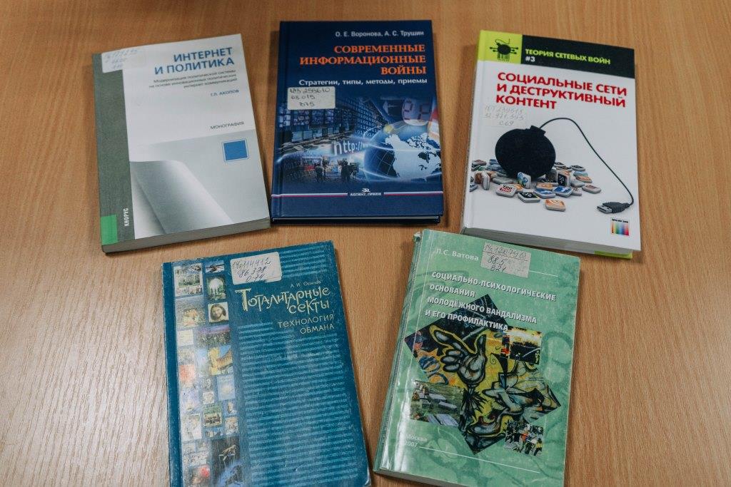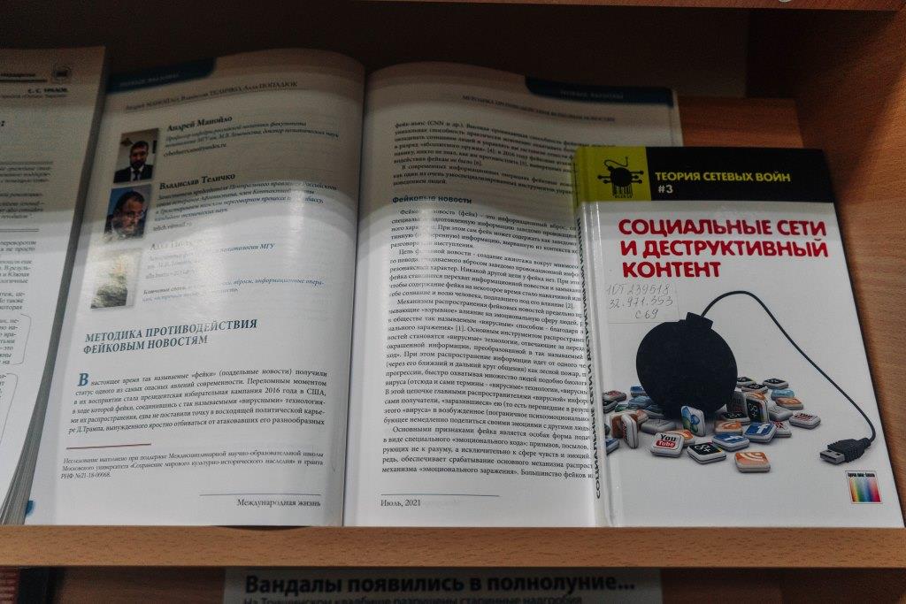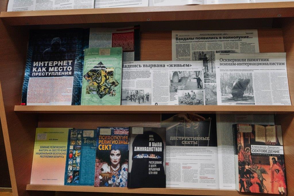 На выставе прадстаўлены матэрыялы, якія адлюстроўваюць асноўныя віды сучаснага экстрэмізму: нацыяналістычнага, рэлігійнага, маладзёжнага. У кнігах «Інтэрнэт і палітыка» (Г. Л. Акопаў), «Сучасныя інфармацыйныя войны: стратэгіі, тыпы, метады, прыёмы» (В. Я. Воранава, А. С. Трушын), «Сацыяльныя сеткі і дэструктыўны кантэнт» разглядаюцца навейшыя сродкі лічбавай маніпуляцыі масавай свядомасці: фэйкі і мемы, тролі і боты, тэхналогіі «постпраўды» і «гібрыднай прапаганды», «лічбавай дыпламатыі».