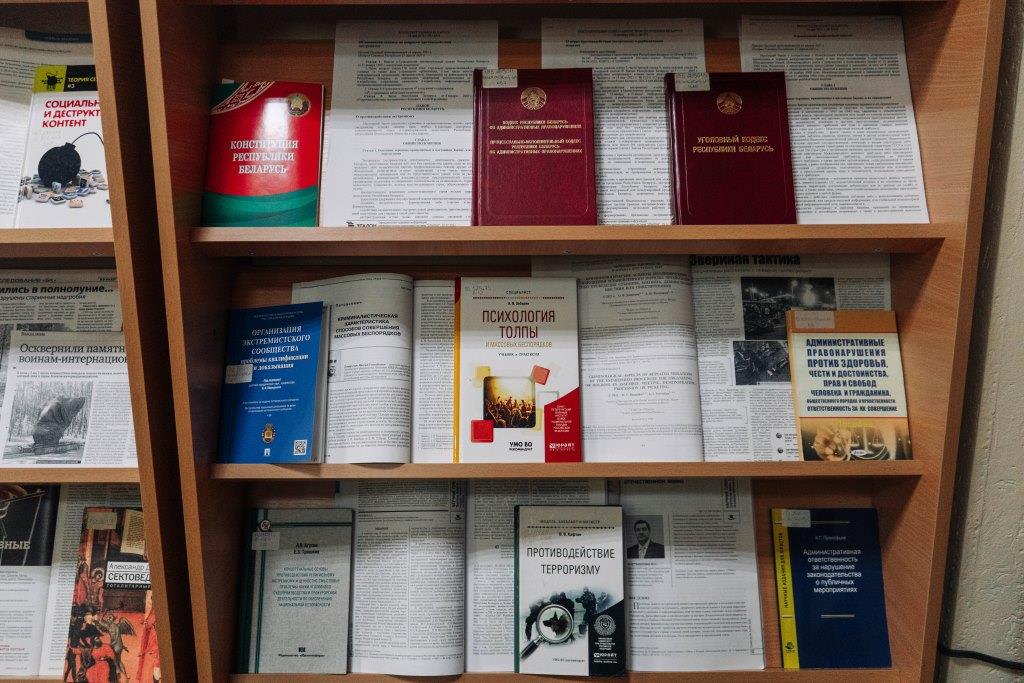 Прававую аснову дзейнасці па супрацьдзеянні экстрэмізму складаюць Канстытуцыя Рэспублікі Беларусь, Закон Рэспублікі Беларусь «Аб супрацьдзеянні экстрэмізму», «Аб змене законаў па пытаннях супрацьдзеяння экстрэмізму», «Аб недапушчэнні рэабілітацыі нацызму», якія прадстаўлены на нашай выставе. Асаблівую цікавасць выклікаюць артыкулы «Юрыдычная абарона памяці аб перамозе ў Вялікай Айчыннай вайне» (І. Э. Мартыненка), «Крымінальная адказнасць за рэабілітацыю нацызму ў Рэспубліцы Беларусь і іншых дзяржавах: падставы, міжнародны вопыт, практыка» (Д. Г. Паляшчук) і інш.