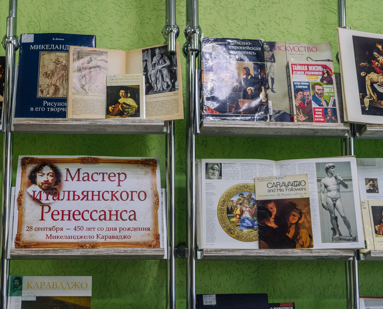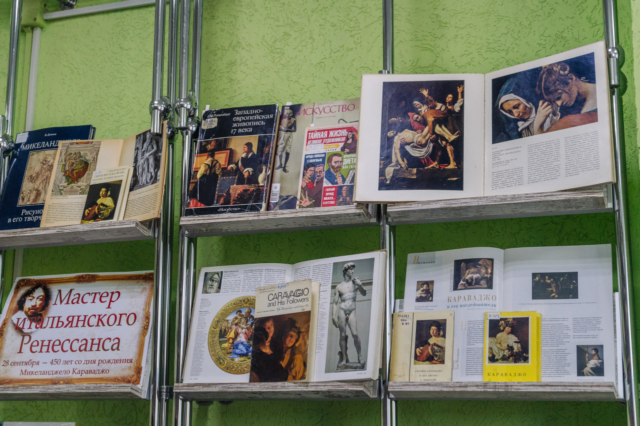 З 20 верасня 2023 г. у аддзеле літаратуры па мастацтве дзейнічае выстава «Мастер итальянского Ренессанса», прысвечаная 450-годдзю з дня нараджэння італьянскага мастака, рэфарматара еўрапейскага жывапісу XVII стагоддзя, заснавальніка рэалізму ў жывапісе Мікеланджэла Караваджа. Ён адзін з першых ужыў манеру пісьма «к’яраскура» — рэзкае супрацьпастаўленне святла і ценю. Караваджа ўнёс уклад у стварэнне новых жанраў у жывапісе — нацюрморта і бытавога жанру. Ягонае мастацтва аказала вялікі ўплыў на творчасць не толькі італьянскіх, але і вядучых заходнееўрапейскіх майстроў XVII стагоддзя: Рубенса, Веласкеса, Рэмбранта.