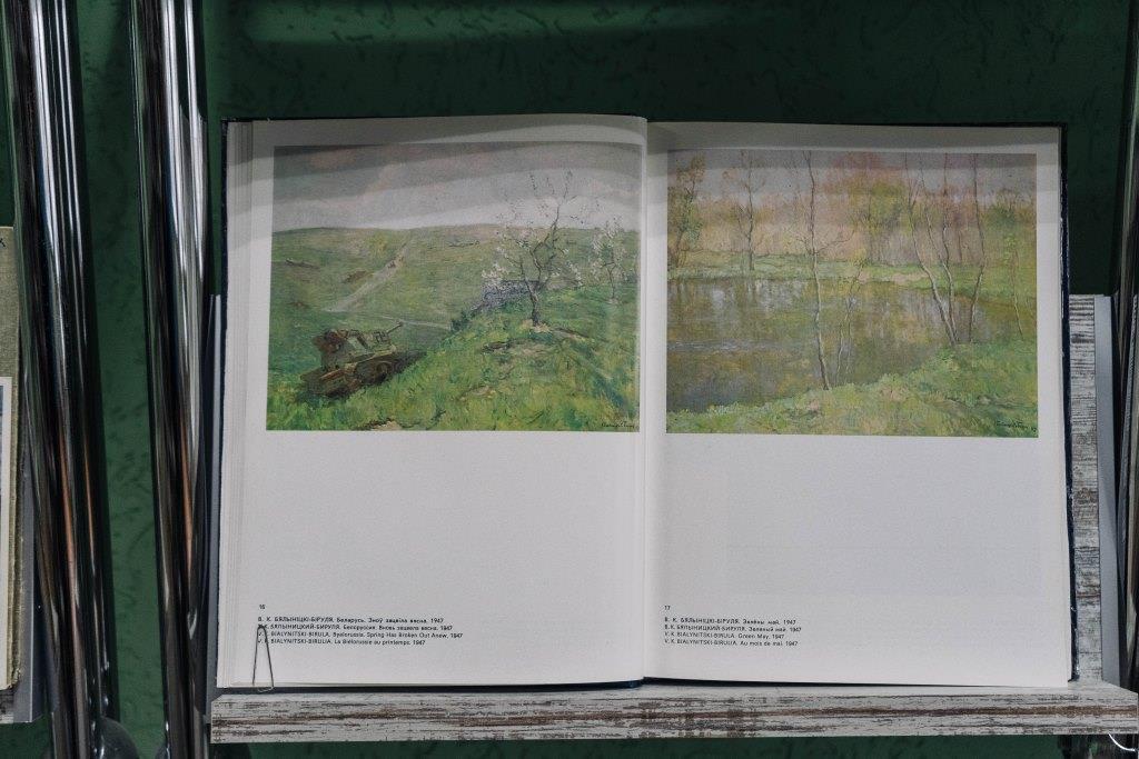 На выставе прадстаўлены кнігі аб жыцці і творчасці мастака, энцыклапедыі, мастацкія альбомы, перыядычныя выданні, камплекты паштовак, асобныя рэпрадукцыі. Кніга В. Карамазова «Крыж на зямлі і поўня ў небе» — гэта займальная аповесць аб жыцці жывапісца і паляўнічага Бялыніцкага-Бірулі. Звярніце ўвагу на кнігу Б. А. Крапака «Вяртанне імёнаў», аўтар якой распачаў спробу вярнуць імёны мастакоў, калісьці незаслужана забытых. Ілюстраваныя альбомы, прадстаўленыя на выставе, уключаюць рэпрадукцыі лепшых твораў мастака.