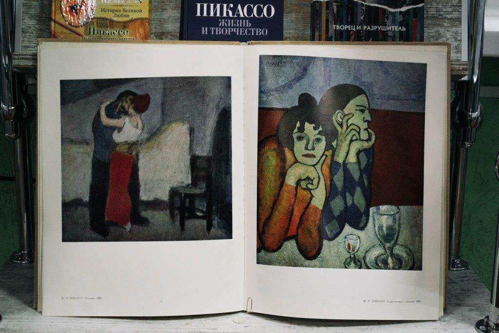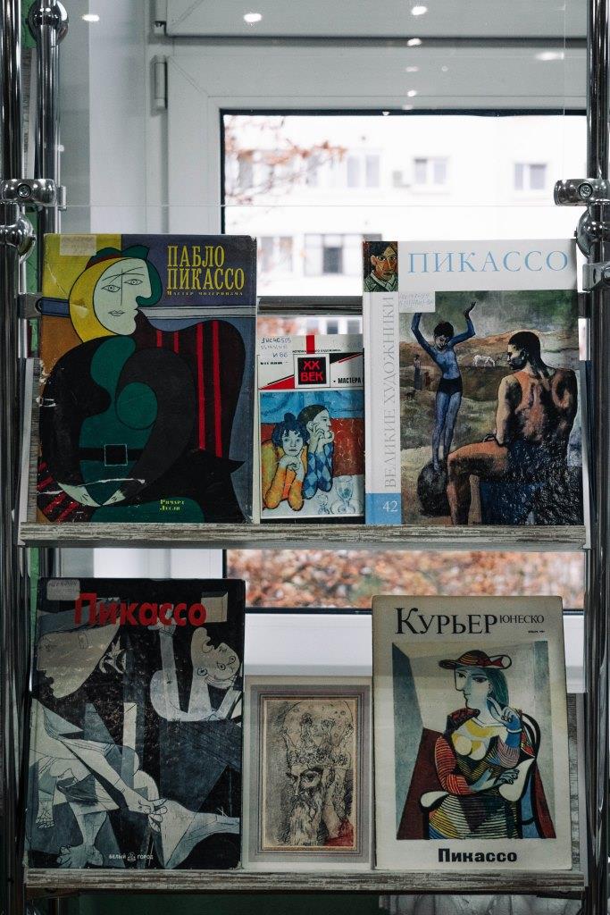 На экспазіцыі больш за 30 дакументаў: кнігі, перыядычныя выданні, паштоўкі. Сярод кніг дакументальныя даследаванні і ўспаміны пра лёс мастака: Мары-Лор Бернадак і Поль дзю Бушэ «Человек, который стал Пикассо», Р. Пенроўз «Пикассо. Жизнь и творчество», А. Стасінопулас-Хафінгтан «Пикассо. Творец и разрушитель», К. Рохас «Мифический и магический мир Пикассо». Цікавасць выклікаюць і камплекты паштовак: «Пабло Пикассо в музеях СССР», «Керамика Пикассо», «Графика Пикассо».