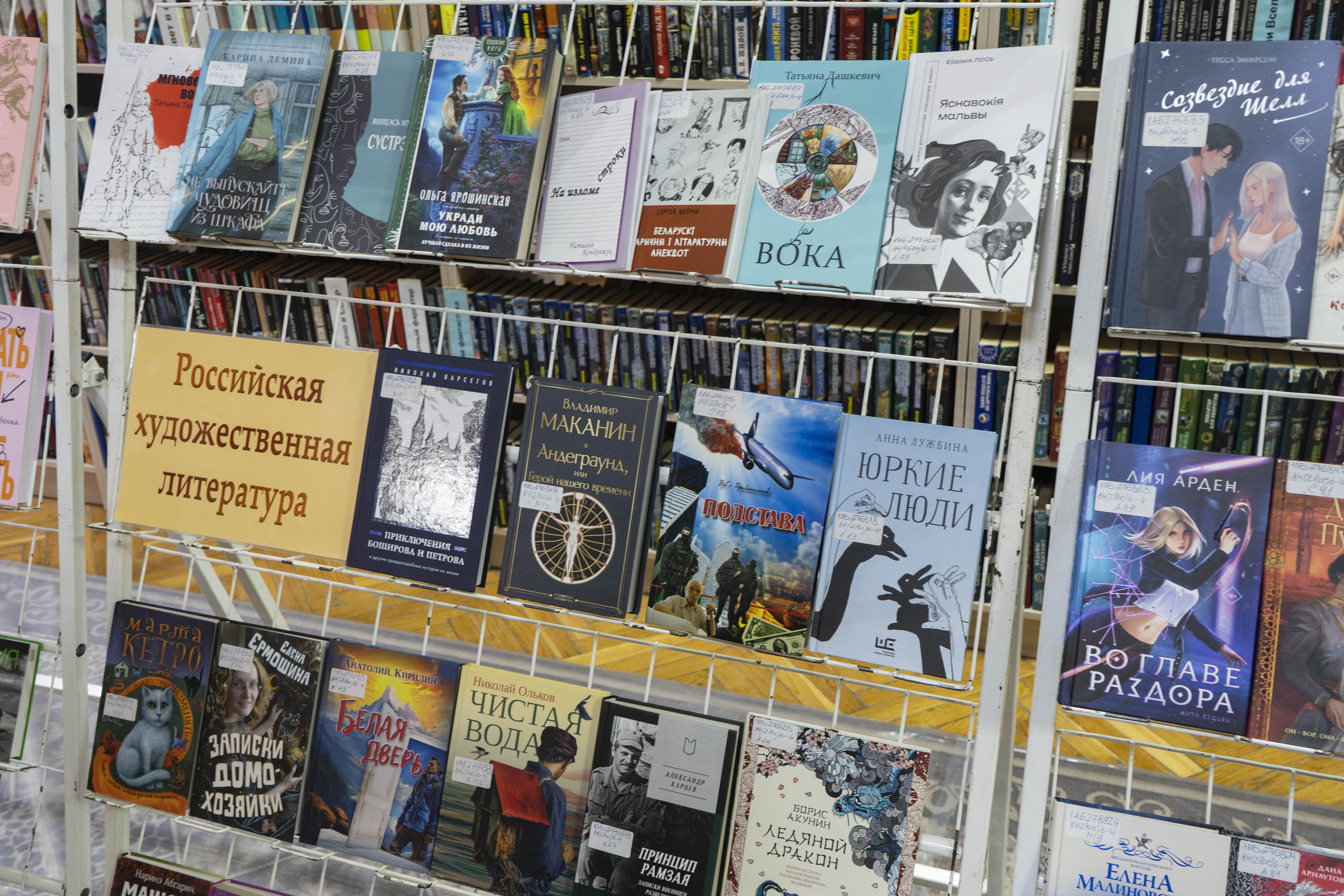 Сярод паступленняў мастацкай літаратуры новыя раманы К. Хармель «Книга утраченных имен» (Масква, 2023), заснаваны на рэальных падзеях часоў Другой сусветнай вайны, і «Жена винодела» (Масква, 2023) — новая кніга аўтара аб каханні і здрадзе, прабачэнні і адкупленні; раман С. Джио «Из Лондона с любовью» (Масква, 2024); дэтэктывы А. Малышавай, В. Шарапава, В. Вербінінай, Н. Аляксандравай, Е. Крэтавай, Р. Валіева, В. Мюсо, Л. Кларк, фантастычныя раманы М. Суржэўскай, К. Хан, Н. Калінінай, Дж. Кагавы, Д. Сіманса, Р. Кэнэдзі і інш.