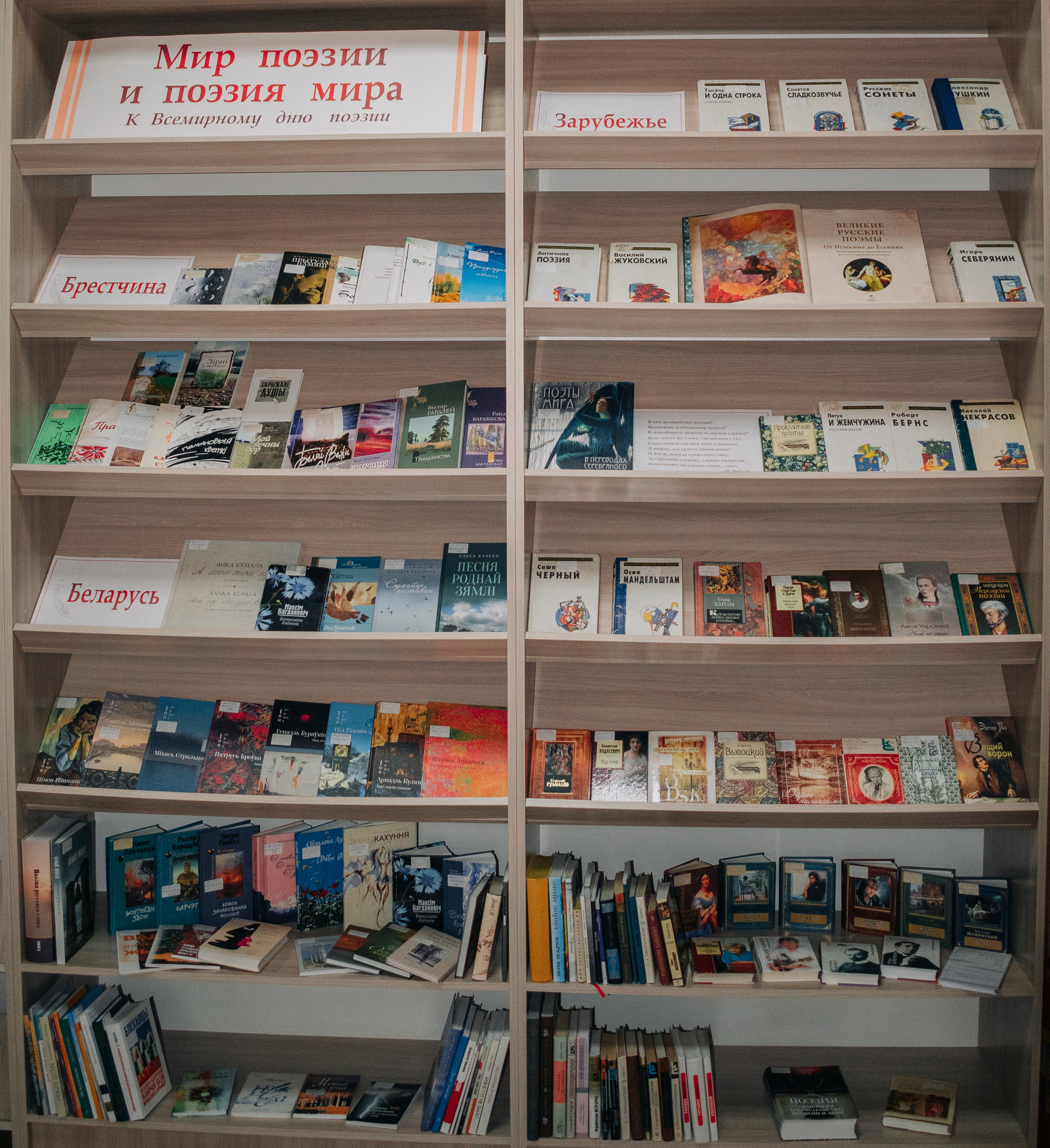 З 15 сакавіка 2021 г. у аддзеле абанемента Брэсцкай абласной бібліятэкі імя М. Горкага будзе дэманстравацца кніжная выстава «Мир поэзии и поэзия мира», прымеркаваная да Сусветнага дня паэзіі. Ён адзначаецца 21 сакавіка. Гэта свята было заснавана ЮНЕСКА 15 лістапада 1999 г. Галоўная мэта міжнароднага дня паэзіі — падкрэсліць то найвялікшае значэнне, якое мае літаратура ў культурным жыцці сучаснага грамадства, аб’яднаць паэтаў усяго свету і даць ім права і магчымасць заявіць пра сябе.