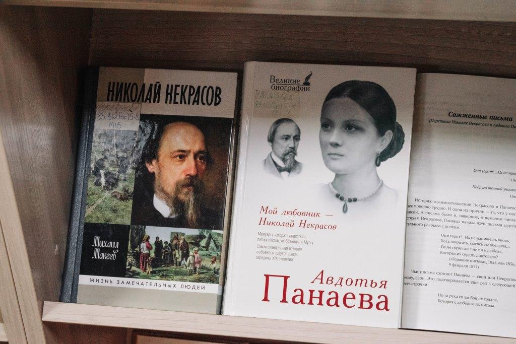Першы раздзел выставы «Поэт и его эпоха» ўключае кнігі аб жыцці і творчасці вялікага майстра слова. Дзякуючы ўспамінам сучаснікаў мы пазнаём шматгранную асобу аўтара: ён і адораны паэт, і журналіст, і выдавец часопісаў «Современник» і «Отечественные записки», і збіральнік перадавых літаратурных сіл эпохі. Асаблівае месца ў мемуарнай літаратуры займаюць успаміны Аўдоцці Панаевай — каханай жанчыны, асобы творчай, неардынарнай: А. Панаева «Мой любовник — Николай Некрасов» (Масква, 2014).