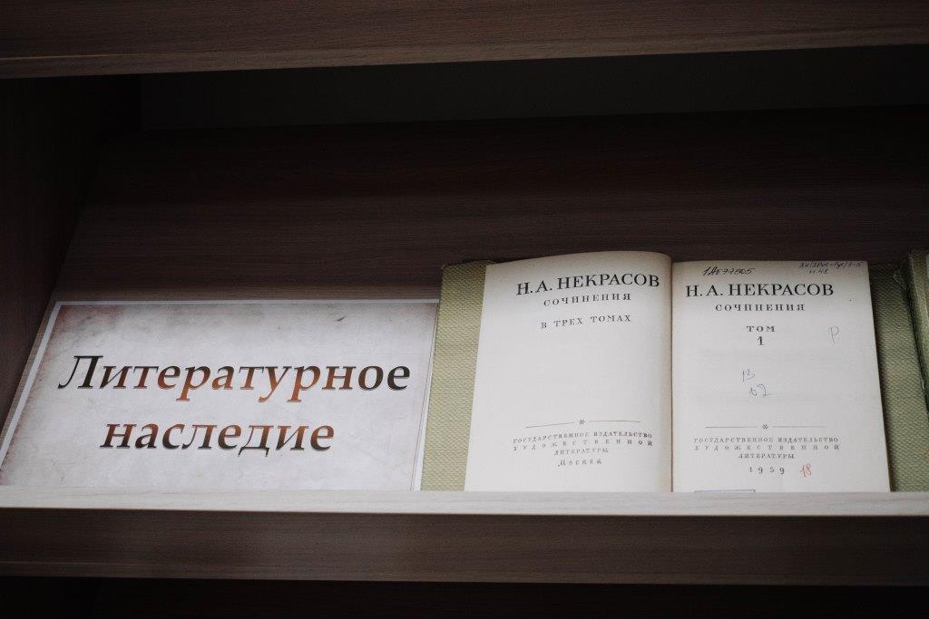 Другі раздзел «Литературное наследие» ўключае поўны збор твораў М. А. Някрасава, асобныя выданні паэзіі, прозы, публіцыстыкі, тэатральную крытыку, аповесці і апавяданні, фельетоны.