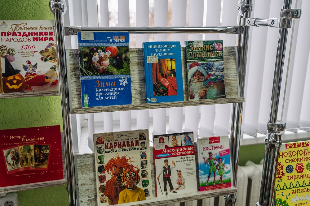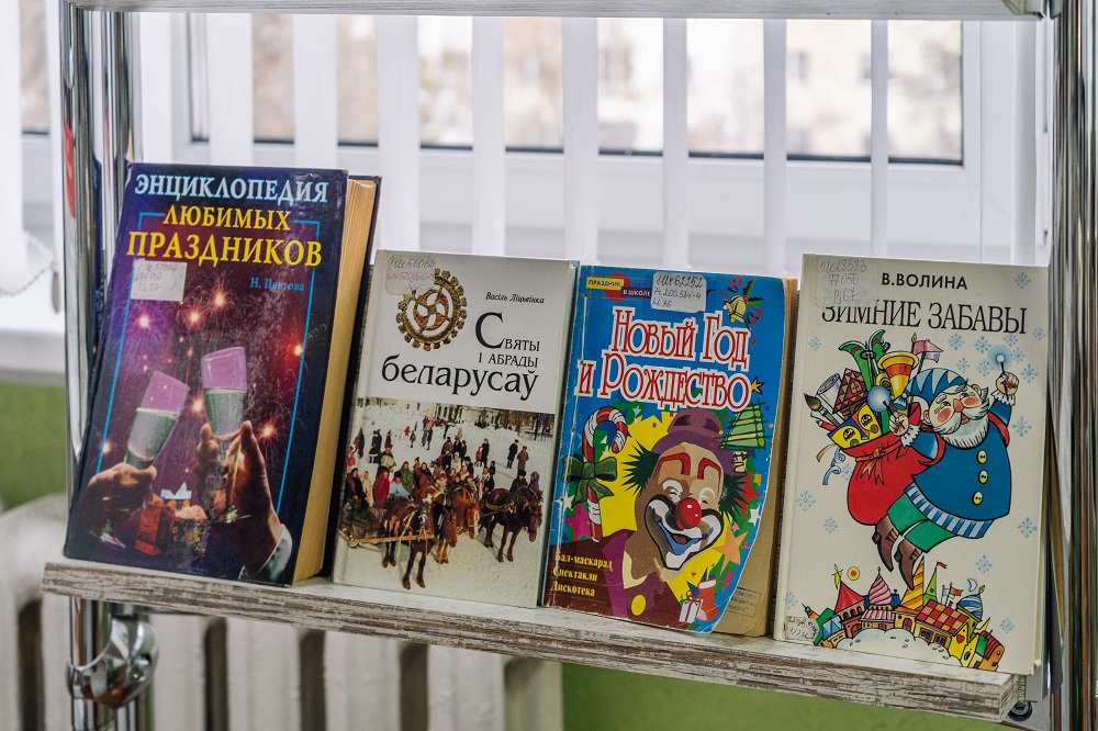 Яркая і маляўнічая кніжная экспазіцыя паведае пра гісторыю зімовых свят, навагоднія і калядныя традыцыі, народныя прыметы і павер’і. Таксама вас чакае шмат цікавых ідэй, як упрыгожыць сваю кватэру, арыгінальна аформіць падарункі родным і блізкім, самастойна змайстраваць маскі, маскарадныя касцюмы, сувеніры і ёлачныя ўпрыгожанні. Акрамя таго, у прадстаўленай літаратуры вы знойдзеце арыгінальныя сцэнарыі для тэматычных мерапрыемстваў.