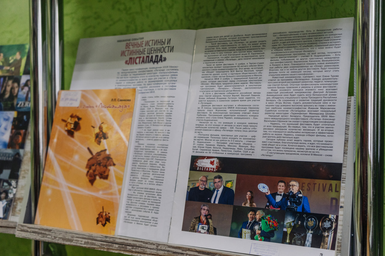 З 1 лістапада 2023 г. у аддзеле літаратуры па мастацтве дэманструецца выстава «Пад знакам Кіно», прысвечаная Мінскаму міжнароднаму кінафестывалю «Лістапад». Найбуйнейшы кінафорум Беларусі праводзіцца штогод з 1994 г. ў Мінску, да 2002 г. насіў назву «Кінафестываль краін СНД і краін Балтыі», у 2003 г. афіцыйна набыў статус міжнароднага, у 2013-м Мінскі міжнародны кінафестываль «Лістапад» атрымаў пастаянную акрэдытацыю. Галоўнай мэтай дадзенага кінафоруму з’яўляецца, як і было заяўлена з самага пачатку, — папулярызацыя кінамастацтва ў Рэспубліцы Беларусь.