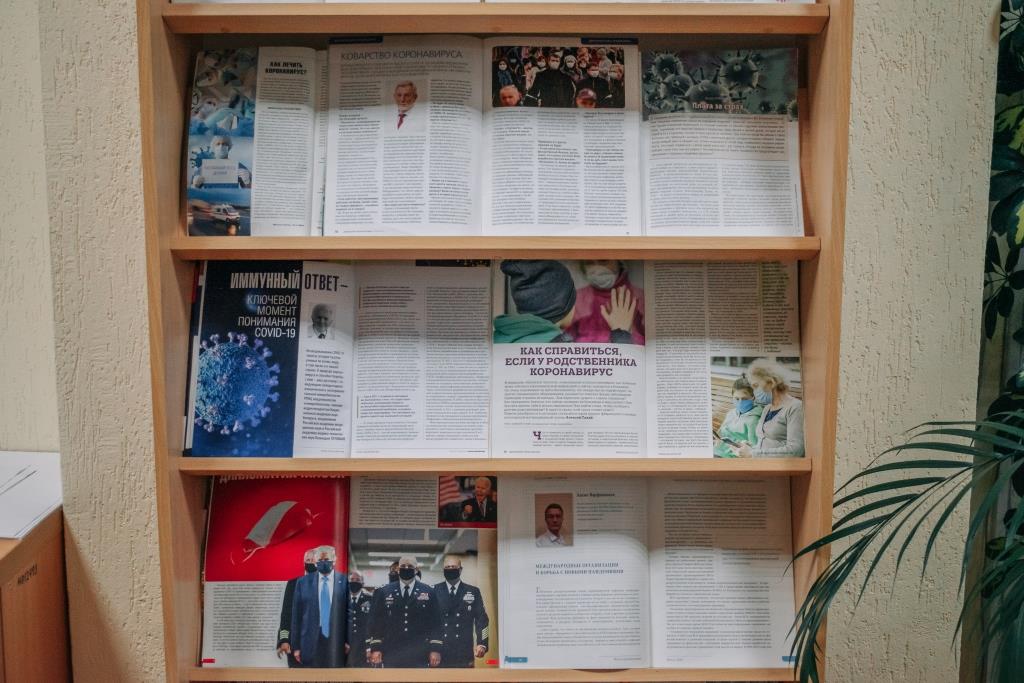 Сёння даследаваннямі віруса займаюцца тысячы вучоных па ўсім свеце, у т. л. і ў нашай краіне. Аб каронавірусе ўжо вядома шмат, але яшчэ не на ўсе пытанні атрыманы адказы. Якая прырода каронавірусной інфекцыі і якія спосабы барацьбы з ёй ужо вядомыя? Чаму адны заражаюцца COVID-19, а іншыя не? Як выпрацоўваецца імунітэт да гэтага захворвання? Як засцерагчыся ад інфекцыі? Якія поспехі ў распрацоўцы вакцыны? Адказы на гэтыя і многія іншыя пытанні можна знайсці ў матэрыялах выставы, дзе прадстаўлены публікацыі вядучых спецыялістаў у розных галінах навуковай і практычнай медыцыны, надрукаваныя ў часопісах «В мире науки», «Наука и инновации», «Планета», «Международная жизнь», «Здоровый образ жизни», «Домашняя энциклопедия для вас».