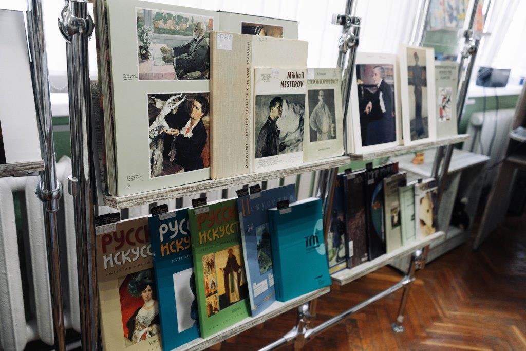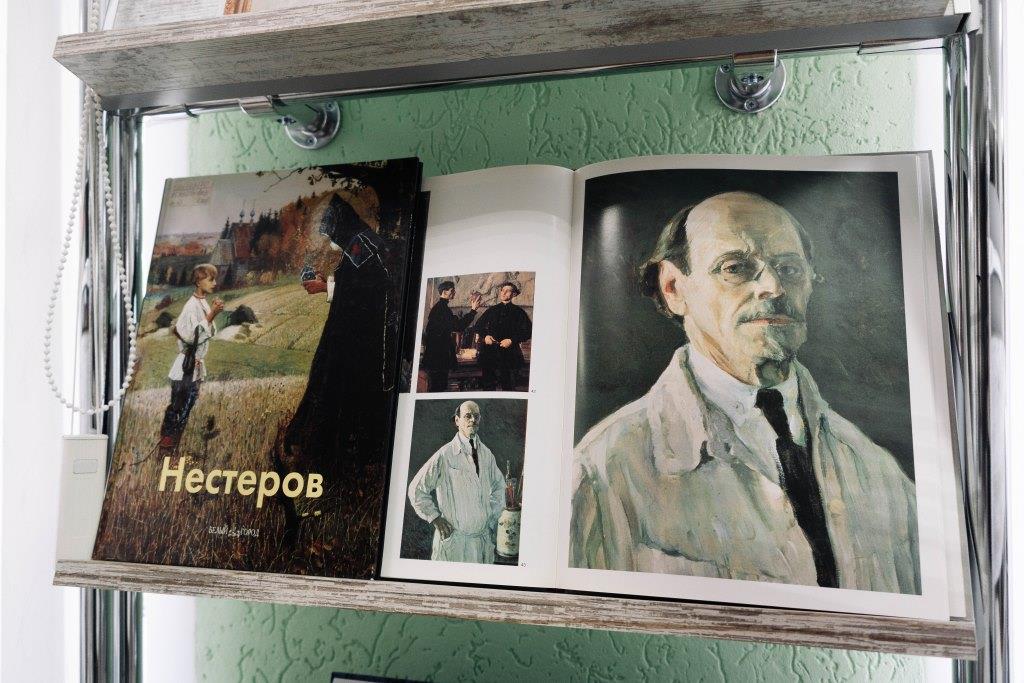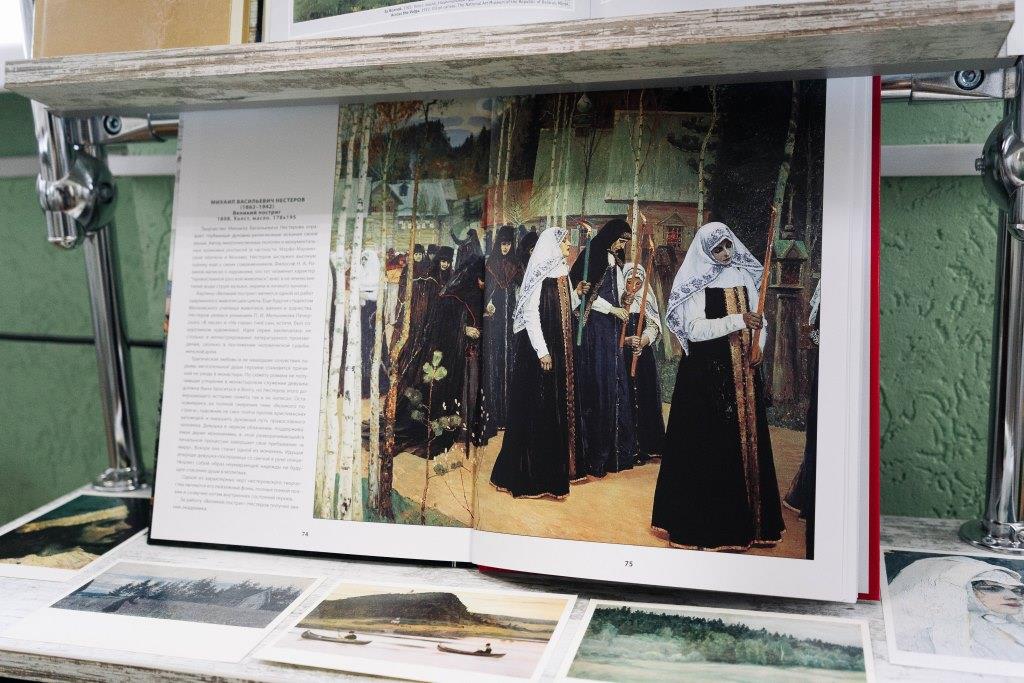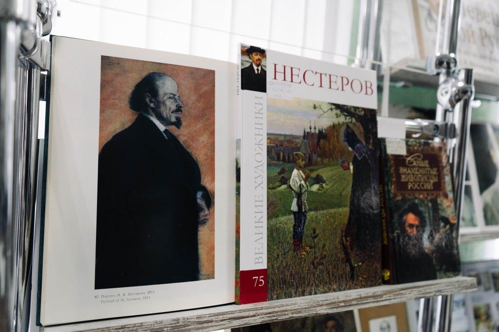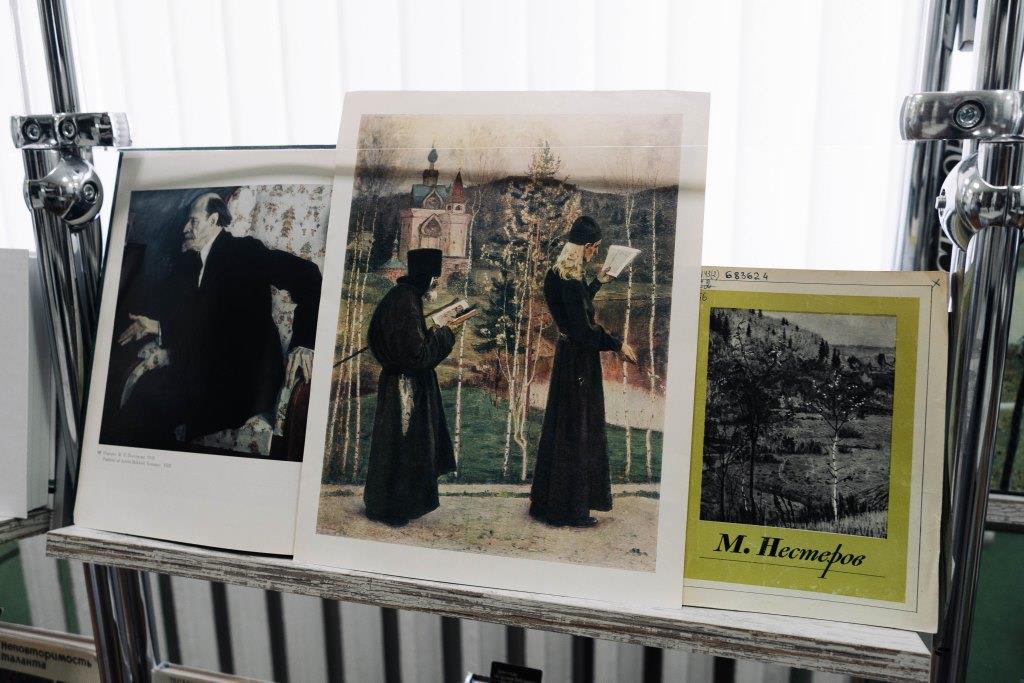 У экспазіцыі прадстаўлены кнігі і часопісныя артыкулы пра жыццё і творчасць М. В. Несцерава, альбомы і асобныя рэпрадукцыі яго карцін, камплекты паштовак, энцыклапедыі, зборнікі пісьмаў і ўспамінаў. Несумненную цікавасць выклічуць мемуары самога мастака «О пережитом. 1862–1917 гг. Воспоминания» (Масква, 2006), манаграфія А. Міхайлава «Михаил Васильевич Нестеров. Жизнь и творчество» (Масква, 1958), кніга С. Дурыліна «Нестеров-портретист» (Масква, 1949), альбомы «Михаил Нестеров» (Масква, 2001) і «Михаил Васильевич Нестеров, 1862–1942» (Масква, 2011).