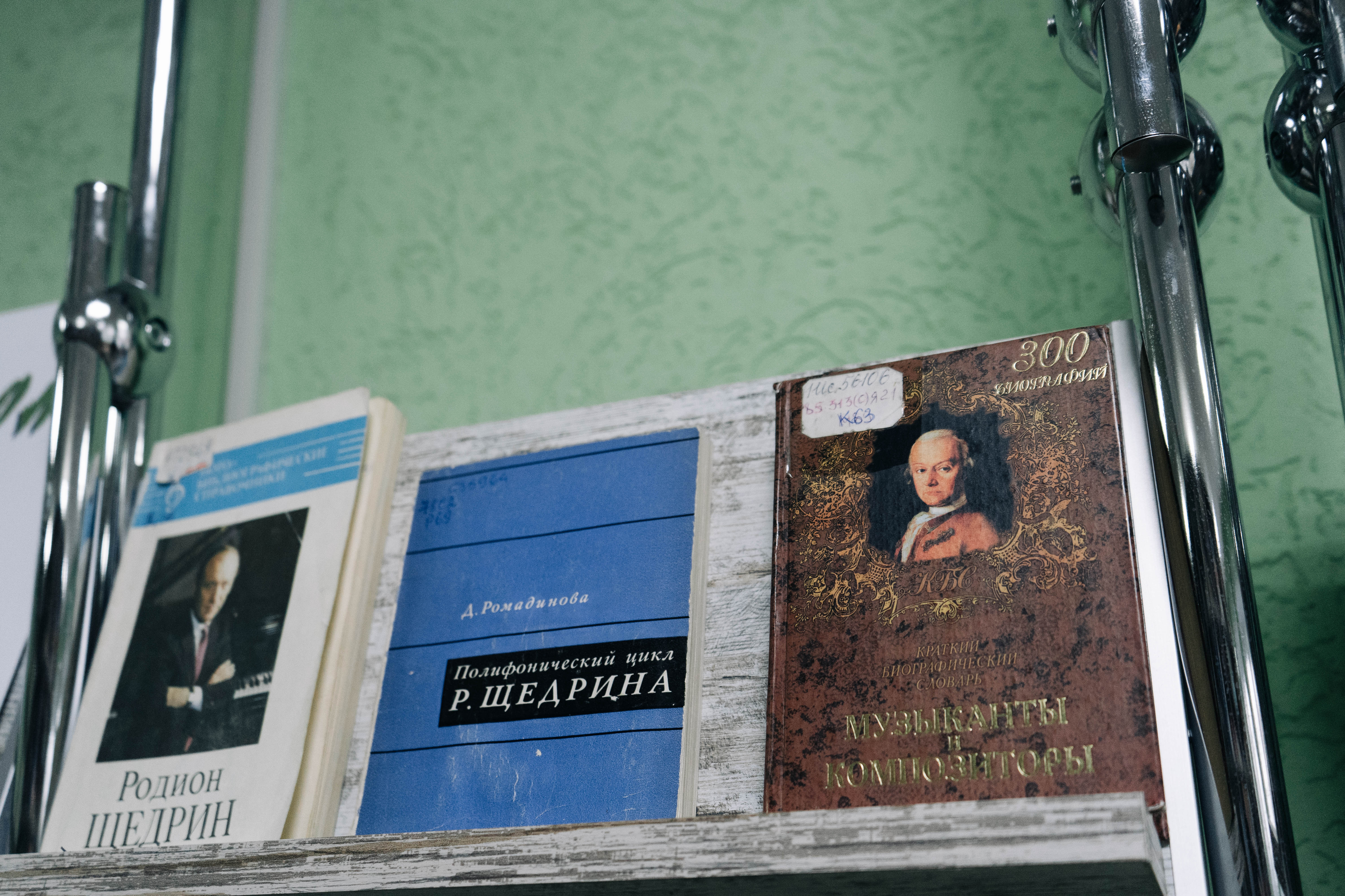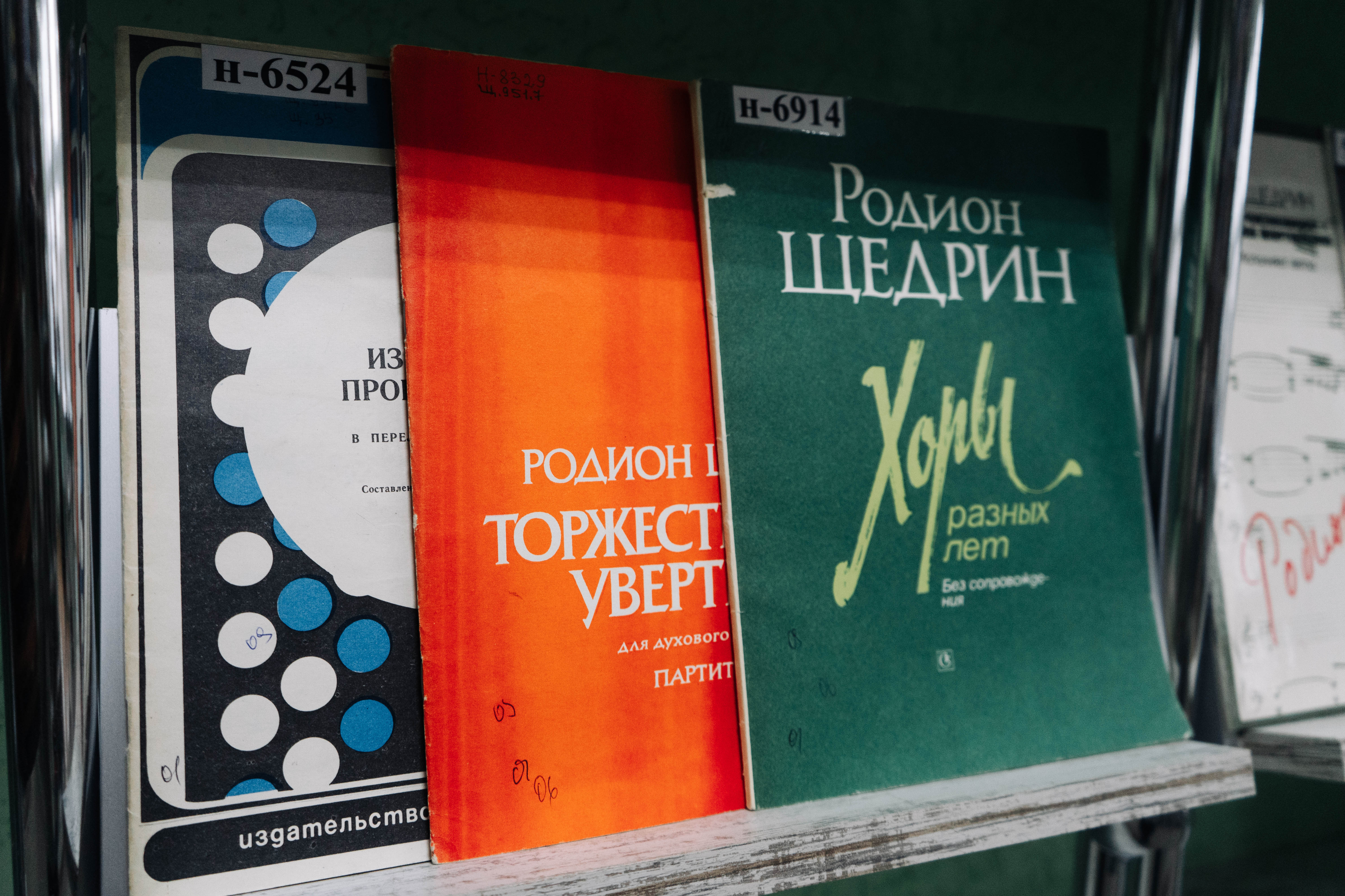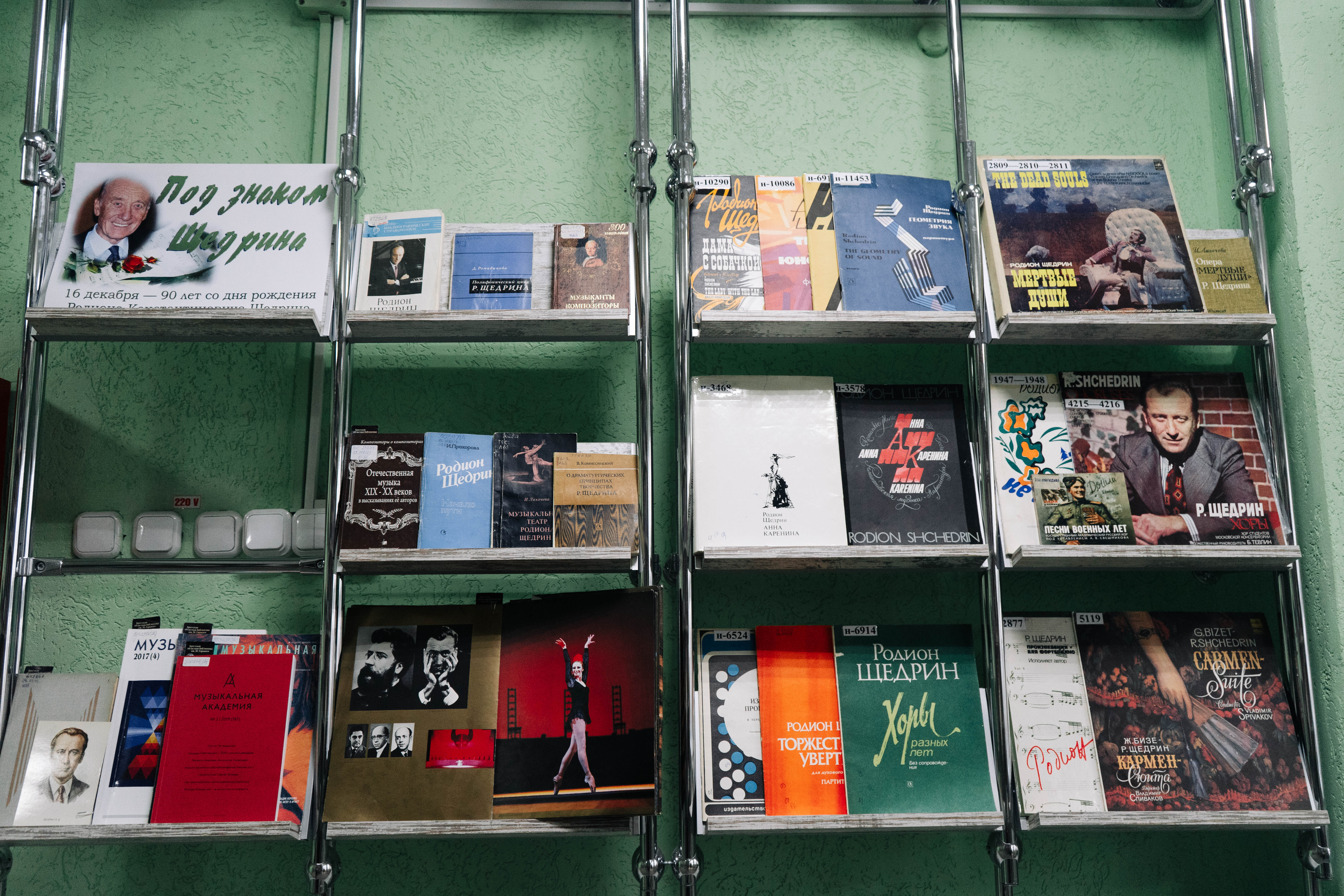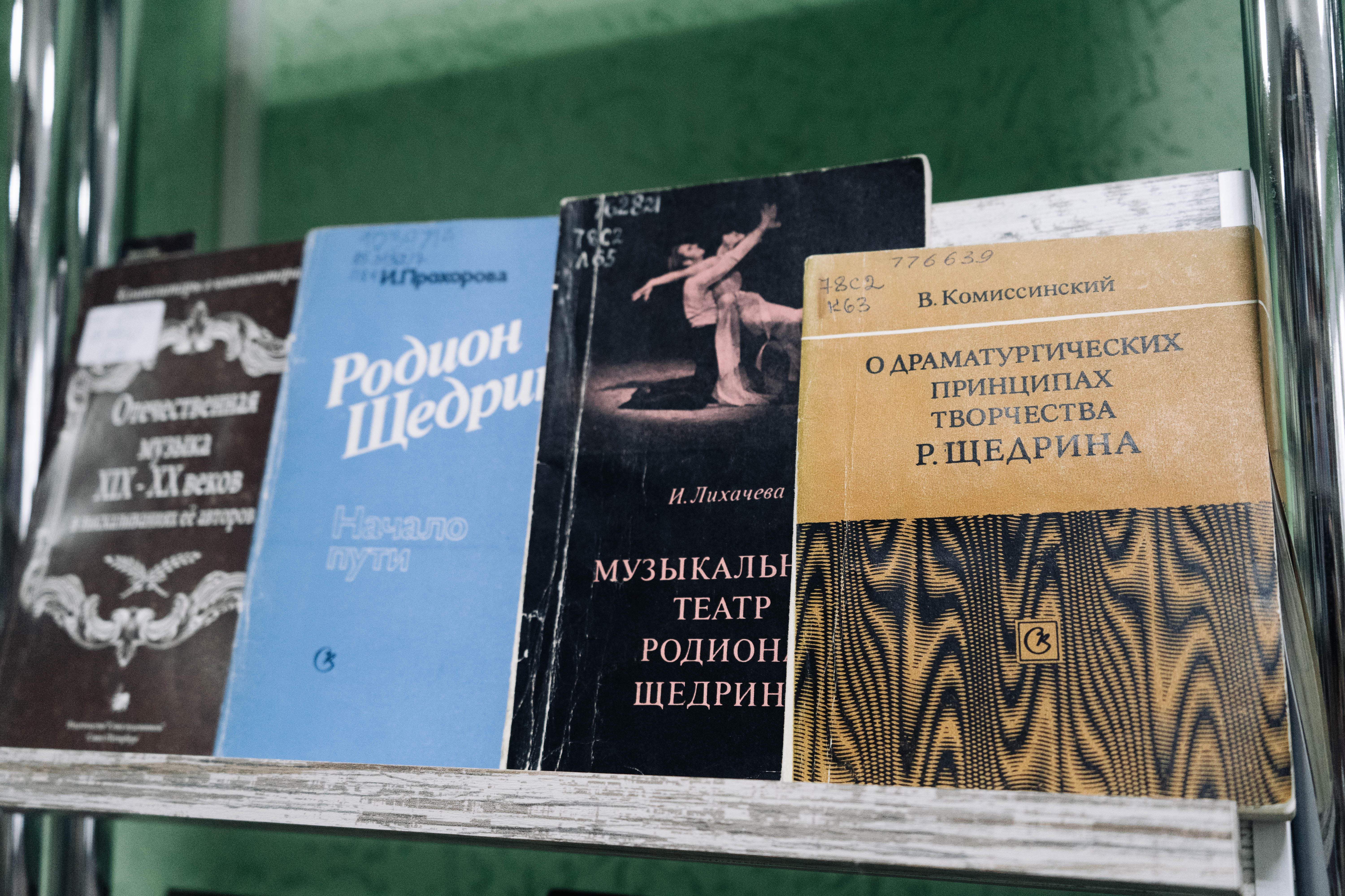 У экспазіцыі прадстаўлены кнігі, паштоўкі, часопісы, нотныя зборнікі, вінілавыя і кампакт-дыскі, якія знаёмяць з жыццём і творчасцю вялікага кампазітара. У манаграфіі І. А. Прохаравай «Родион Щедрин. Начало пути» (Масква, 1989) разглядаюцца творы, створаныя ў ранні перыяд творчасці, з 1954 па 1963 г. Асаблівая ўвага надаецца тым, у якіх прымяняюцца элементы рускай народнай музыкі: балету «Конёк-горбунок», оперы «Не только любовь» і інш. Кніга І. У. Ліхачовай «Музыкальный театр Родиона Щедрина» (Масква, 1977) знаёміць з творчасцю кампазітара, якая сыходзіць каранямі ў тэатральнае мінулае Расіі, а ў кнізе «Опера „Мёртвые души“ Р. Щедрина» (Масква, 1981) гэтага ж аўтара апісваюцца спосабы скарачэння літаратурнага тэксту, да якога звяртаецца Р. Шчадрын, а таксама даецца разгорнуты аналіз структуры оперы, яе музыкі і драматургіі. Запрашаем усіх жадаючых наведаць экспазіцыю, якая будзе адкрыта для прагляду да канца снежня.