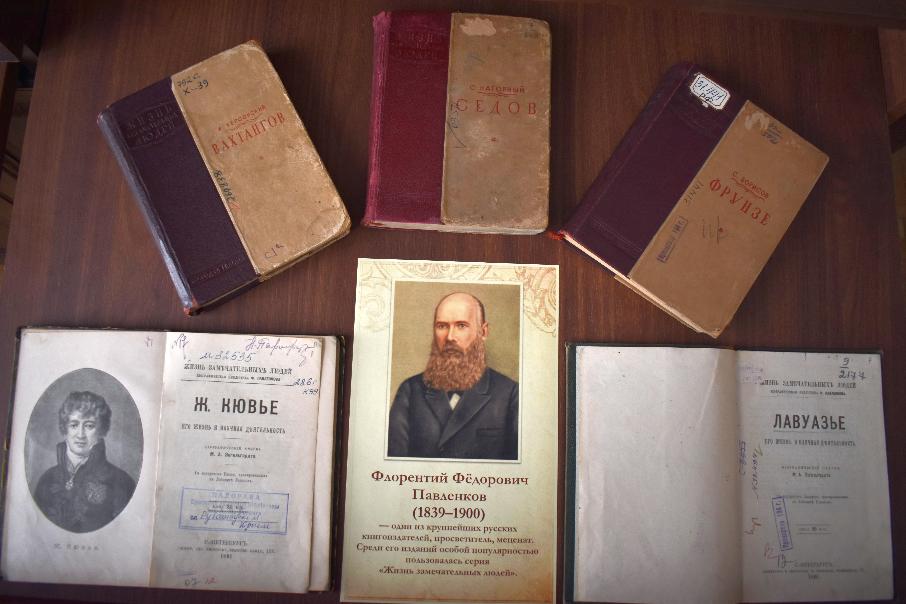 У цяперашні час кнігі біяграфічнай бібліятэкі Ф. Паўленкава, выдадзеныя пры яго жыцці, з’яўляюцца сапраўднай бібліяграфічнай рэдкасцю. Дзве з іх прадстаўлены на выставе. Гэта кнігі рускага пісьменніка і літаратурнага крытыка М. А. Энгельгардта, якія распавядаюць пра жыццё і дзейнасць французскіх навукоўцаў XVIII – першай паловы XIX ст. — Антуана Лавуазье і Жоржа Кюўе. Кнігі выйшлі ў 1891 г. і былі аднымі з першых у зноў утворанай серыі.