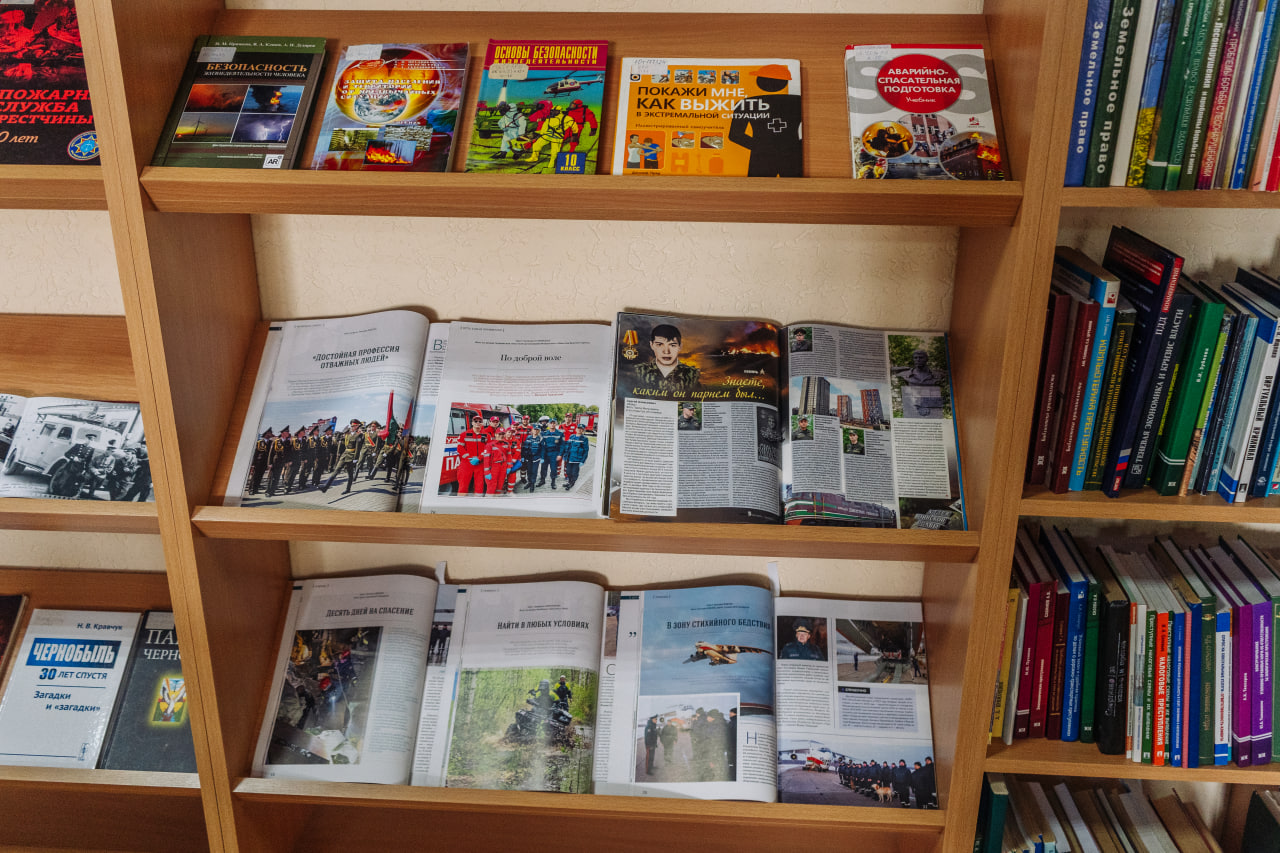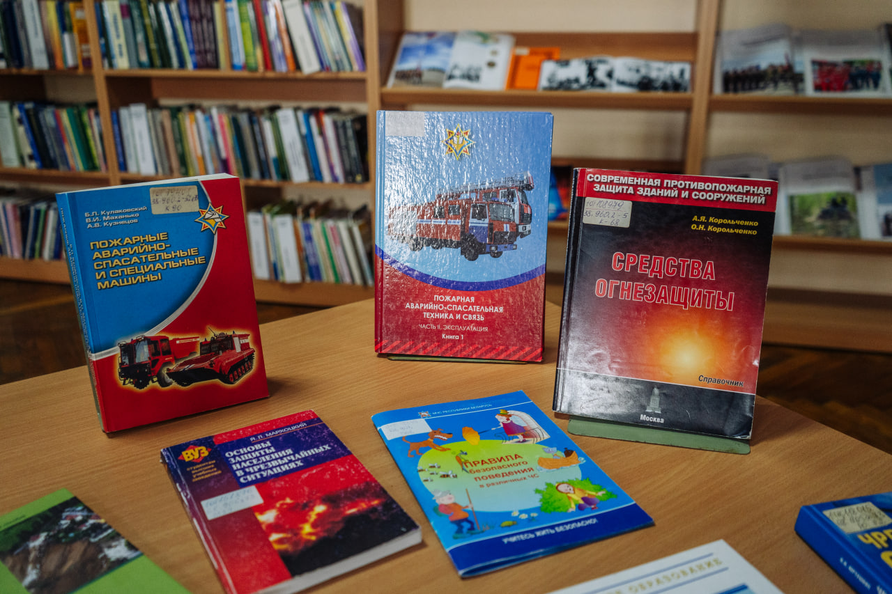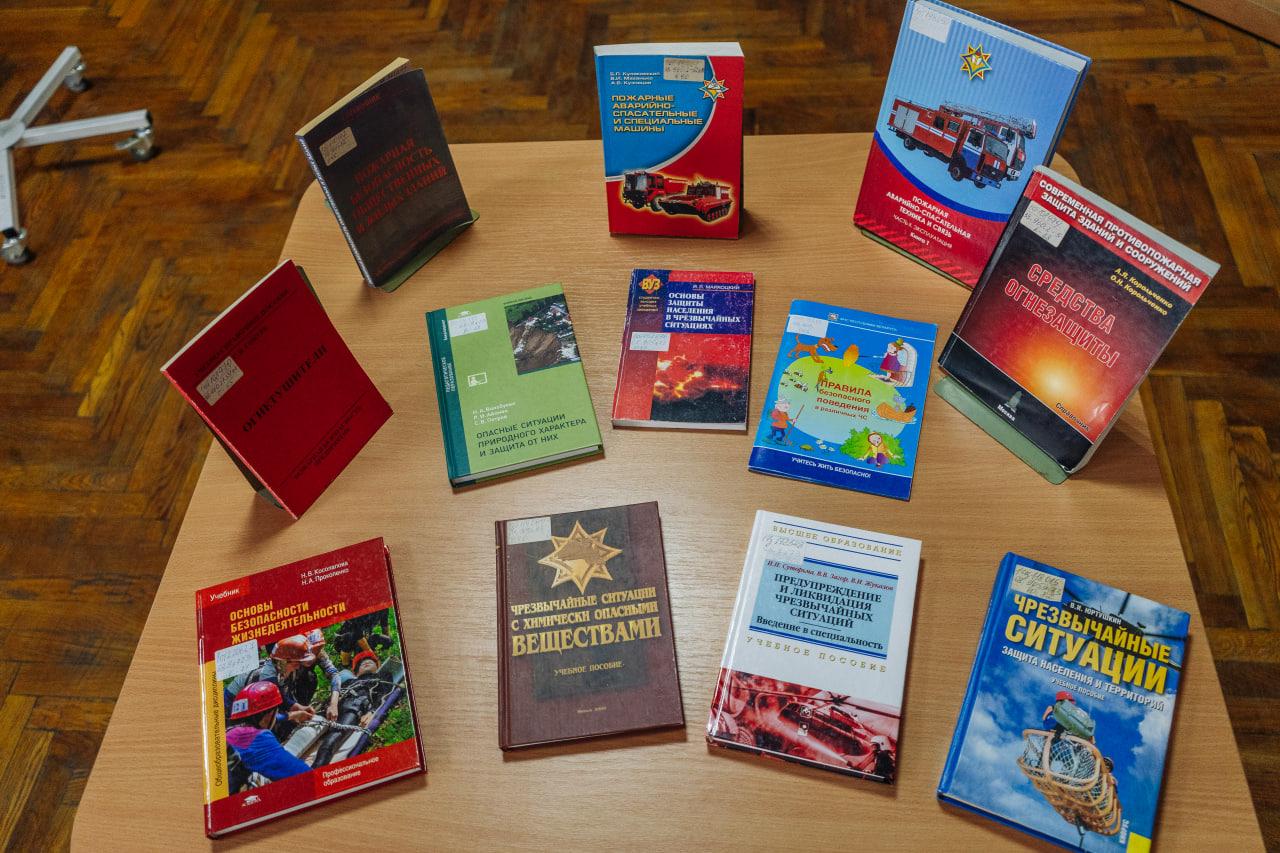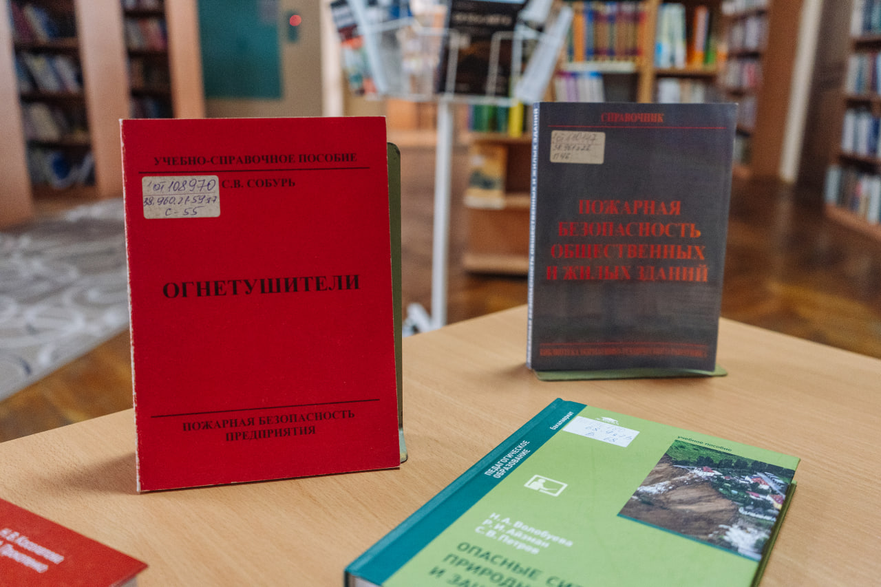 На выставе прадстаўлены тэматычныя дапаможнікі, прысвечаныя слаўным старонкам пажарнай аховы БССР і сучаснай Рэспублікі Беларусь, Міністэрству па надзвычайных сітуацыях — структуры, часткай якой з'яўляецца пажарная ахова сёння. Частка кніг выставы прысвечана аварыі на Чарнобыльскай АЭС — падзеі, якая шмат у чым прадвызначыла ўзнікненне Міністэрства па надзвычайных сітуацыях. Таксама на выставе прадстаўлены выданні па дзеяннях грамадзянскага насельніцтва ў выпадку ўзнікнення надзвычайных сітуацый.
